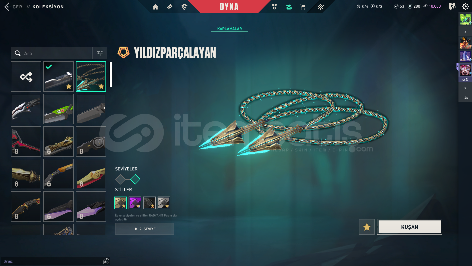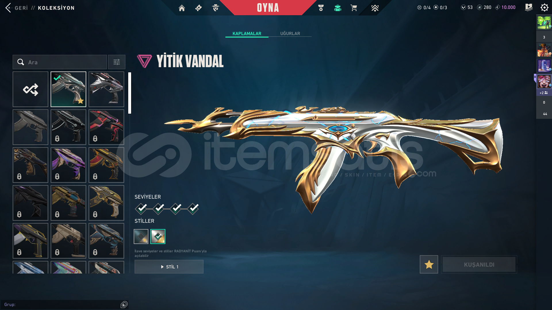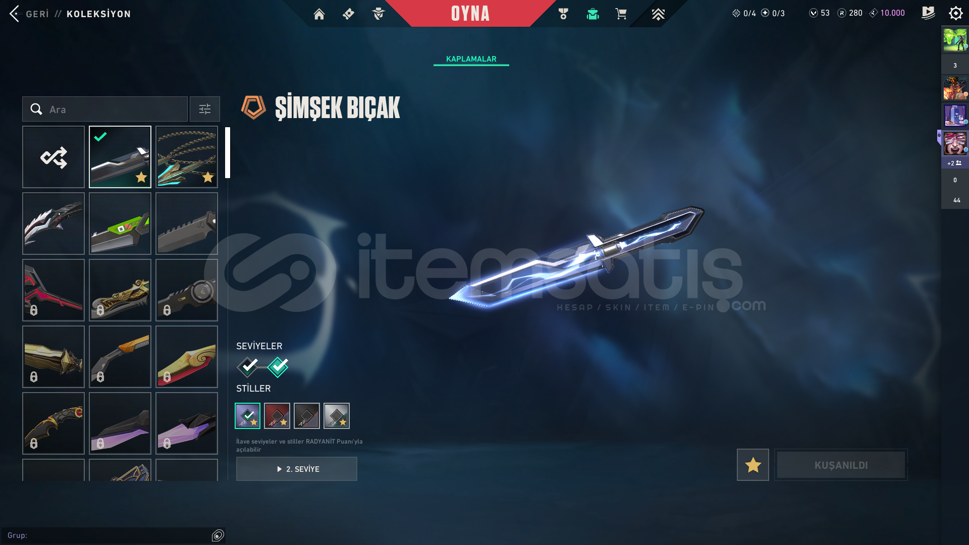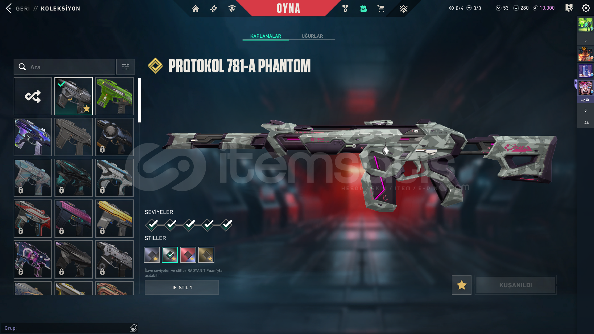 Hesap İçerisindeki Skinler: