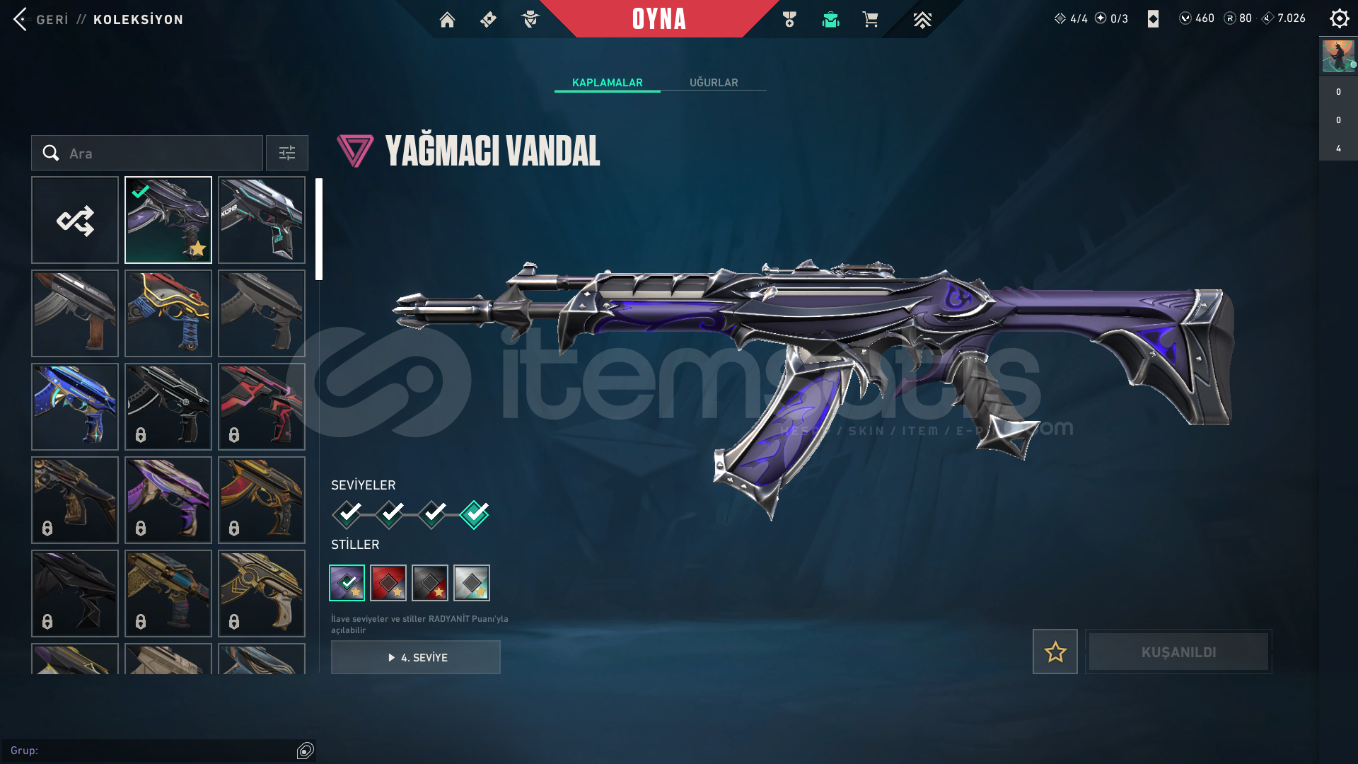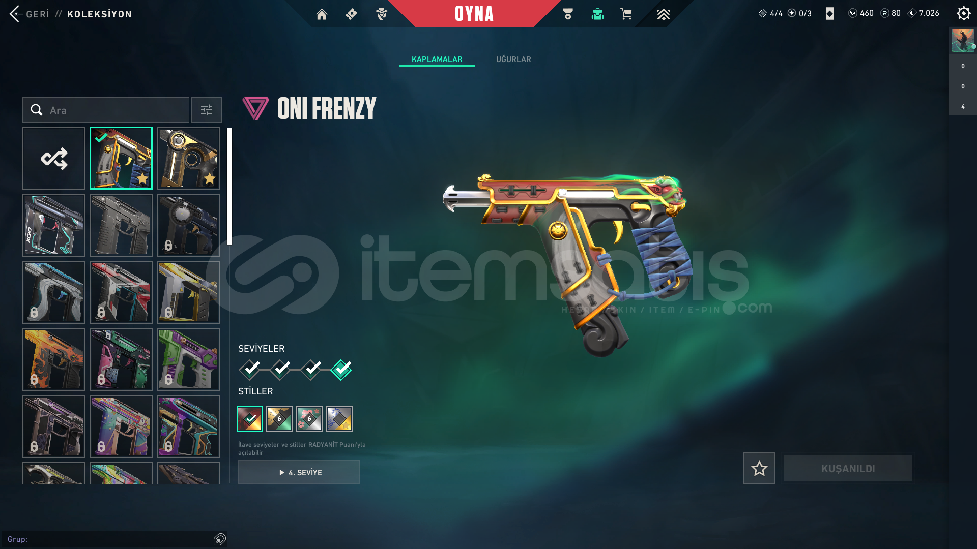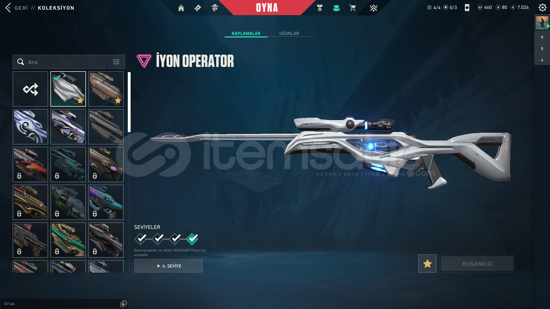 LEVEL: 118ENVANTER DEĞERİ: 55,050 VP Mağaza EurodurVenturi KnifeXenohunter KnifeIon KarambitIridian Thorn BladeOnimaru KunitsunaReaver KarambitPrime SpectreIon OperatorBlack.Market VandalOni BulldogOrigin FrenzyReaver GhostOni VandalNeptune ShortyOni AresRecon GuardianPrime ClassicRecon PhantomReaver VandalOni FrenzyPrime//2.0 PhantomReaver PhantomIridian Thorn SheriffVenturi SpectreVenturi VandalIridian Thorn OperatorVenturi FrenzyTilde JudgeTilde BulldogVenturi MarshalIridi...