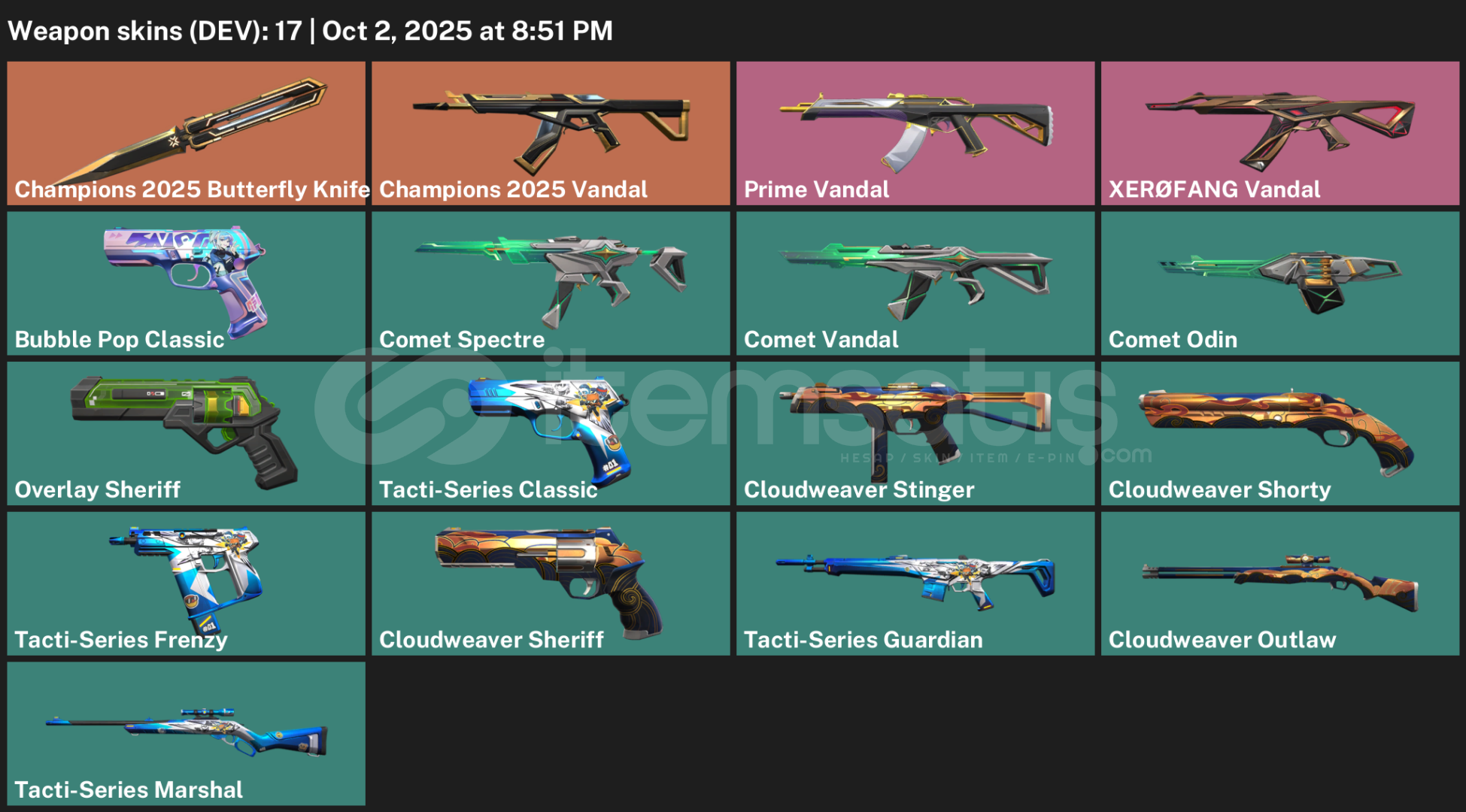 ULU PENÇE VANDALChampions 2025 Butterfly KnifeChampions 2025 VandalPrime VandalXERØFANG VandalBubble Pop ClassicComet SpectreComet VandalComet OdinOverlay SheriffTacti-Series ClassicCloudweaver StingerCloudweaver ShortyTacti-Series FrenzyCloudweaver SheriffTacti-Series GuardianCloudweaver OutlawTacti-Series MarshalGunbuddiesV25 ACT I Coin Buddy5 Years BuddyMini Mecha BuddyEp 9 // 3 Coin BuddyKeep it Safer BuddyRadianite Crystal BuddyVALORANT Coin BuddyEp 9 // 1 Coin BuddySleepy Bru...
