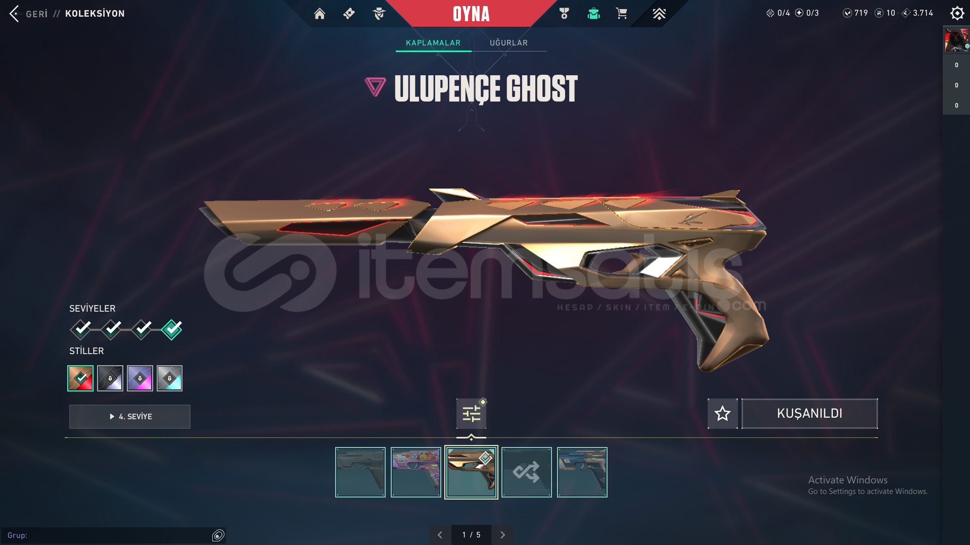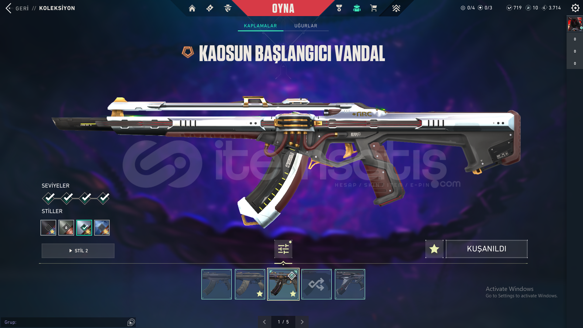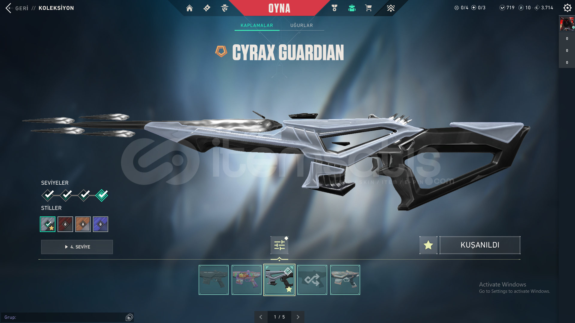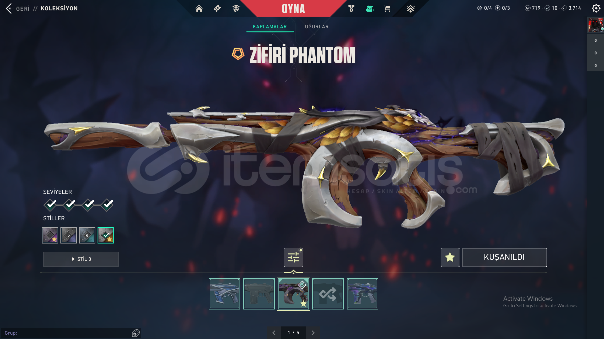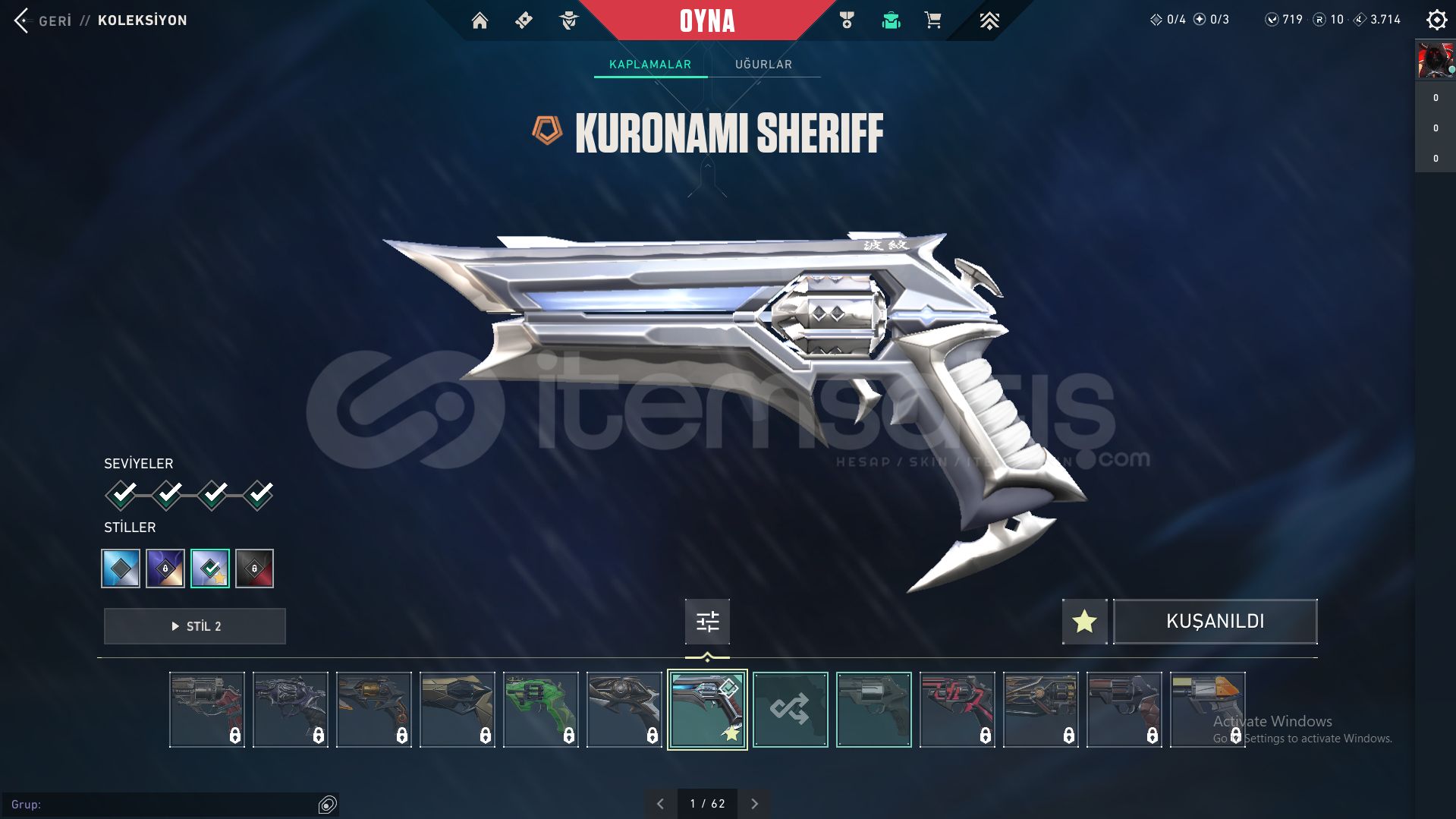 hesapta kaos vandal, yıldız belası vandal, yağmacı karambit, yitik bıçak, zifiri phantom, kuronami sheriff, ulupençe ghost, şimşek spectre, cyrax guardian bulunmaktadır