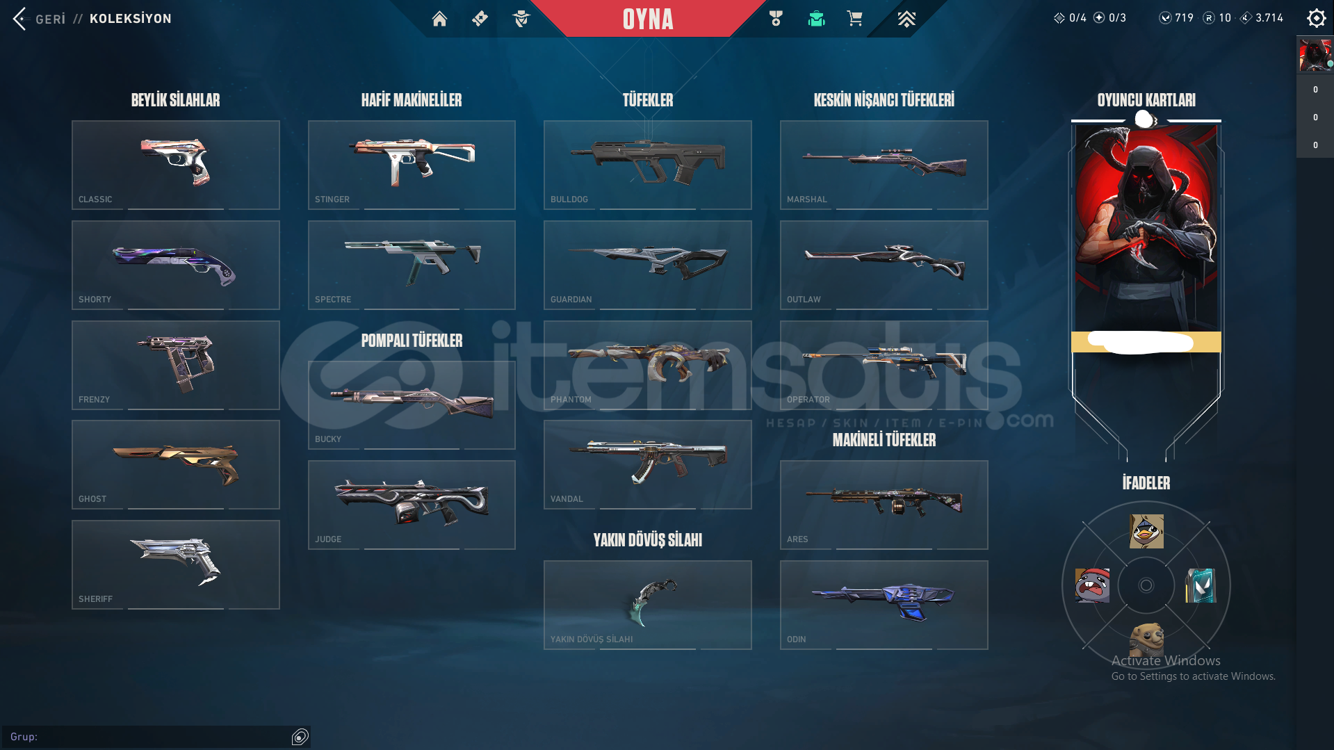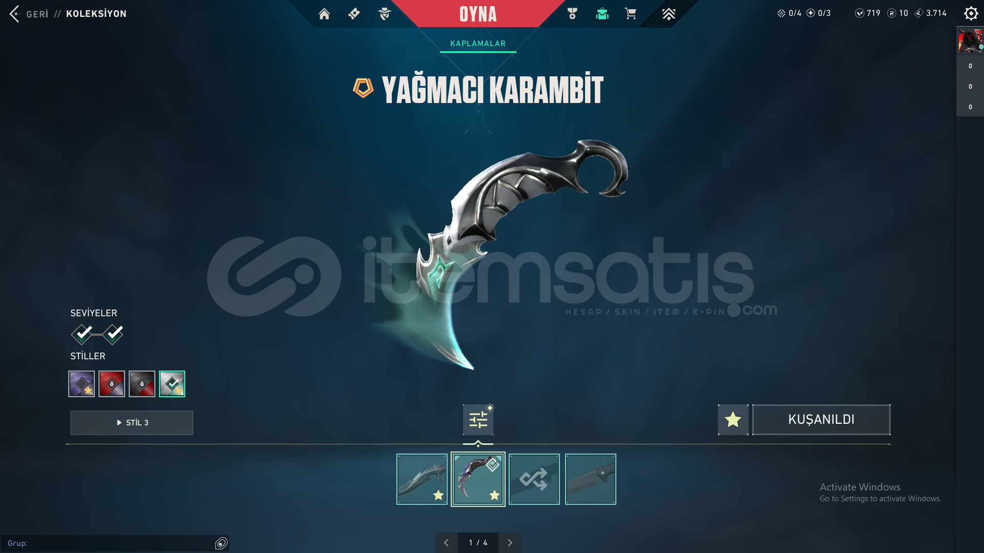 hesap TR serveridirhesap maillidirhesapta kaos vandal, yıldız belası vandal, yağmacı karambit, yitik bıçak, zifiri phantom, kuronami sheriff, ulupençe ghost, şimşek spectre, cyrax guardian bulunmaktadırtelefon bağlıdır ne yazıkki değiştirilemiyor