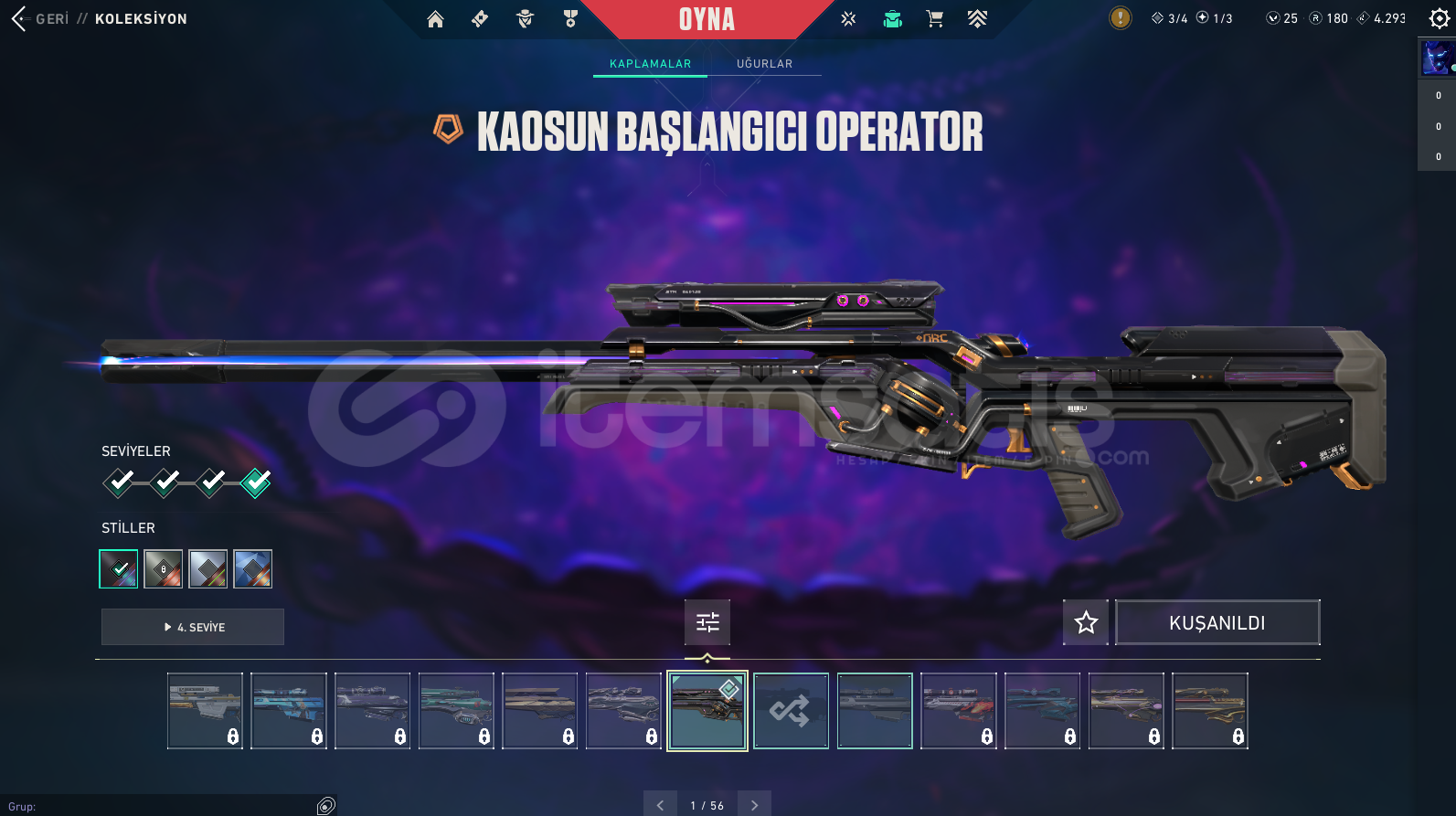 Hesapta pek çok güzel skin bulunmakta. (bazıları fotoğraflarda mevcut)