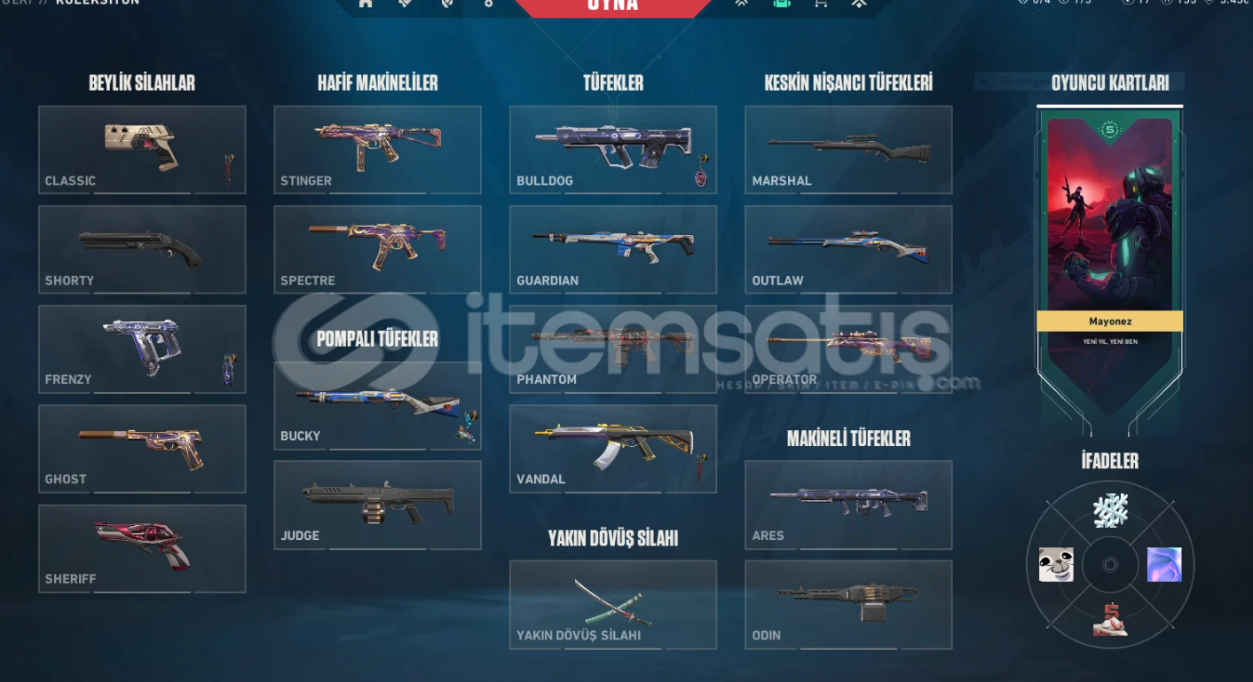 Selam arkadaşlar.Hesabımız silver rankındadır.Aktif bir banı bulunmamaktadır.Hesabımız TR dir.Fakat vp satın alacak iken eu kısmından satın almanız gerekır.Hesabın ıcerısınde;Oni KatanaAsil VandalÖzel Harekat PhantomZamanın Ötesi Sheriff1x BattlePass bulunmaktadır.Hesabımızın ısmı aygazdır.