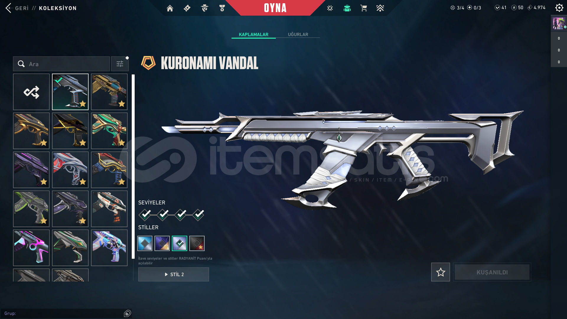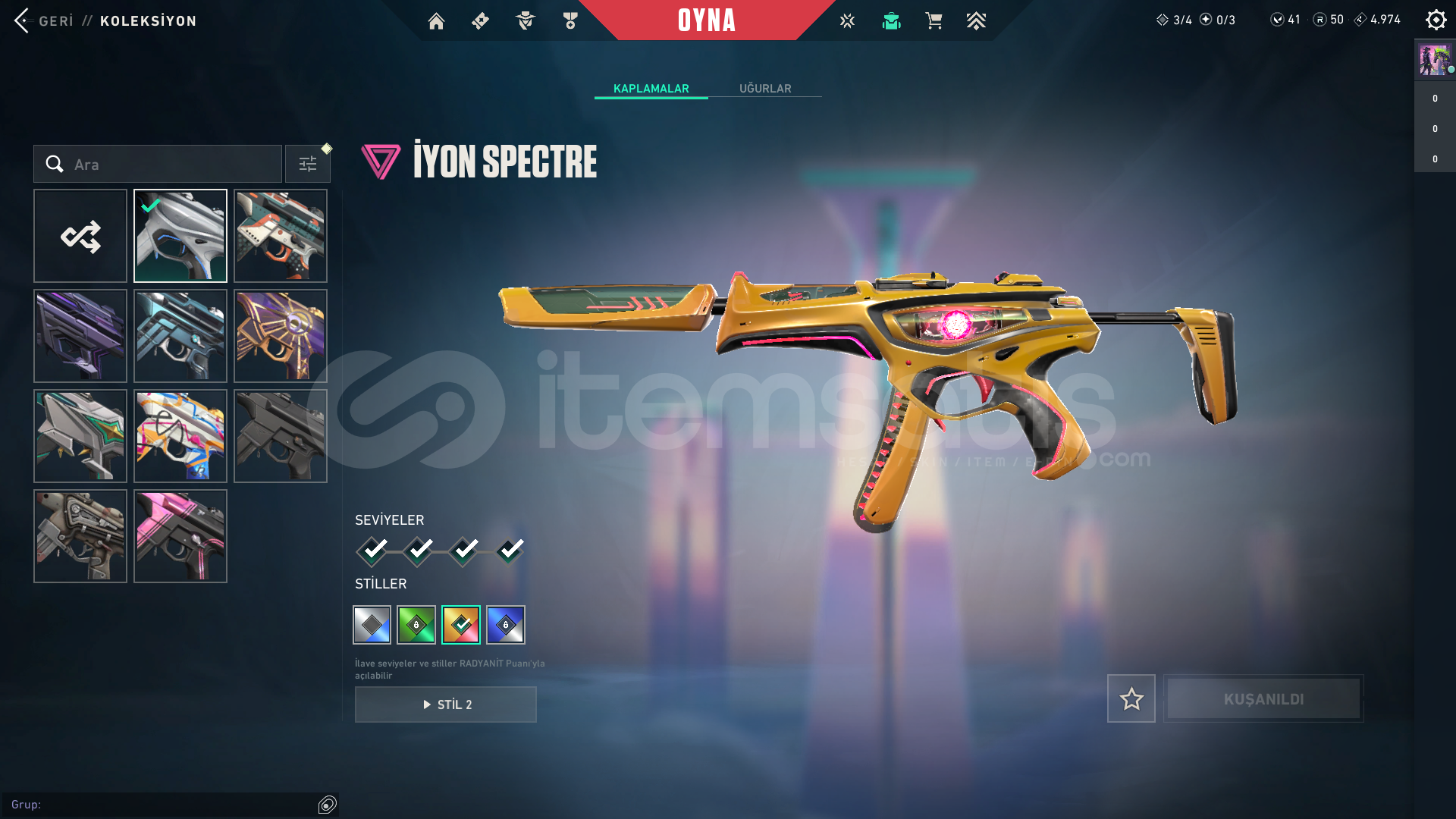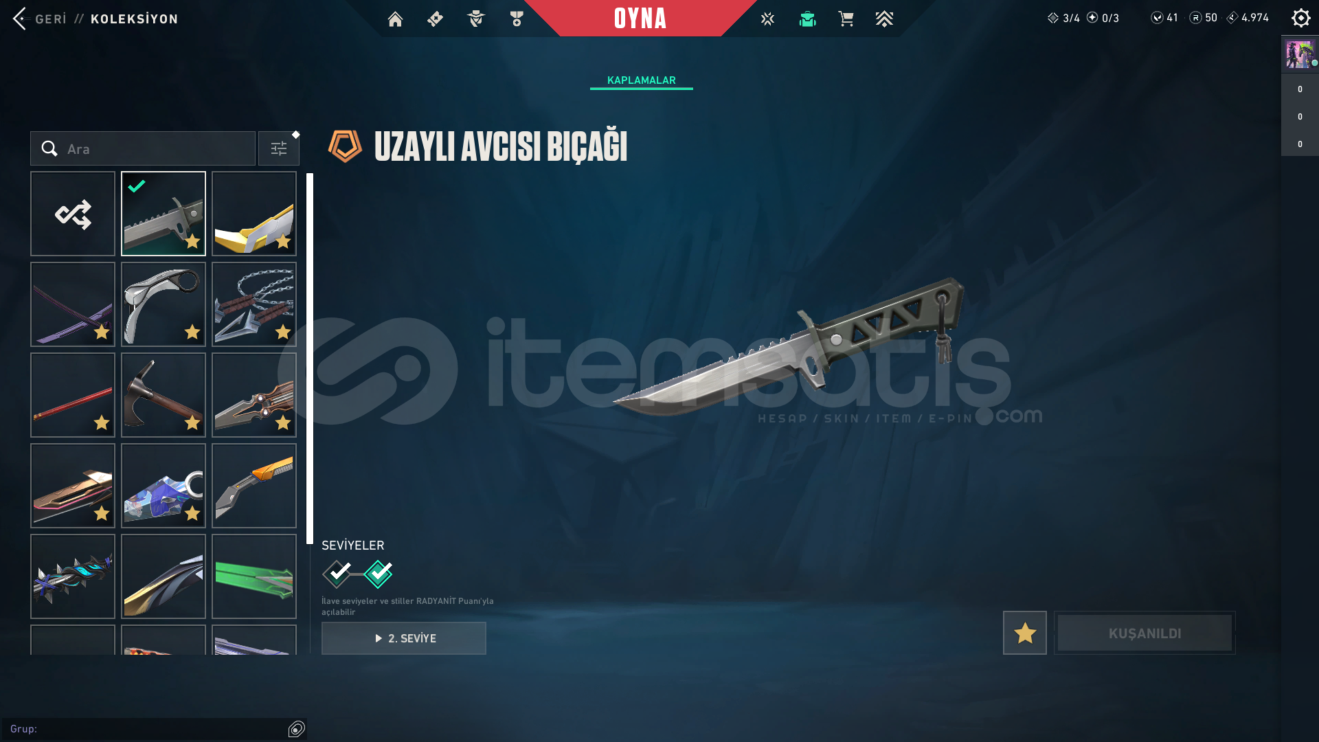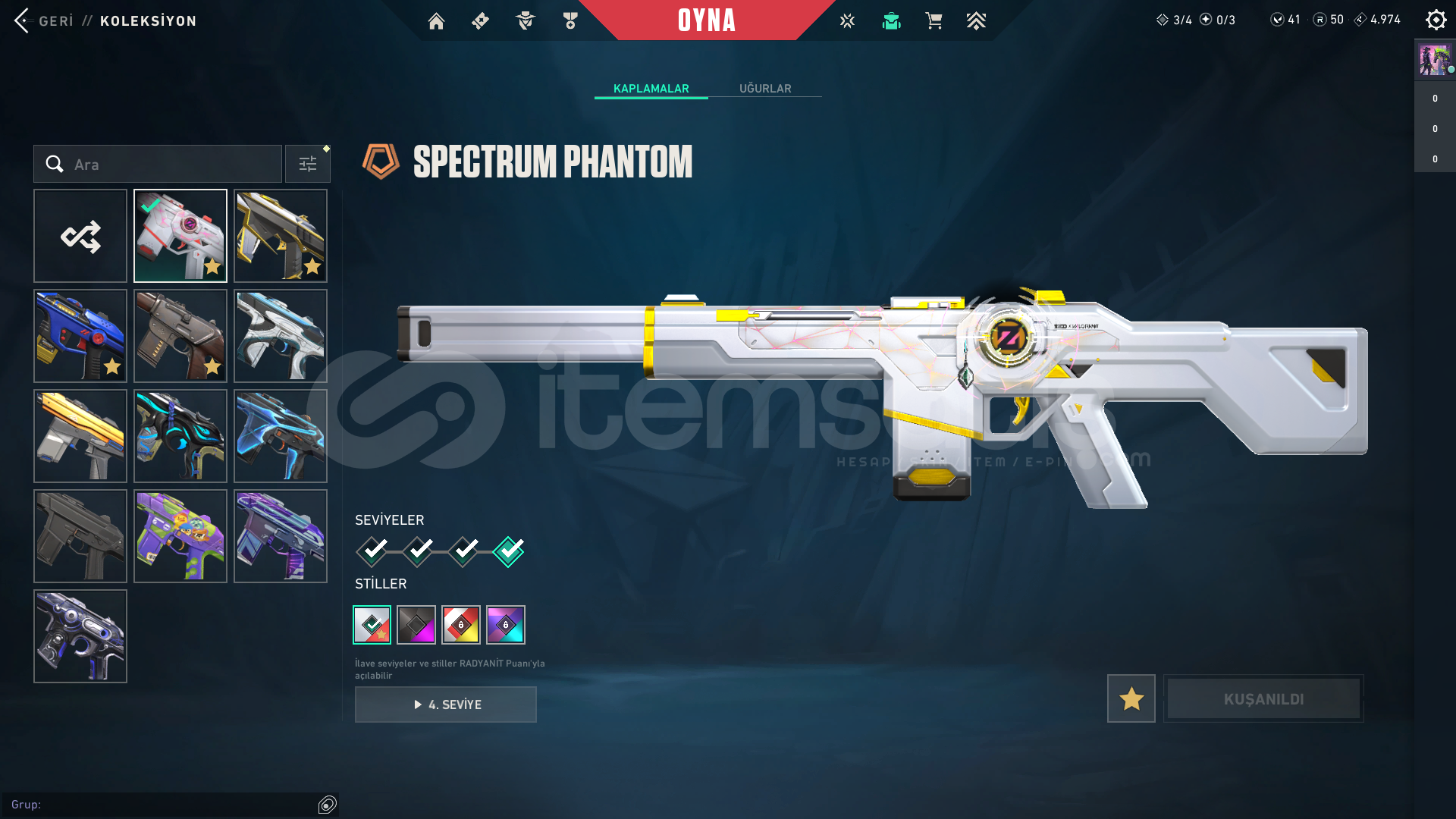 Oto teslimat nedir?Ben aktif olmasam bile satın alıp direkt bilgilere erişip tüm bilgileri üstünüze anlık olarak alabilirsiniz.Bölge: TRSeviye: 278Kademe: Platin 3VP: 41Radyanit: 50Skinler;Ejder JudgeRadiant Entertainment System PhantomProtocol SheriffEX.O SpectreVCT x JDG ClassicSeri Tetik SheriffEX.O SheriffSeri Tetik OdinSeri Tetik PhantomEX.O VandalEjderin Buyruğu VandalUlupençe KnifeAsil//2.0 KarambitSeri Tetik MarshalArcane VandalChampions 2023 VandalSihirpunk KelebekEX.O Bıçakİyon Karam...