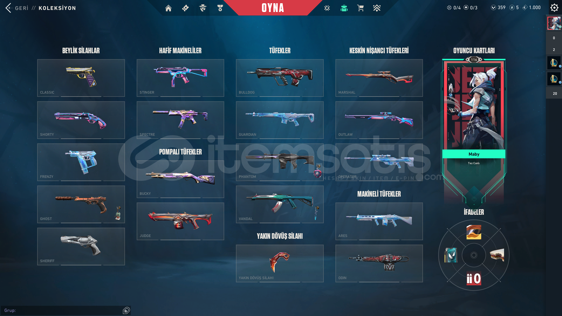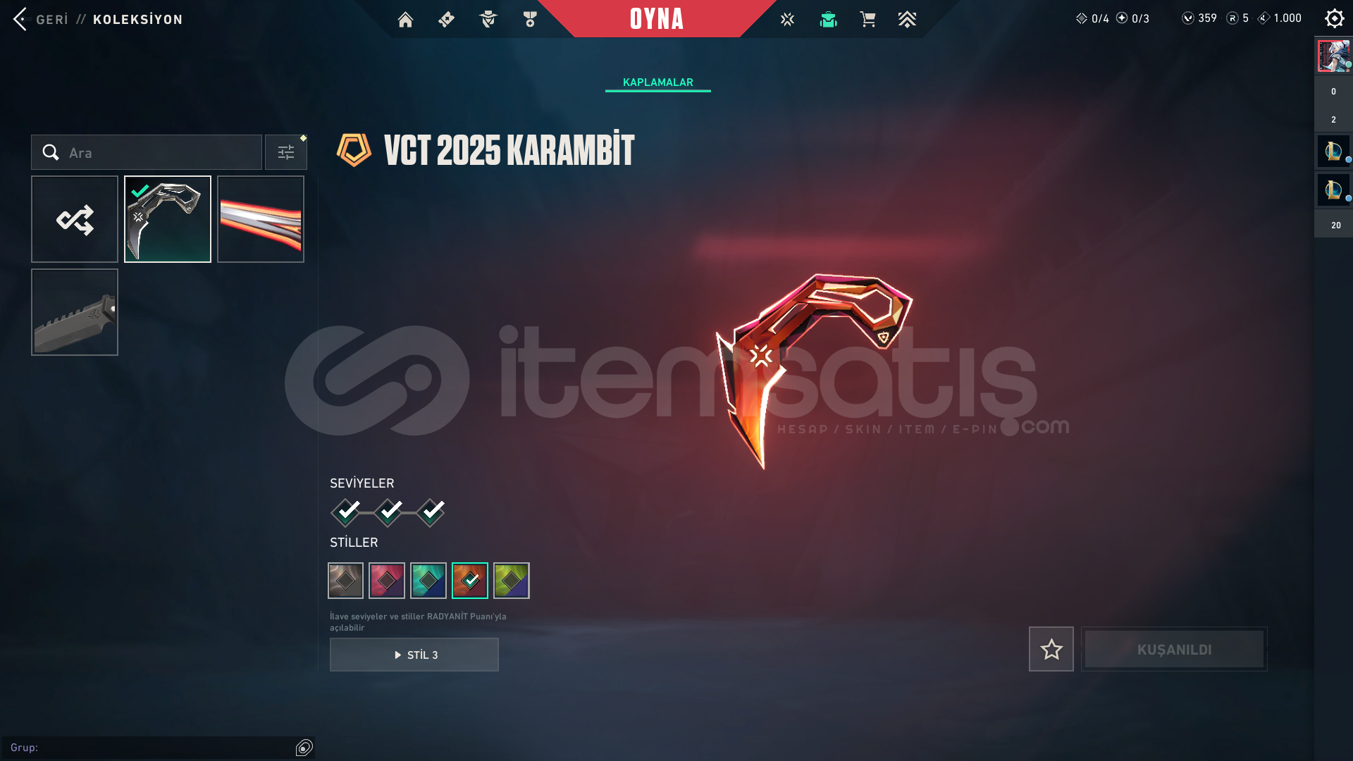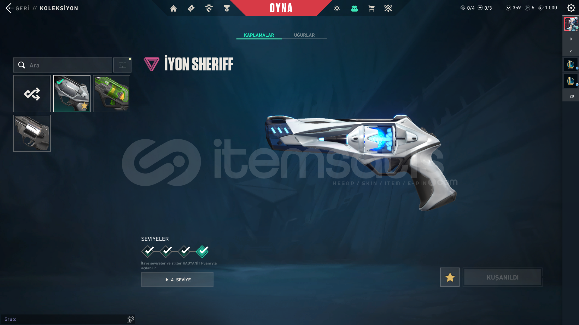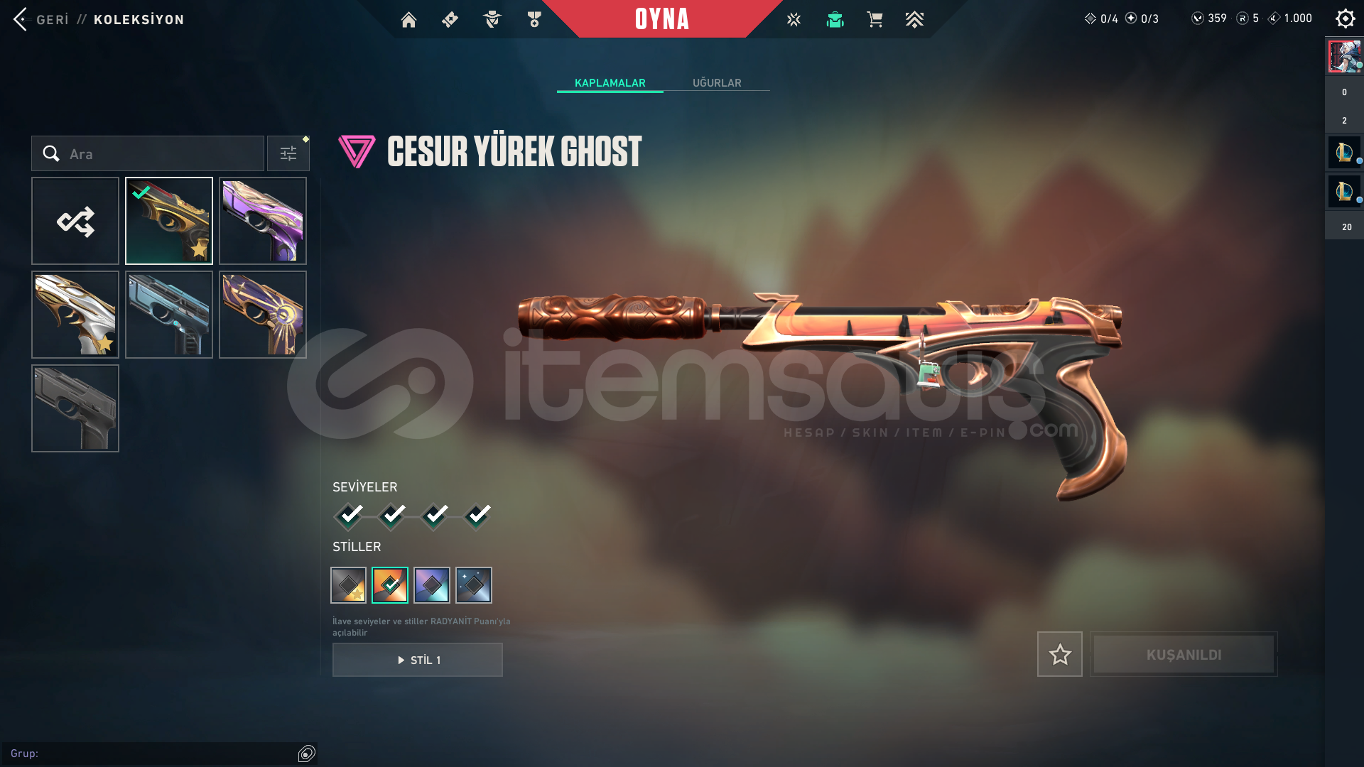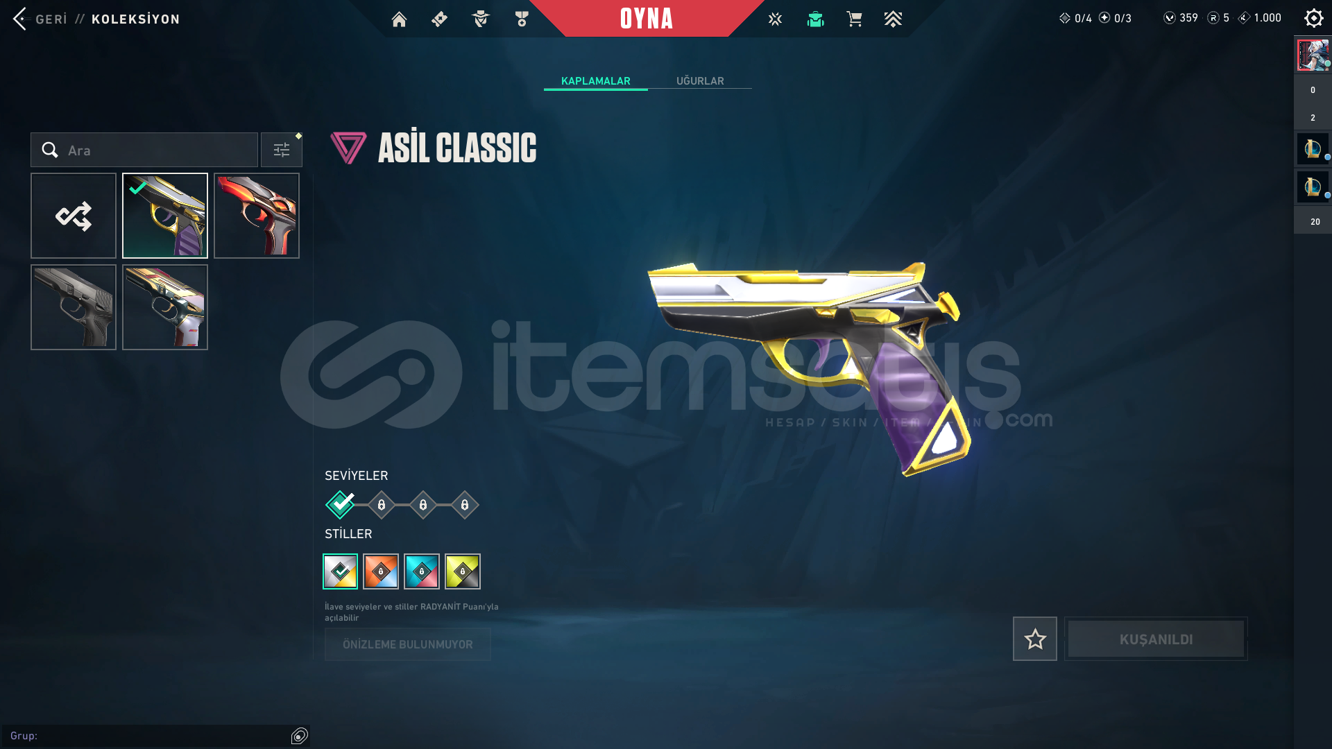 Hesapta göründüğü gibi skinler vardır