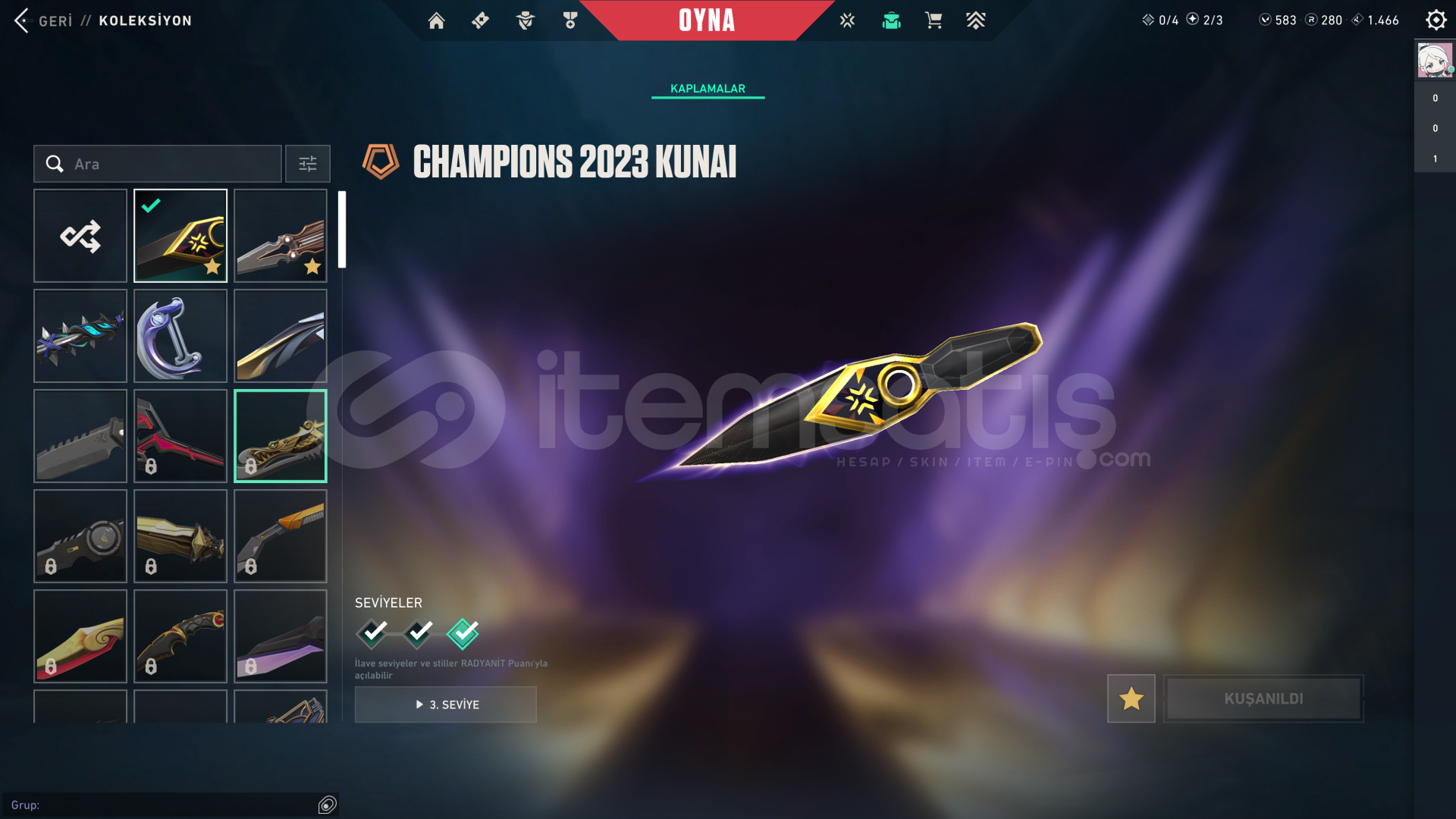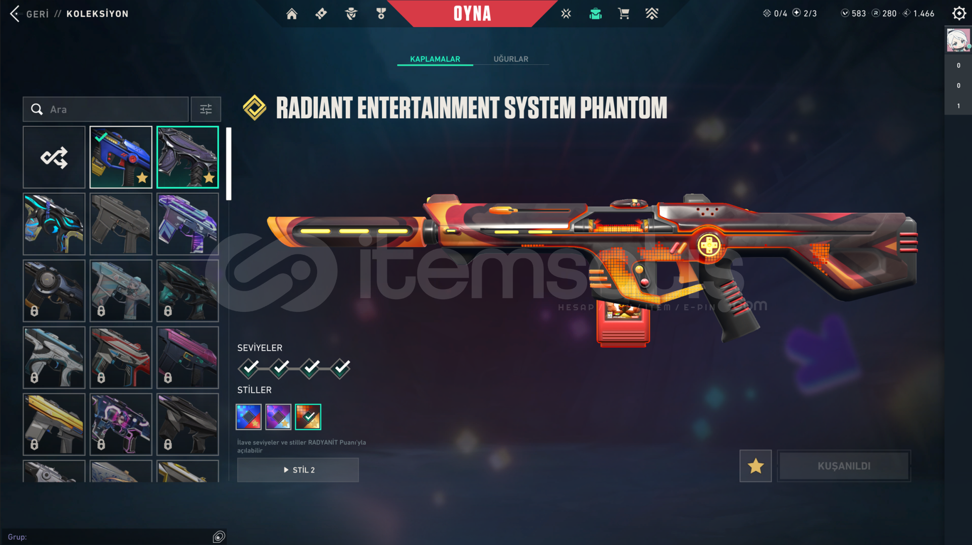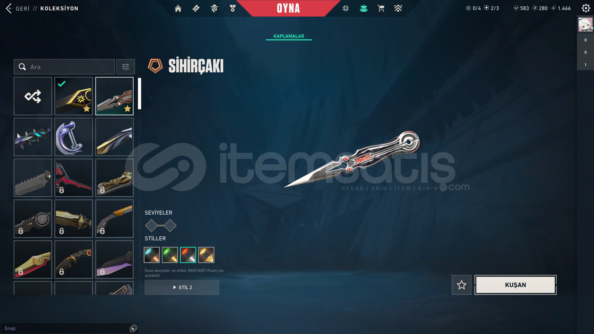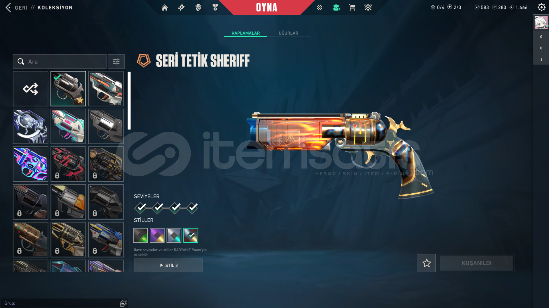 Hesap içeriği:SERİ TETİK SHERIFF,YİTİK SPECTRE,CHAMPIONS 2023 KUANI BIÇAK,SİHİRÇAKI BIÇAK,CHAMPIONS 2023 VANDAL,ASİL VANDAL,YAĞMACI VANDAL,GAIANIN İNTİKAMI VANDAL,YAĞMACI PHANTOM,RADIANT ENTERTAINMENT SYSTEM PHANTOM,KÖKEN OPERATOR.