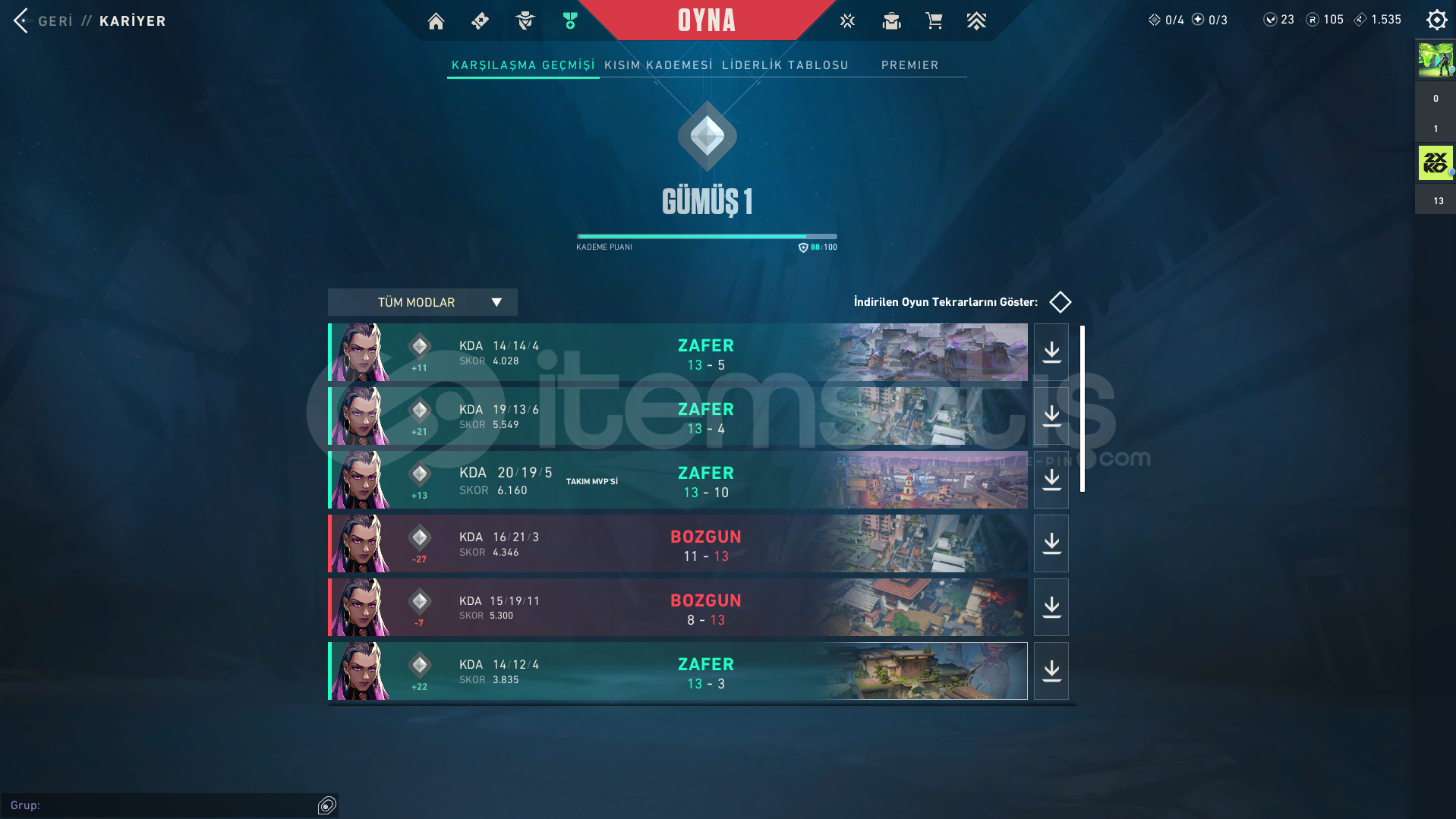 Ürün Hakkında Bilgi;İLANI SATIN ALDIĞINIZDA 7/24 OTOMATİK OLARAK TESLİM EDİLİR.RANK - GÜMÜŞ 1HESAP SEVİYESİ - 34SKİN SAYISI - 1VP SAYISI - 23+ 100.000 BAŞARILI İŞLEM İLE GÜVENLE ALIŞVERİŞ YAPABİLİRSİNİZ