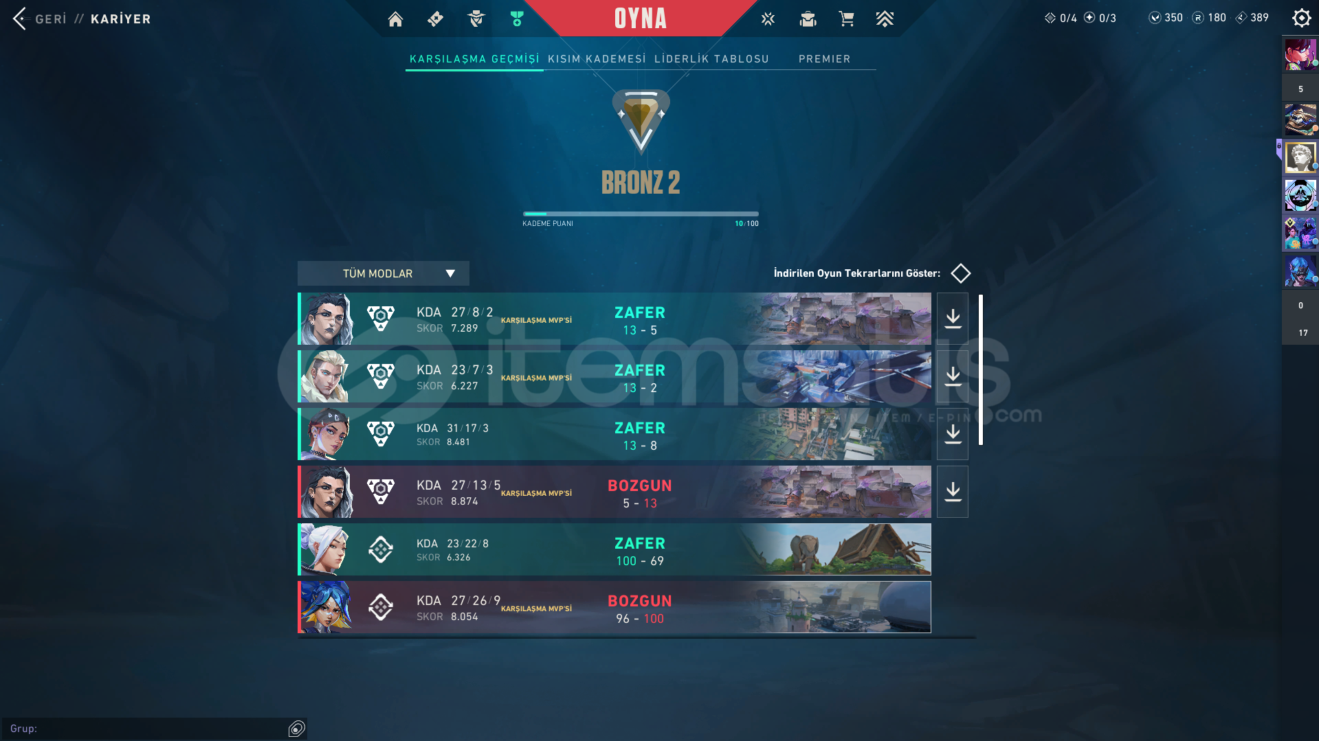 Ürün Hakkında Bilgi;İLANI SATIN ALDIĞINIZDA 7/24 OTOMATİK OLARAK TESLİM EDİLİR.RANK - BRONZ 2HESAP SEVİYESİ - 58SKİN SAYISI - 13VP SAYISI - 350+ 100.000 BAŞARILI İŞLEM İLE GÜVENLE ALIŞVERİŞ YAPABİLİRSİNİZ
