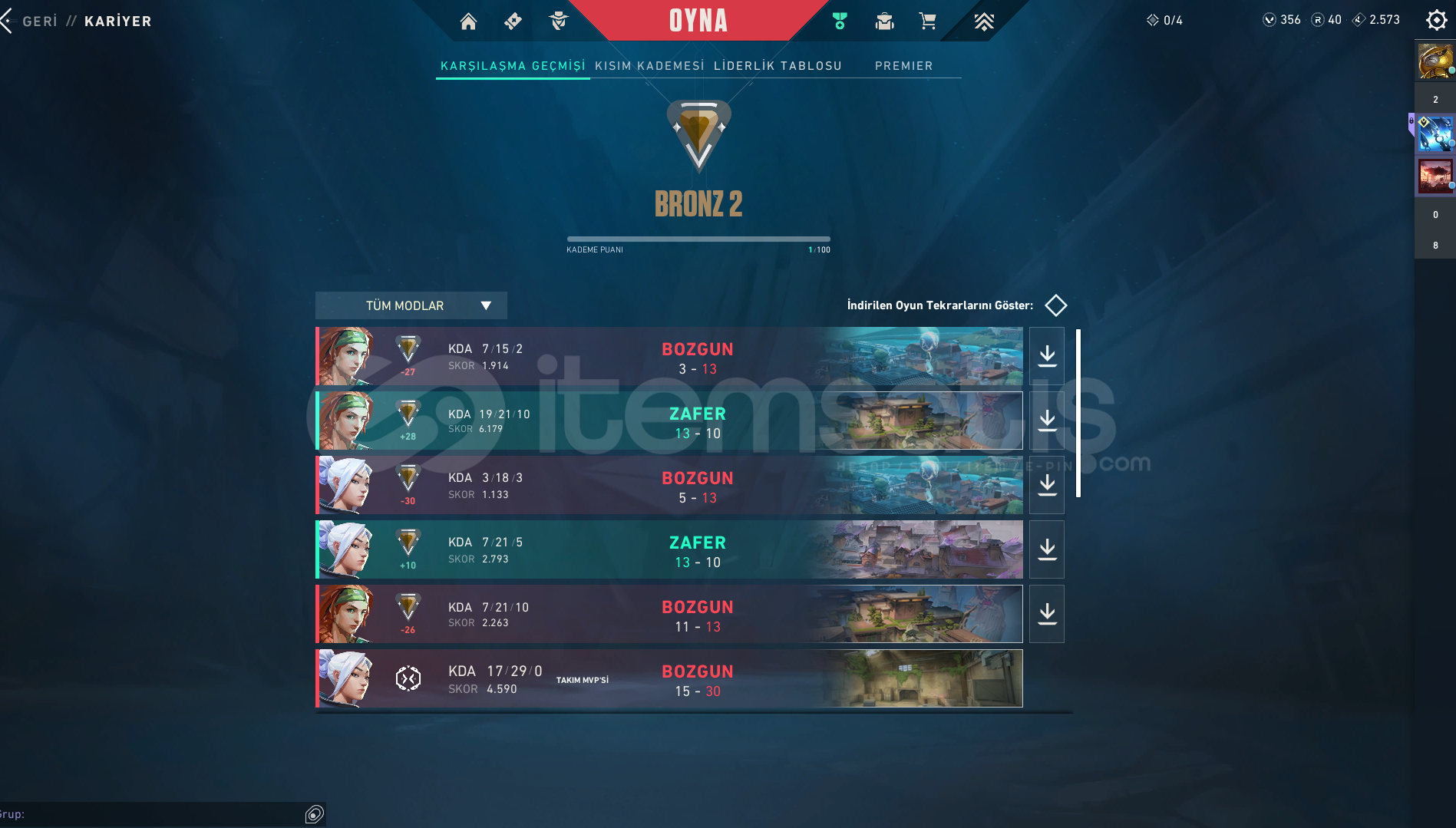 Ürün Hakkında Bilgi;İLANI SATIN ALDIĞINIZDA 7/24 OTOMATİK OLARAK TESLİM EDİLİR.RANK - BRONZ 2HESAP SEVİYESİ - 30SKİN SAYISI - 2VP SAYISI - 356+ 100.000 BAŞARILI İŞLEM İLE GÜVENLE ALIŞVERİŞ YAPABİLİRSİNİZ