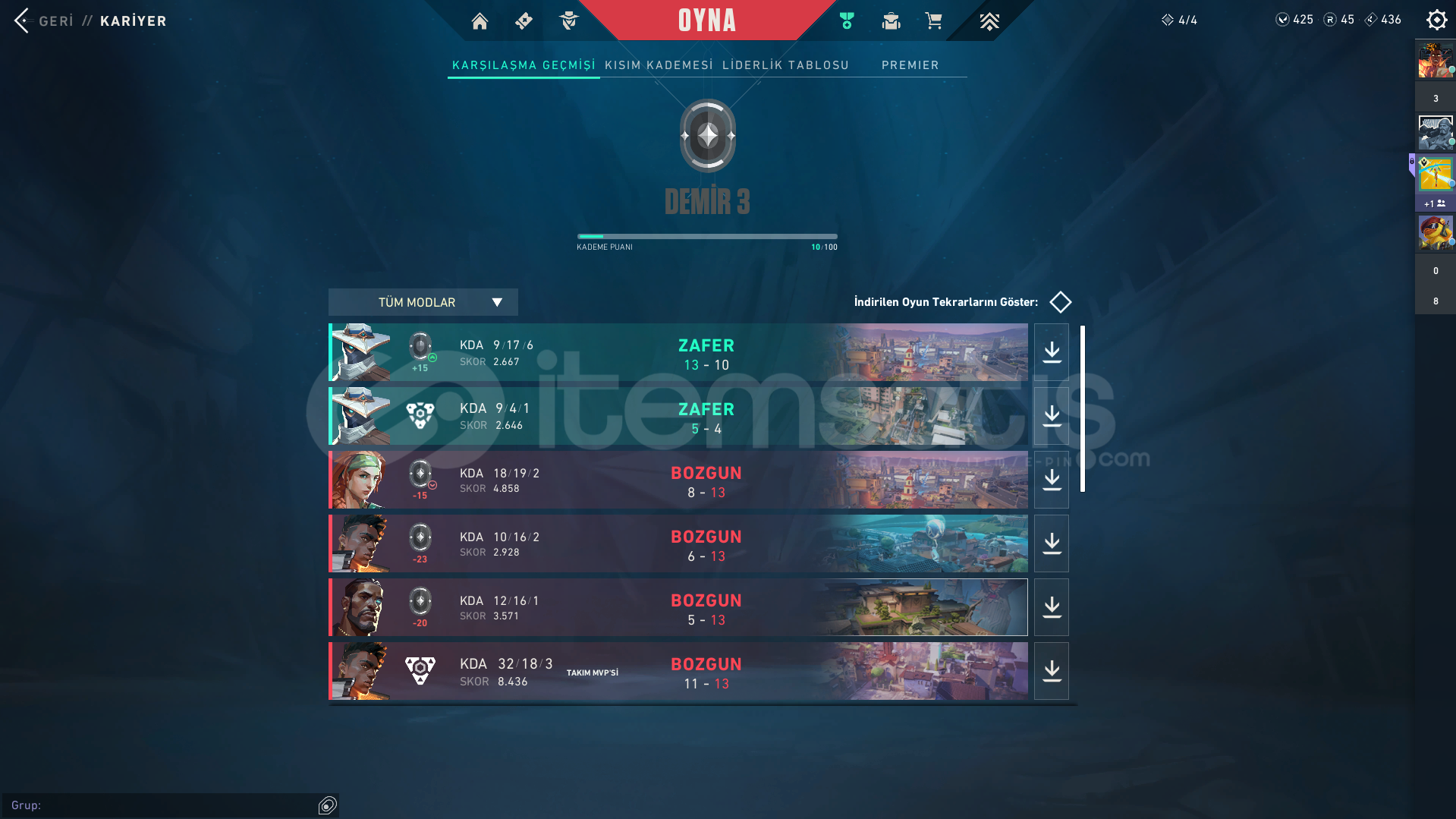 Ürün Hakkında Bilgi;İLANI SATIN ALDIĞINIZDA 7/24 OTOMATİK OLARAK TESLİM EDİLİR.RANK - DEMİR 3HESAP SEVİYESİ - 29SKİN SAYISI - 1VP SAYISI - 425+ 100.000 BAŞARILI İŞLEM İLE GÜVENLE ALIŞVERİŞ YAPABİLİRSİNİZ