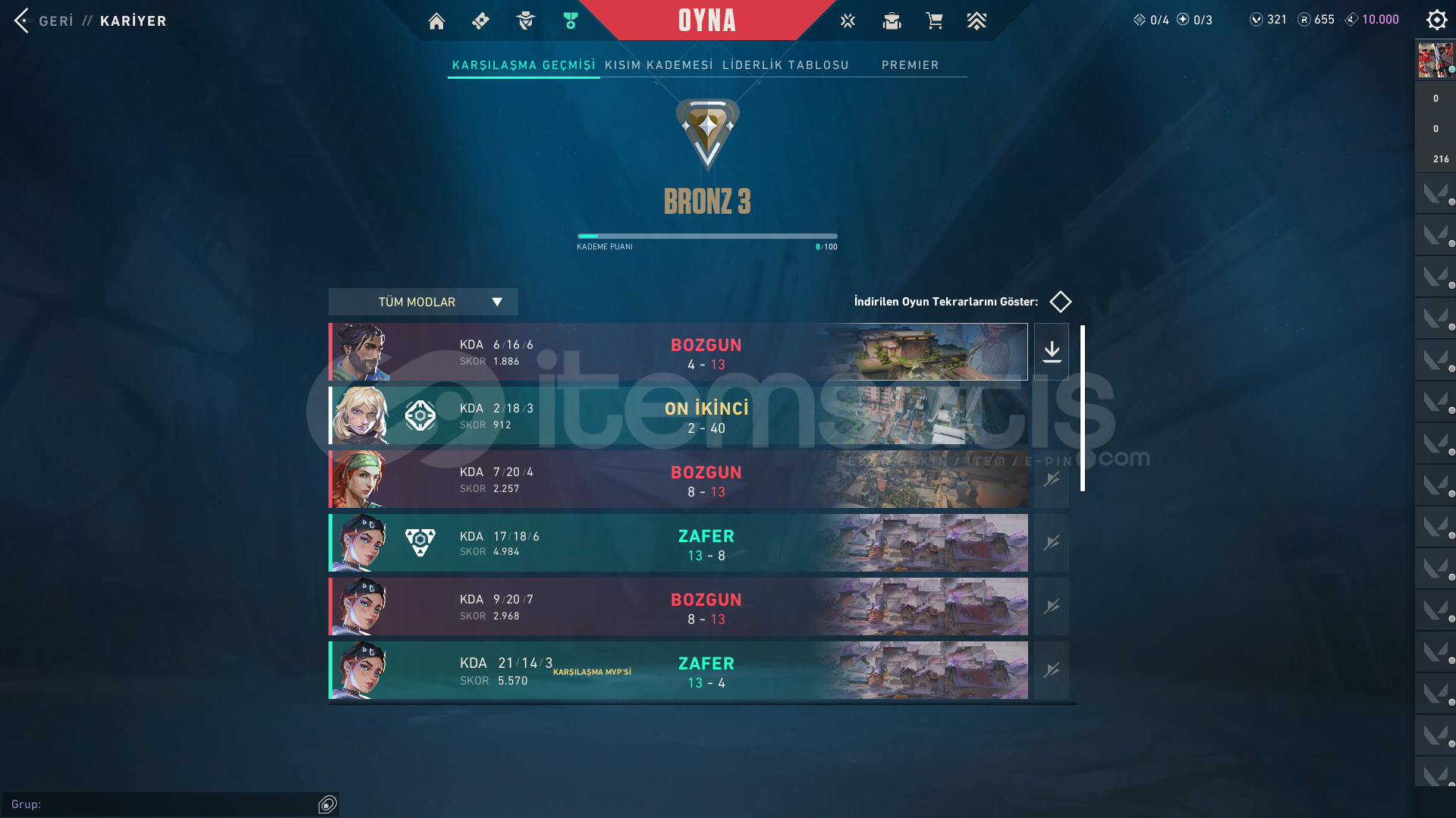 Ürün Hakkında Bilgi;İLANI SATIN ALDIĞINIZDA 7/24 OTOMATİK OLARAK TESLİM EDİLİR.RANK - BRONZ 3HESAP SEVİYESİ - 172SKİN SAYISI - 20VP SAYISI - 321+ 100.000 BAŞARILI İŞLEM İLE GÜVENLE ALIŞVERİŞ YAPABİLİRSİNİZ