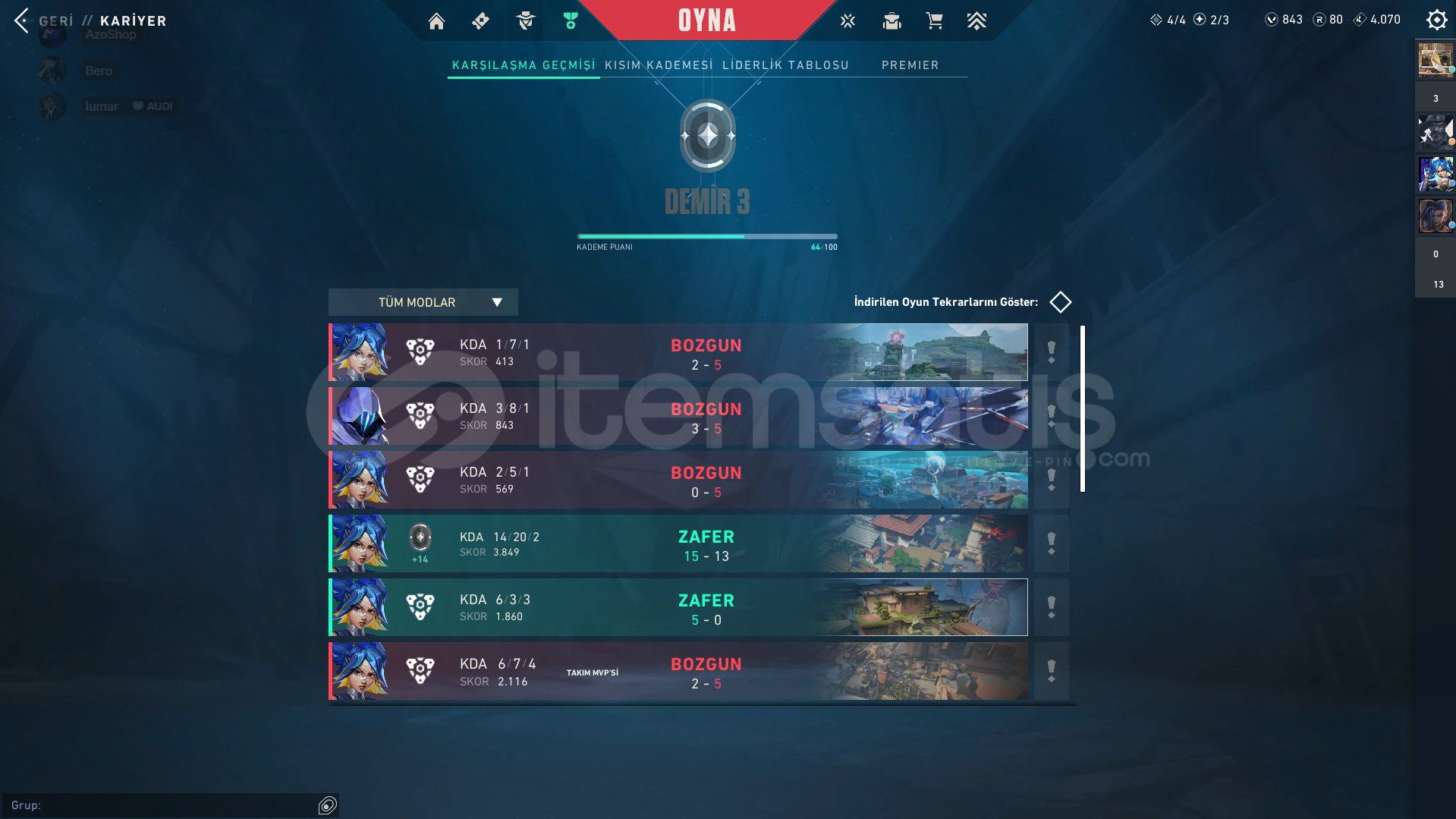 Ürün Hakkında Bilgi;İLANI SATIN ALDIĞINIZDA 7/24 OTOMATİK OLARAK TESLİM EDİLİR.RANK - DEMİR 3HESAP SEVİYESİ - 33SKİN SAYISI - 1VP SAYISI - 843+ 100.000 BAŞARILI İŞLEM İLE GÜVENLE ALIŞVERİŞ YAPABİLİRSİNİZ