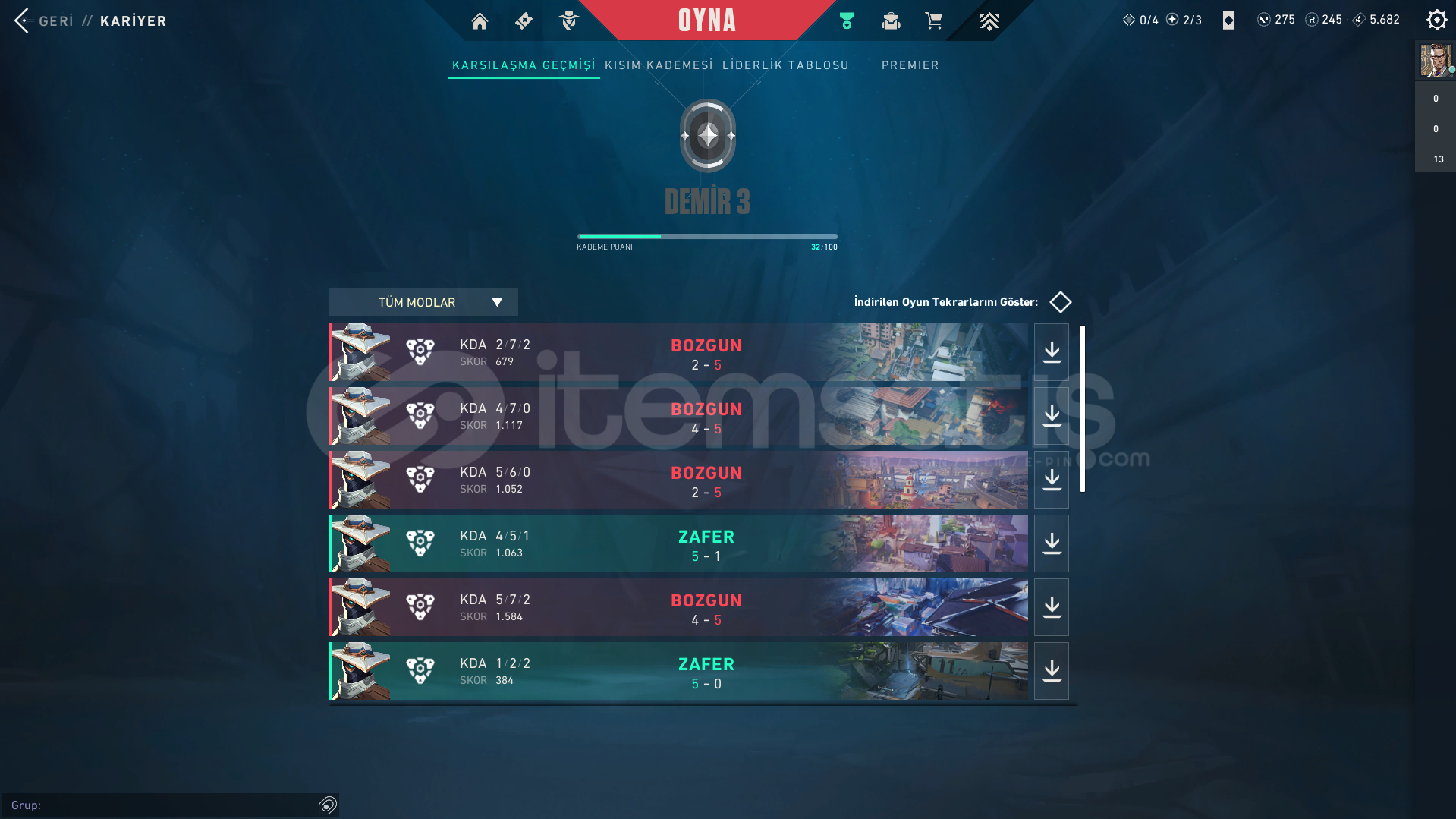 Ürün Hakkında Bilgi;İLANI SATIN ALDIĞINIZDA 7/24 OTOMATİK OLARAK TESLİM EDİLİR.RANK - DEMİR 3HESAP SEVİYESİ - 61SKİN SAYISI - 3VP SAYISI - 275+ 100.000 BAŞARILI İŞLEM İLE GÜVENLE ALIŞVERİŞ YAPABİLİRSİNİZ
