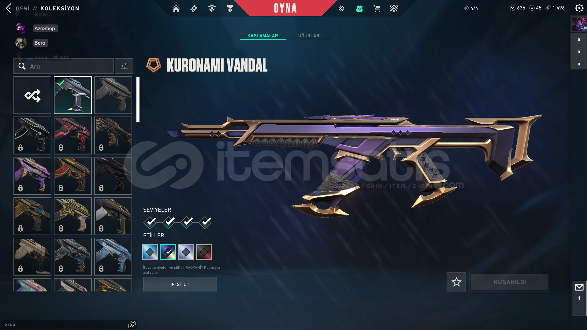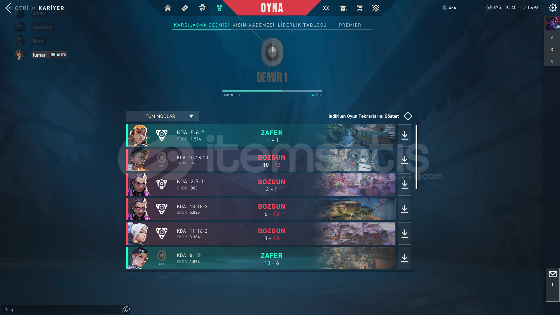Ürün Hakkında Bilgi;İLANI SATIN ALDIĞINIZDA 7/24 OTOMATİK OLARAK TESLİM EDİLİR.RANK - DEMİR 1HESAP SEVİYESİ - 31SKİN SAYISI - 1VP SAYISI - 675+ 100.000 BAŞARILI İŞLEM İLE GÜVENLE ALIŞVERİŞ YAPABİLİRSİNİZ