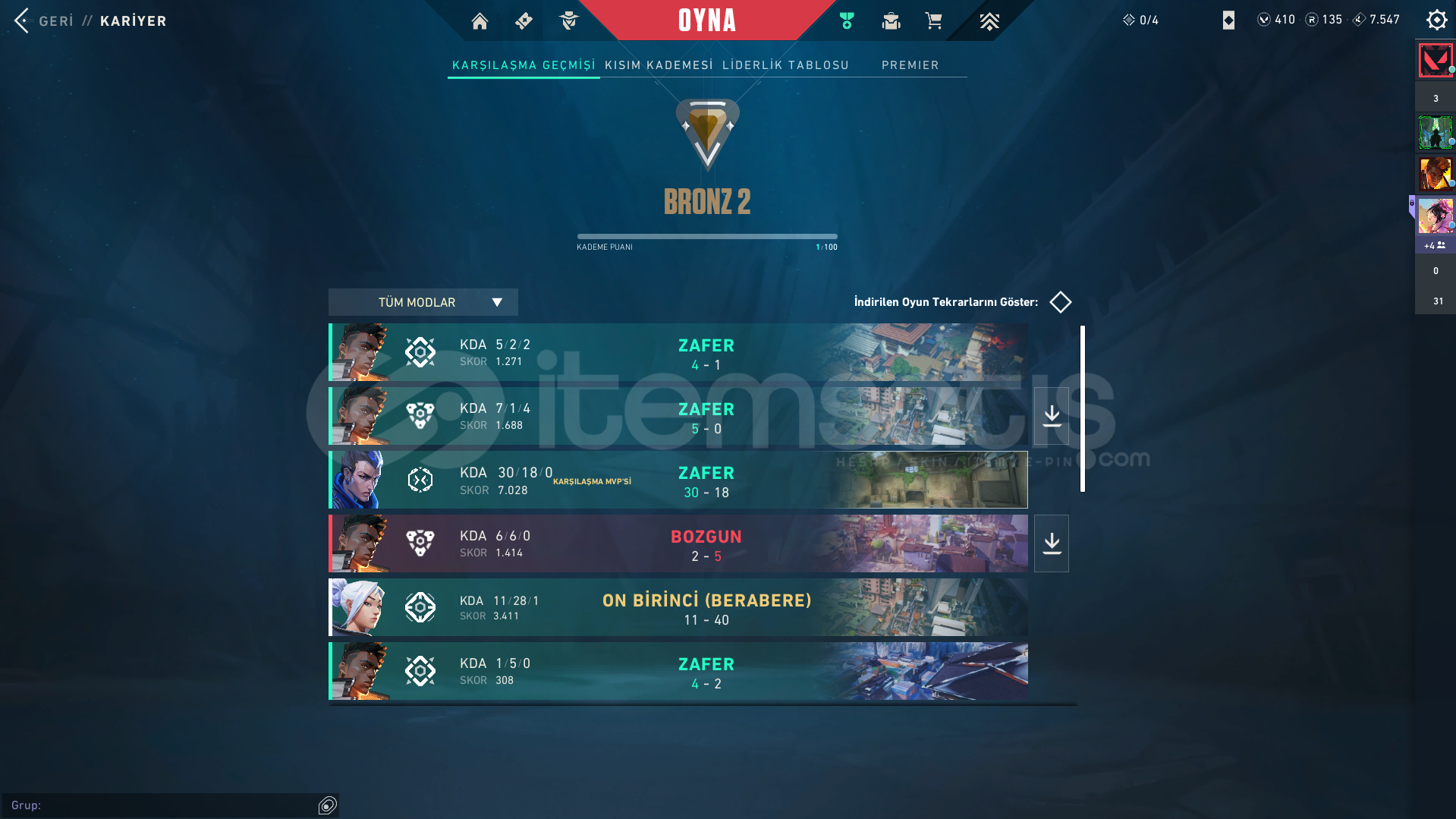 Ürün Hakkında Bilgi;İLANI SATIN ALDIĞINIZDA 7/24 OTOMATİK OLARAK TESLİM EDİLİR.RANK - BRONZ 2HESAP SEVİYESİ - 42SKİN SAYISI - 2VP SAYISI - 410+ 100.000 BAŞARILI İŞLEM İLE GÜVENLE ALIŞVERİŞ YAPABİLİRSİNİZ
