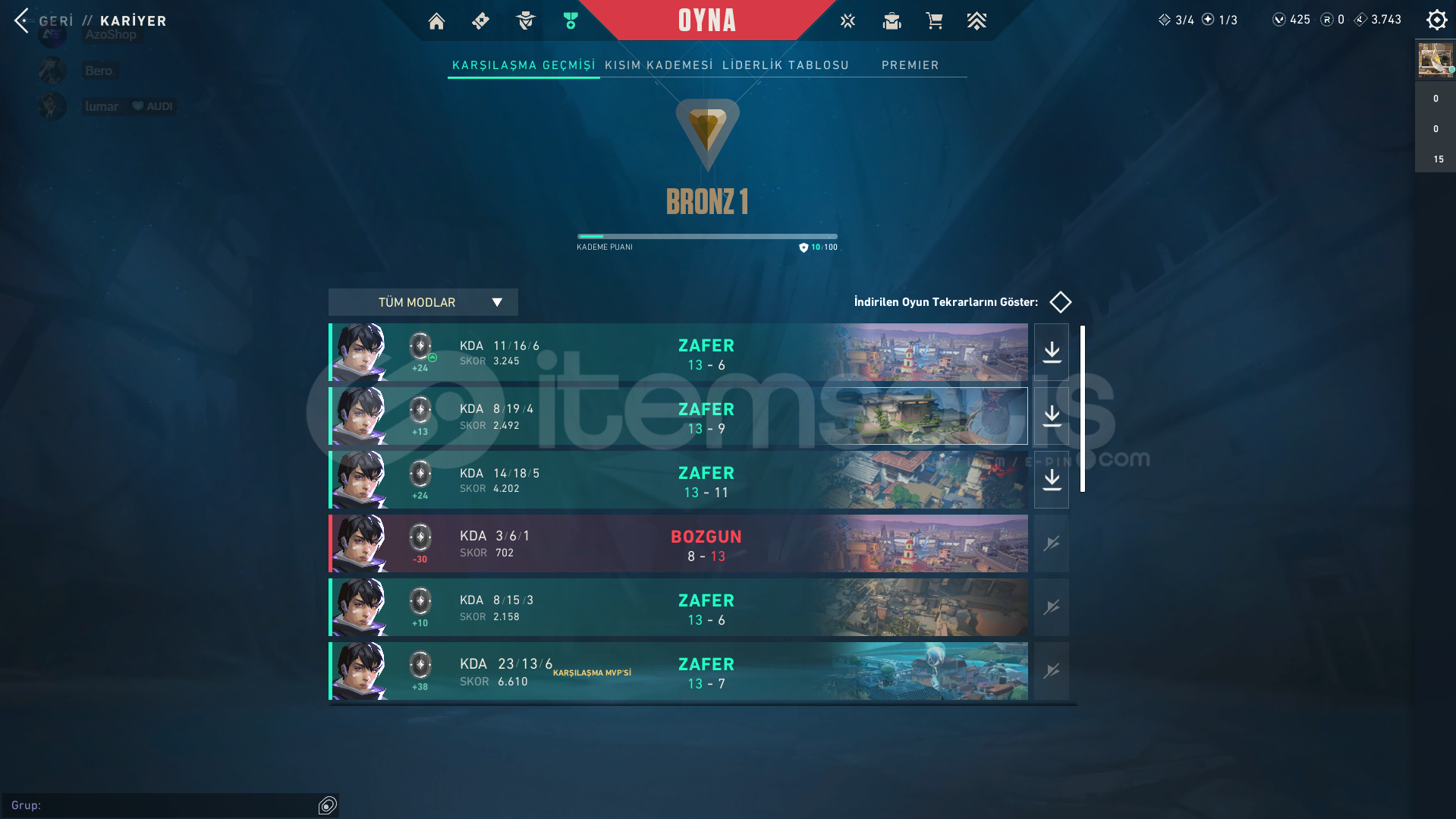 Ürün Hakkında Bilgi;İLANI SATIN ALDIĞINIZDA 7/24 OTOMATİK OLARAK TESLİM EDİLİR.RANK - BRONZ 1HESAP SEVİYESİ - 24SKİN SAYISI - 1VP SAYISI - 425+ 100.000 BAŞARILI İŞLEM İLE GÜVENLE ALIŞVERİŞ YAPABİLİRSİNİZ