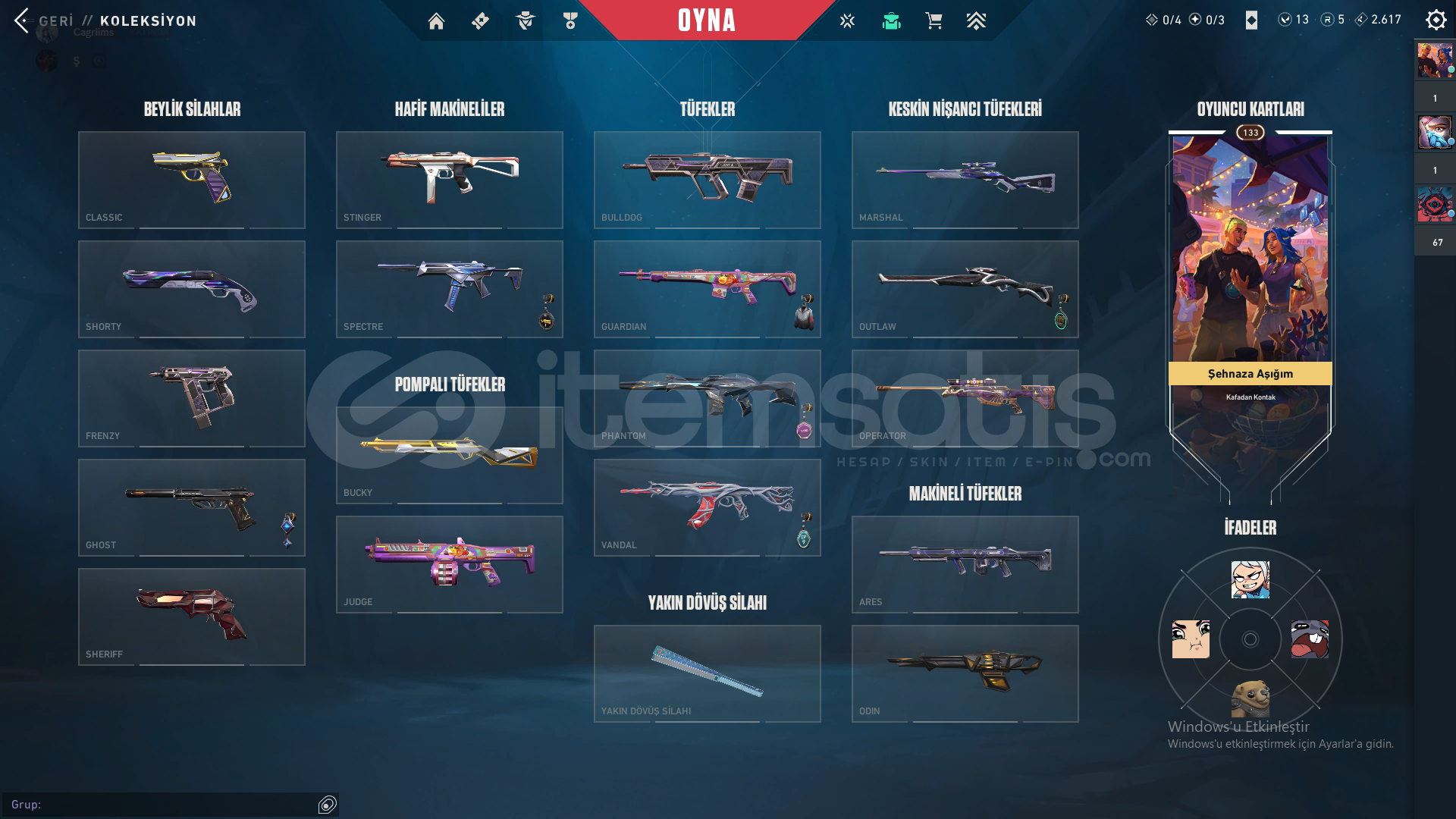 Asil ClassicFaz Koruyucu GhostAnomali SherifAsil//2.0 BuckyAnomali PhantomGaianın İntikamı VandalAnomali VandalDenge YalpazeDiğer bütün silahlarada battle pas skinleri mevcutturhesap ilk maili ile devredilecektir