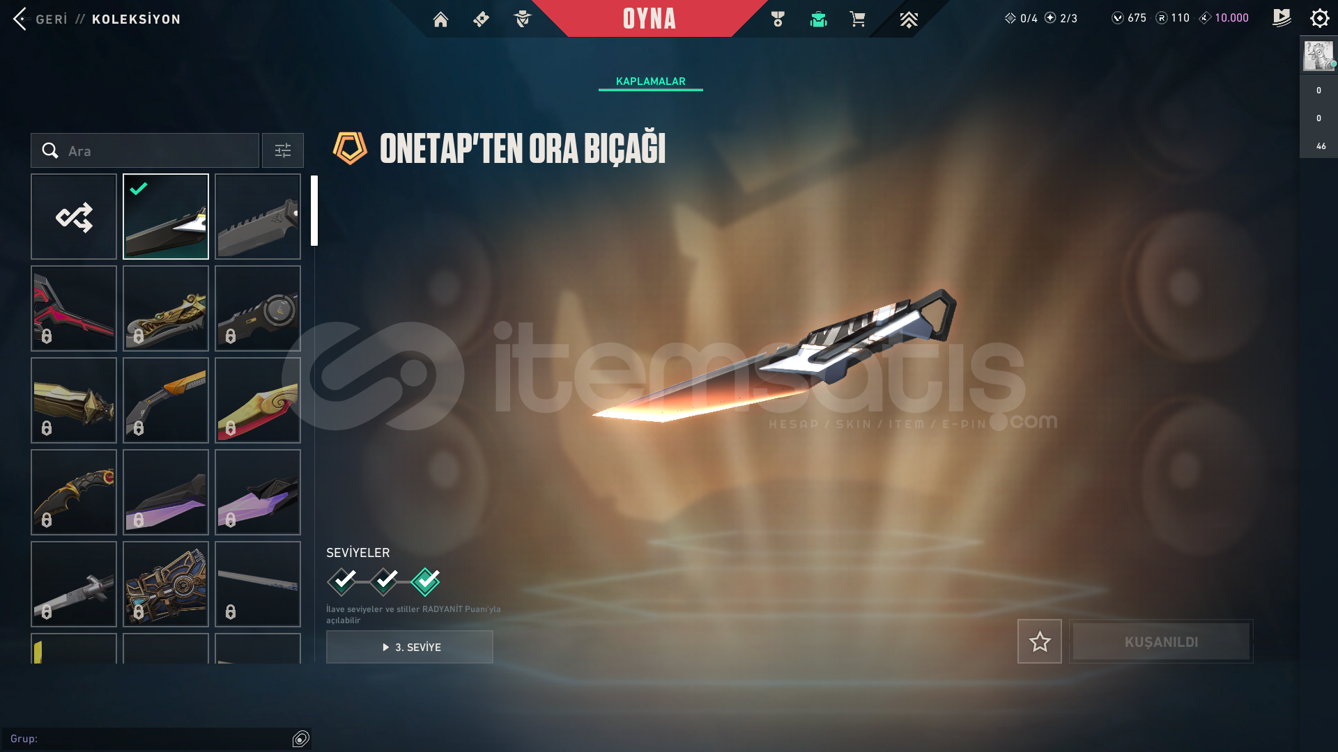 Hesapta ONETAP BIÇ, YAĞMACI VANDAL,İON PHANTOM VE BİR SÜRÜ SKİN  bulunur.