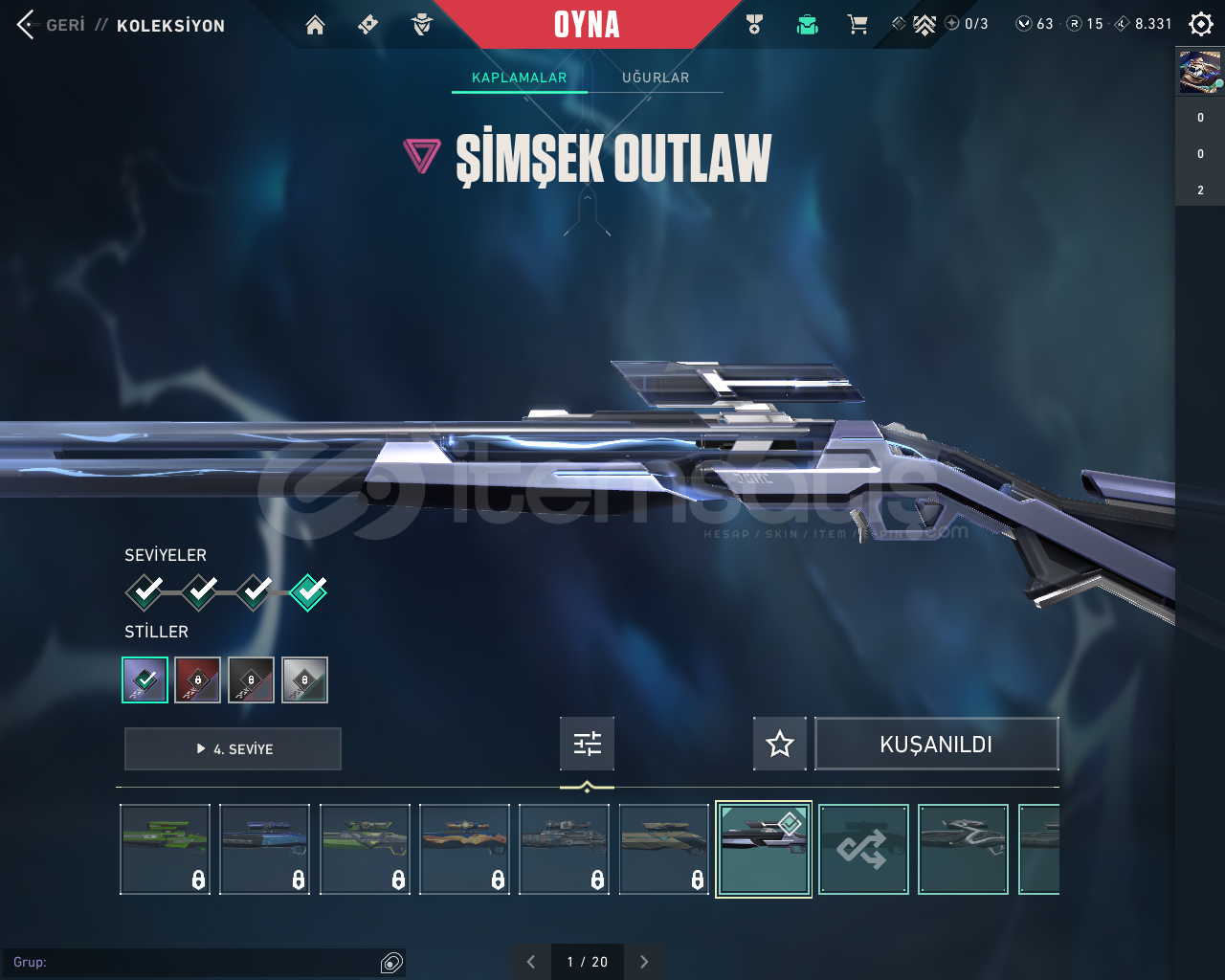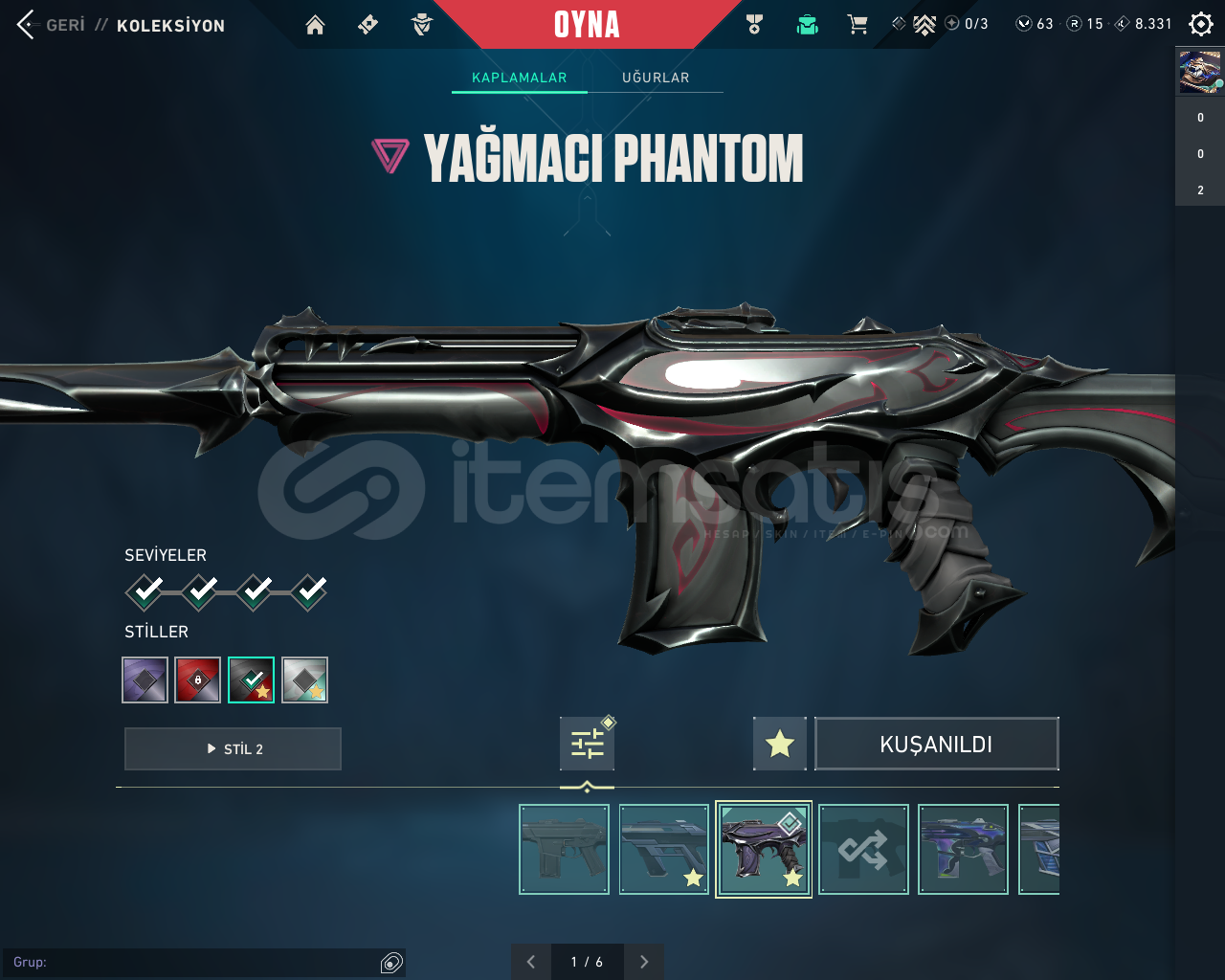 HESAPTAKİ SKİNLER ;ŞİMŞEK FRENZYYAĞMACI GHOSTAEMONDIR SHERİFŞİMŞEK SPECTRERADİANT KRİZİ BUCKYONİ GUARDİANYAĞMACI PHANTOMŞİMŞEK PHANTOMKAOS VANDALŞİMŞEK BAYONET2 BATTLE PASS BIÇAĞIŞİMŞEK OUTLAWVE GERİYE KALAN SKİNLERDE DE BATTLEPASS AÇILMIŞTIR