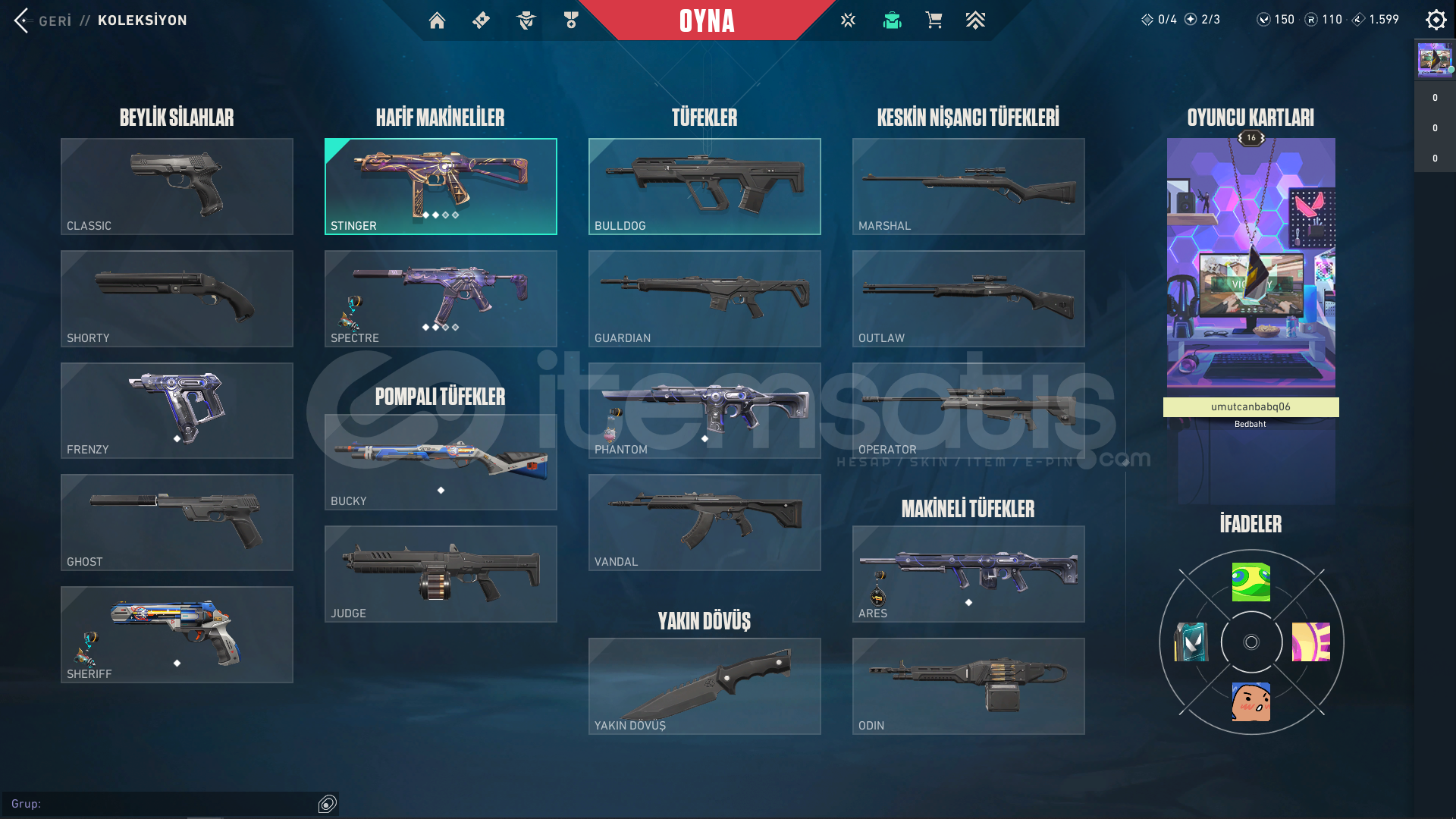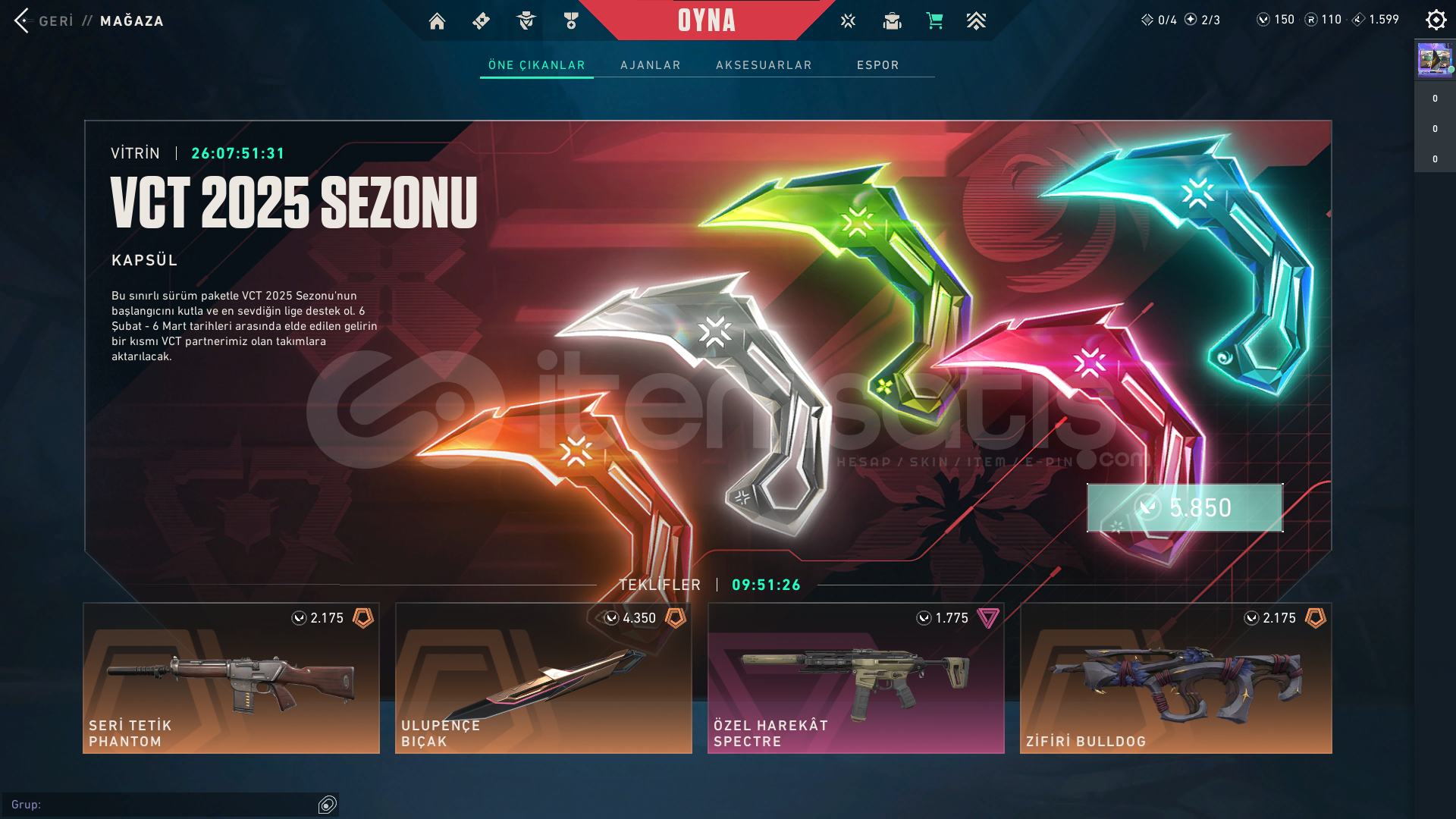 • 7 SKİN bulunmaktadır , 110 RADYANİT ve 150 VP Mevcuttur.