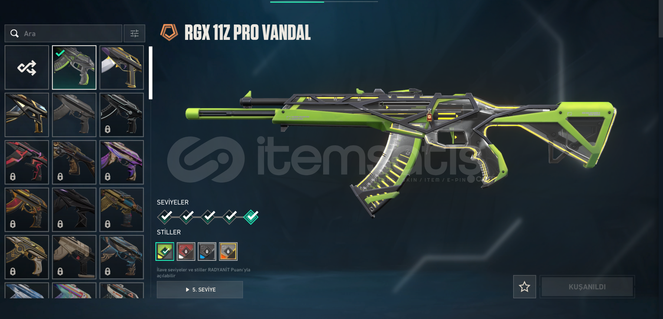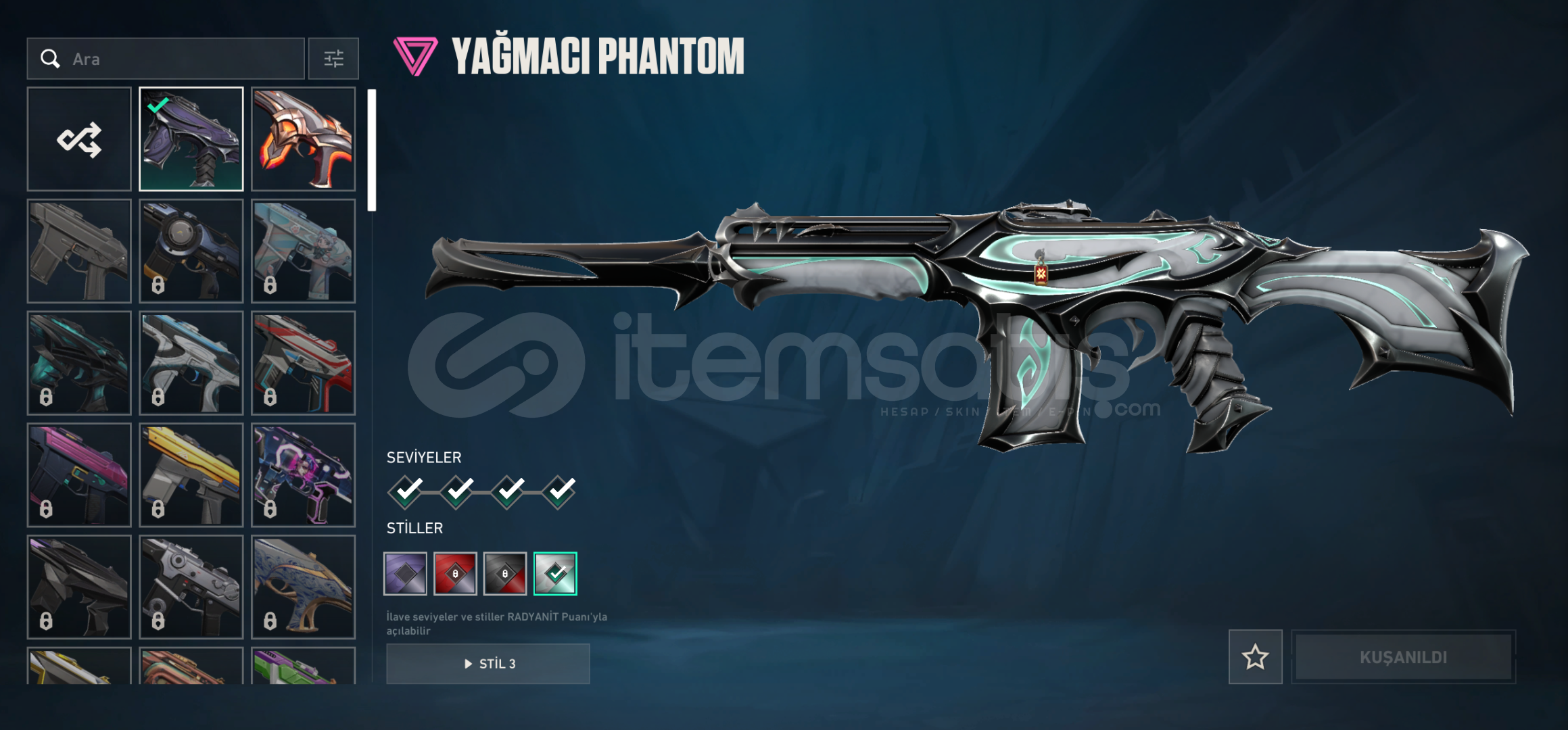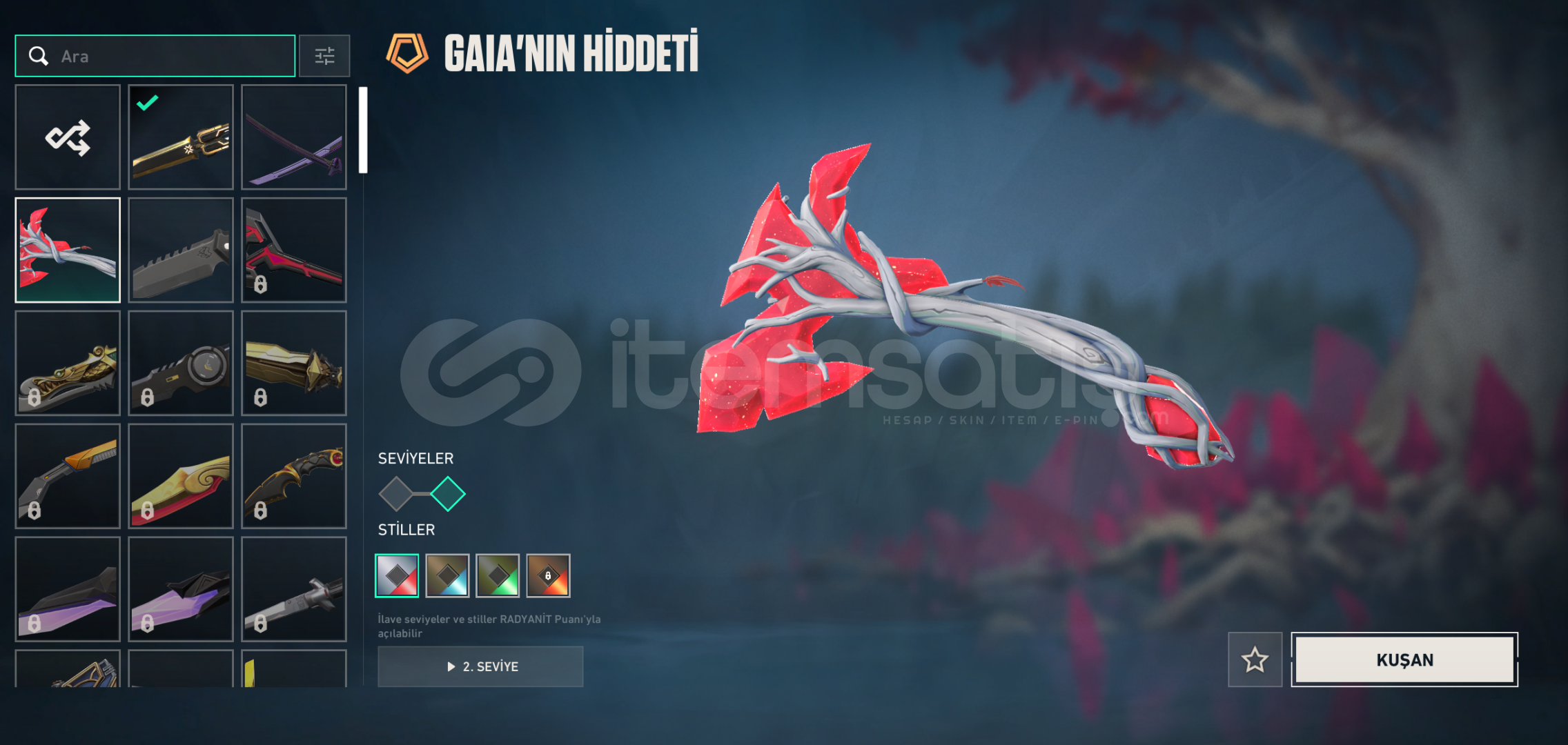 Hesap şahsıma aittir, her şeyi değişmekte. Fiyat için iletişime geçebilirsiniz.Hesabın içerisinde set olarak Champions 2025 seti bulunuyor.Tekli skin olarak;Evori Rüyakanatlar GhostYağmacı PhantomRgx 11Z Pro VandalChampions 2025 VandalAsil VandalChampions 2025 Kelebek BıçakGaia'nin hiddetiEX.O Kılıcı bulunuyor.