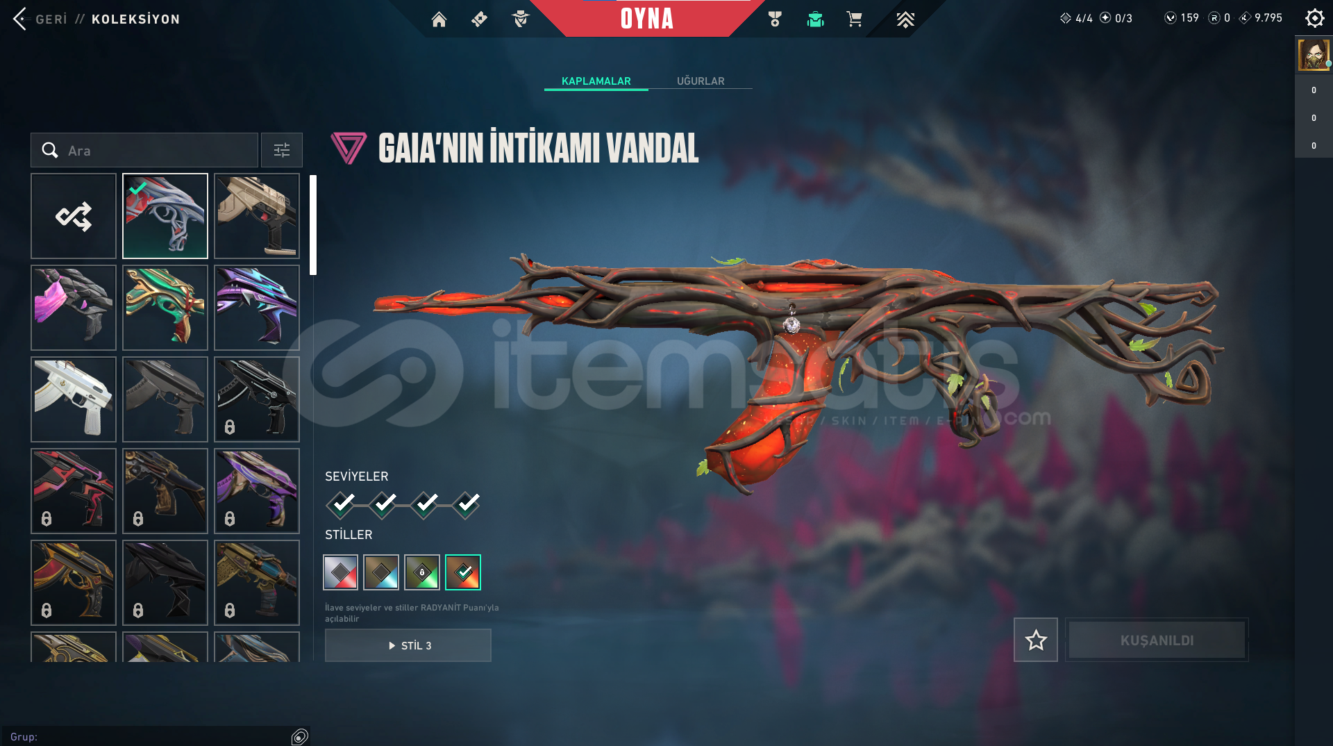 VANDAL SKİNLERİ: EJDERİN BUYRUĞU VANDAL GAİA VANDAL DOLMİR İN İNTİKAMI VANDAL NEPTÜN VANDAL VE 2 ADET BP VANDALLARI