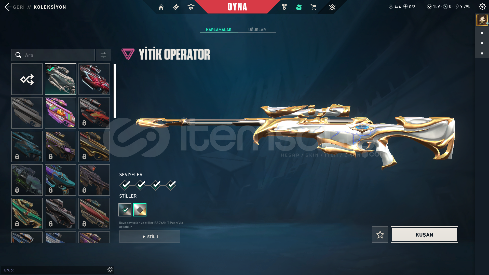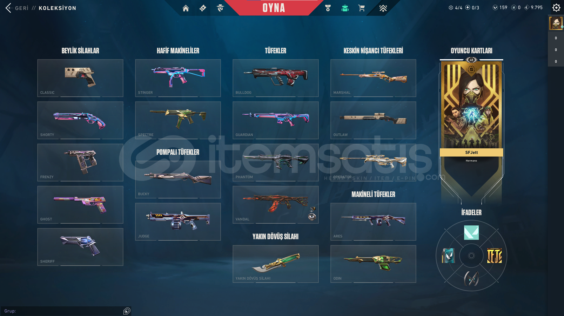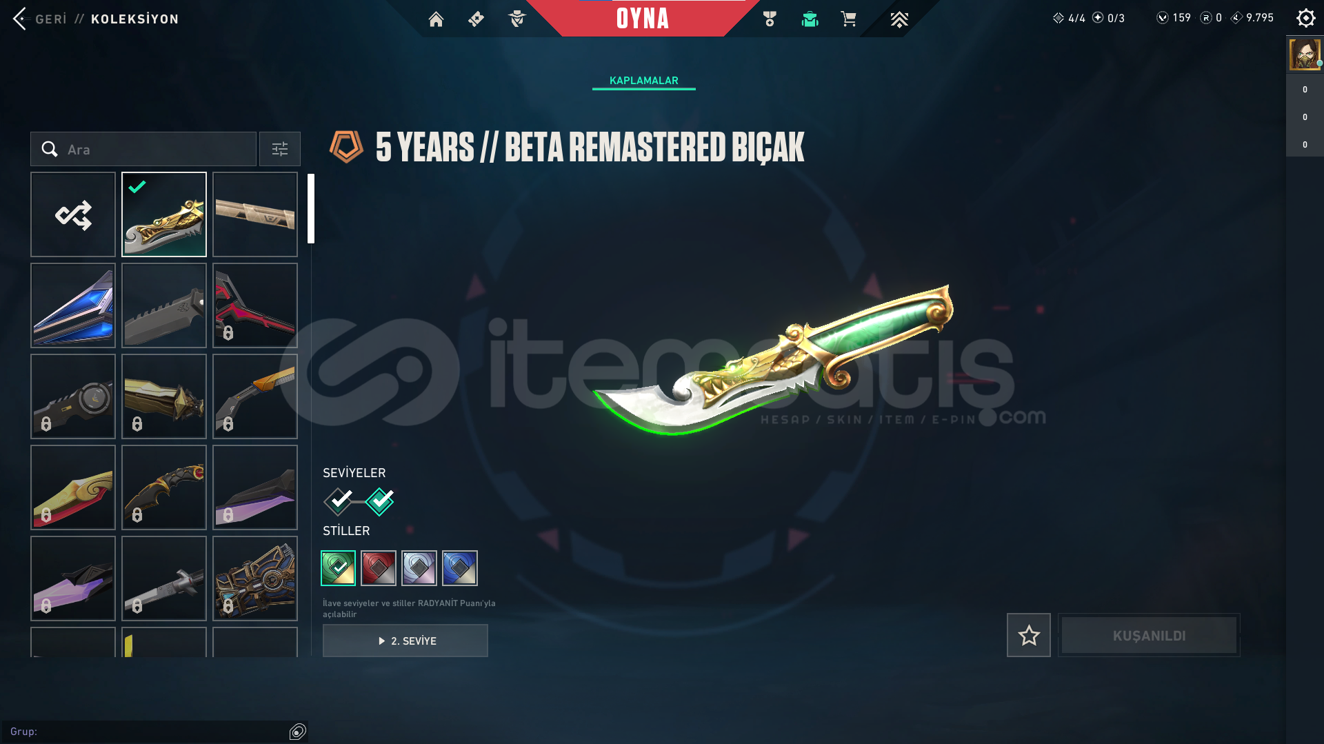 VANDAL SKİNLERİ: EJDERİN BUYRUĞU VANDAL GAİA VANDAL DOLMİR İN İNTİKAMI VANDAL NEPTÜN VANDAL VE 2 ADET BP VANDALLARI PHANTOM SKİNLERİ: HELEZON PHANTOM ANOMALİ PHANTOM VE 3 ADET BP PHANTOM BIÇAKLAR: 5 YEARS // BETA REMASTERED BIÇAK VE 2 ADET BP BIÇAK OPERATÖR SKİN LERİ: YİTİK OPERATÖR VE 2 ADET BP OPERATÖR BPLER: 2 ADET BİTİRİLMİŞ BP VAR BU SEZON BP A&Cc...