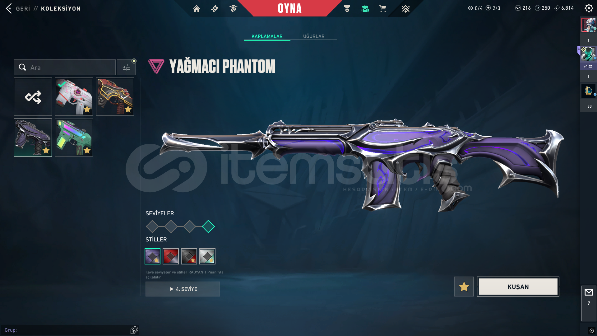 hesap mainliktirrank: yüce 1skinlervandal: yağmacı asil rgx faz koruyucuphantom: yağmacı spectrum onişerif: asilayriyeten yağmacı ghost spectre ve odin vardır1 battle pass ve yağmacı 2.0 seti vardır