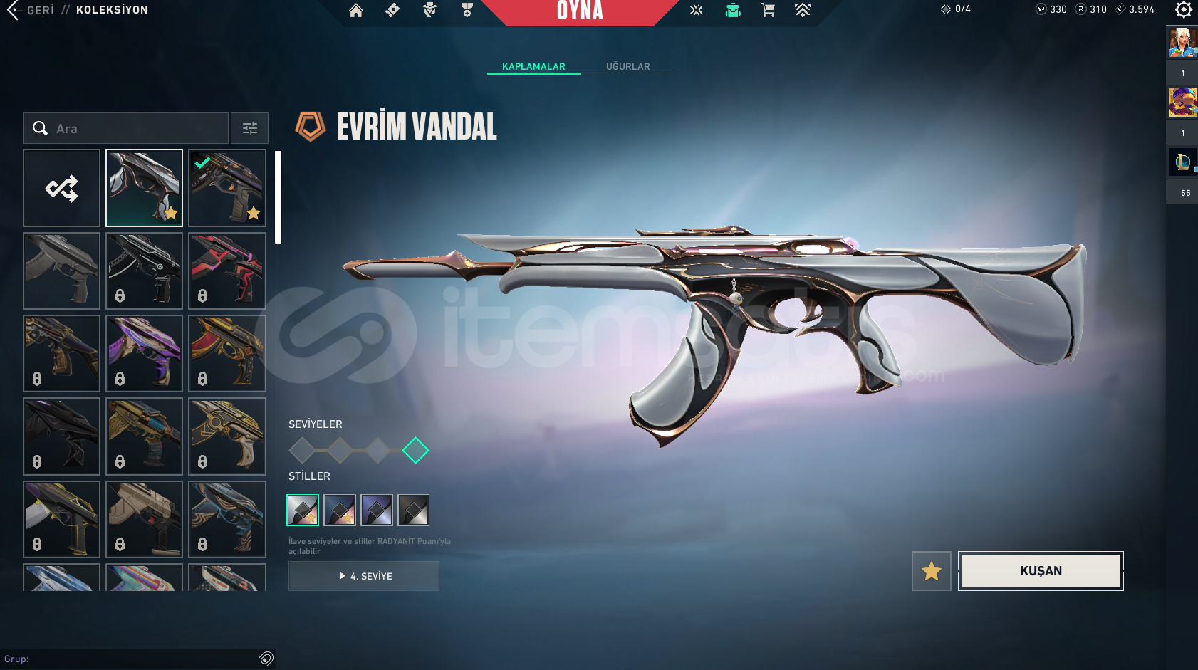 ALACAĞINIZ HESABIN MAİL ŞİFRE TÜM BİLGİLERİ DEĞİŞİR.GÖRSELDE GÖRDÜĞÜNÜZ HESAP TESLİM EDİLECEKTİR.SİLAH RENKLERİNİ SKİN OLARAK SAYMIYORUZ.DİĞER BÜTÇEYE UYGUN İSTEK SKİNLİ İLANLAR İÇİN BİZE ULAŞIN.