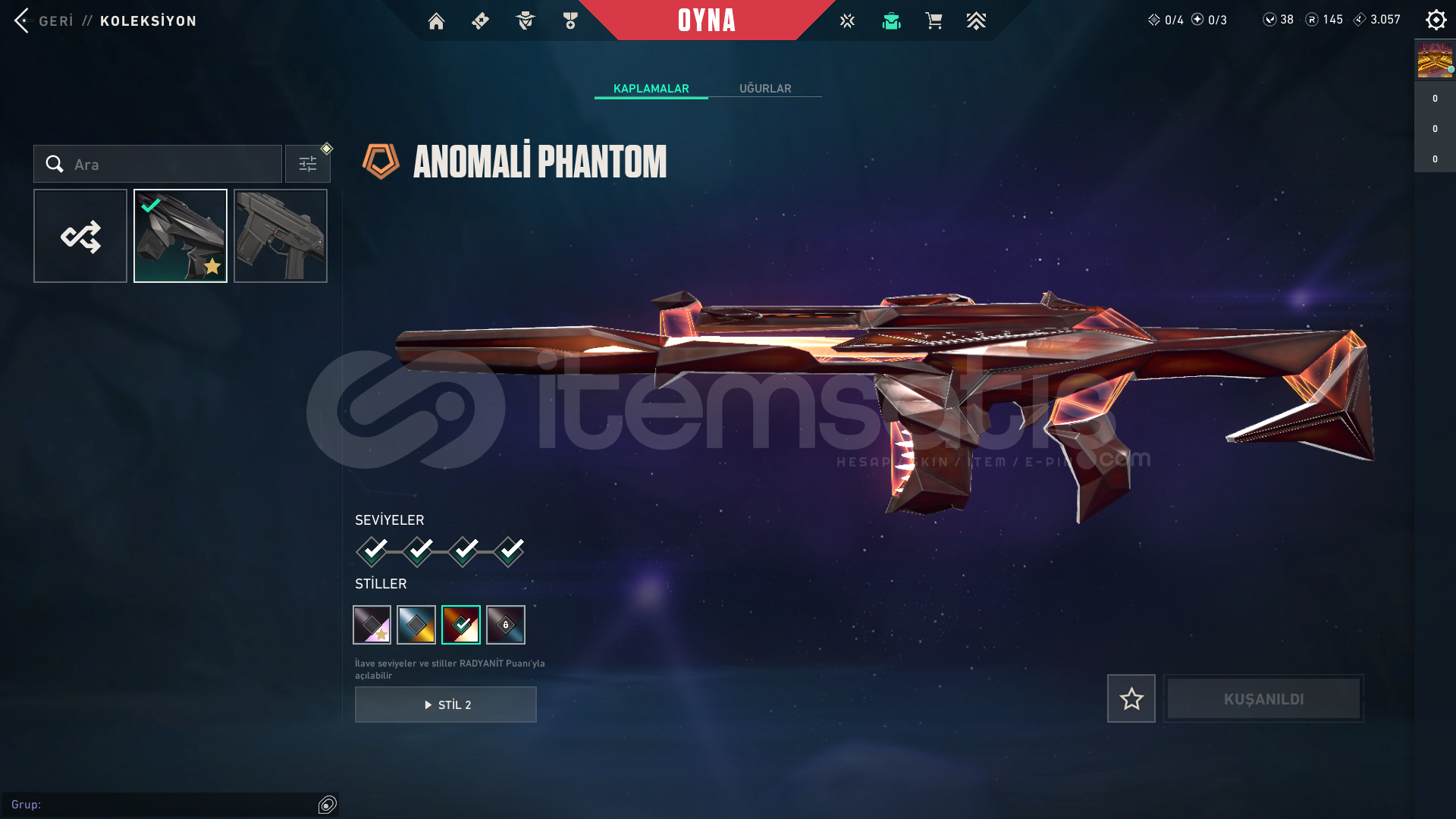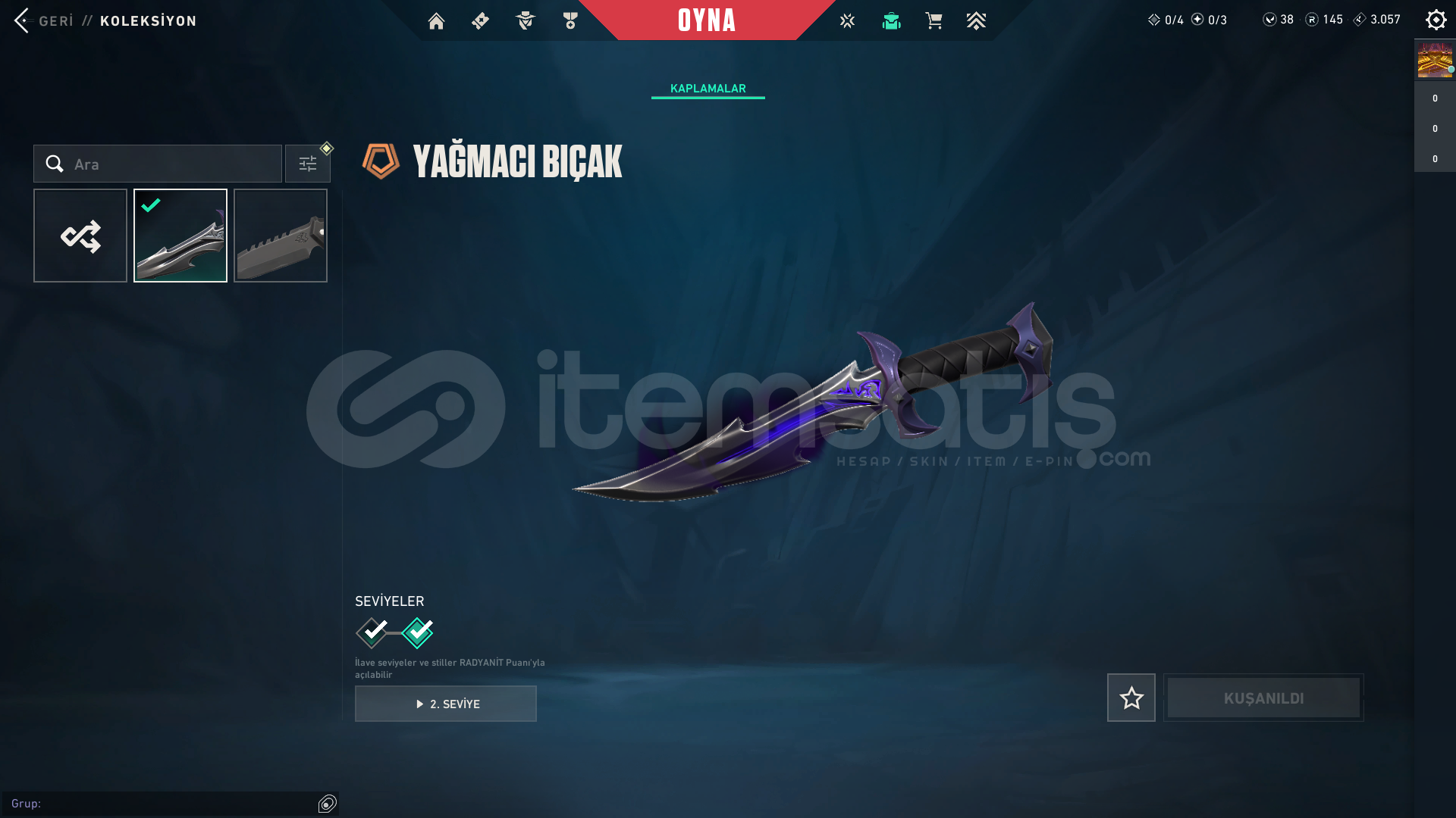 TR YAĞMACI BIÇAK VANDAL PHANTOM 15 SKİNLİ HESAP