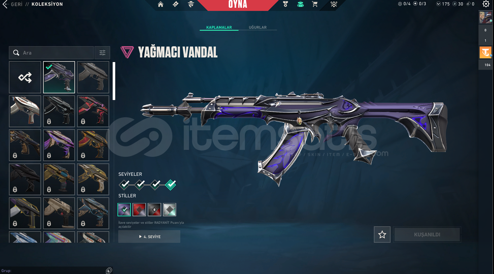 ALACAĞINIZ HESABIN MAİL ŞİFRE TÜM BİLGİLERİ DEĞİŞİR.GÖRSELDE GÖRDÜĞÜNÜZ HESAP TESLİM EDİLECEKTİR.SİLAH RENKLERİNİ SKİN OLARAK SAYMIYORUZ.SUNUCULAR TÜRKİYEDİR PİNGSİZ OYNANIR.DİĞER BÜTÇEYE UYGUN İSTEK SKİNLİ İLANLAR İÇİN BİZE ULAŞIN.