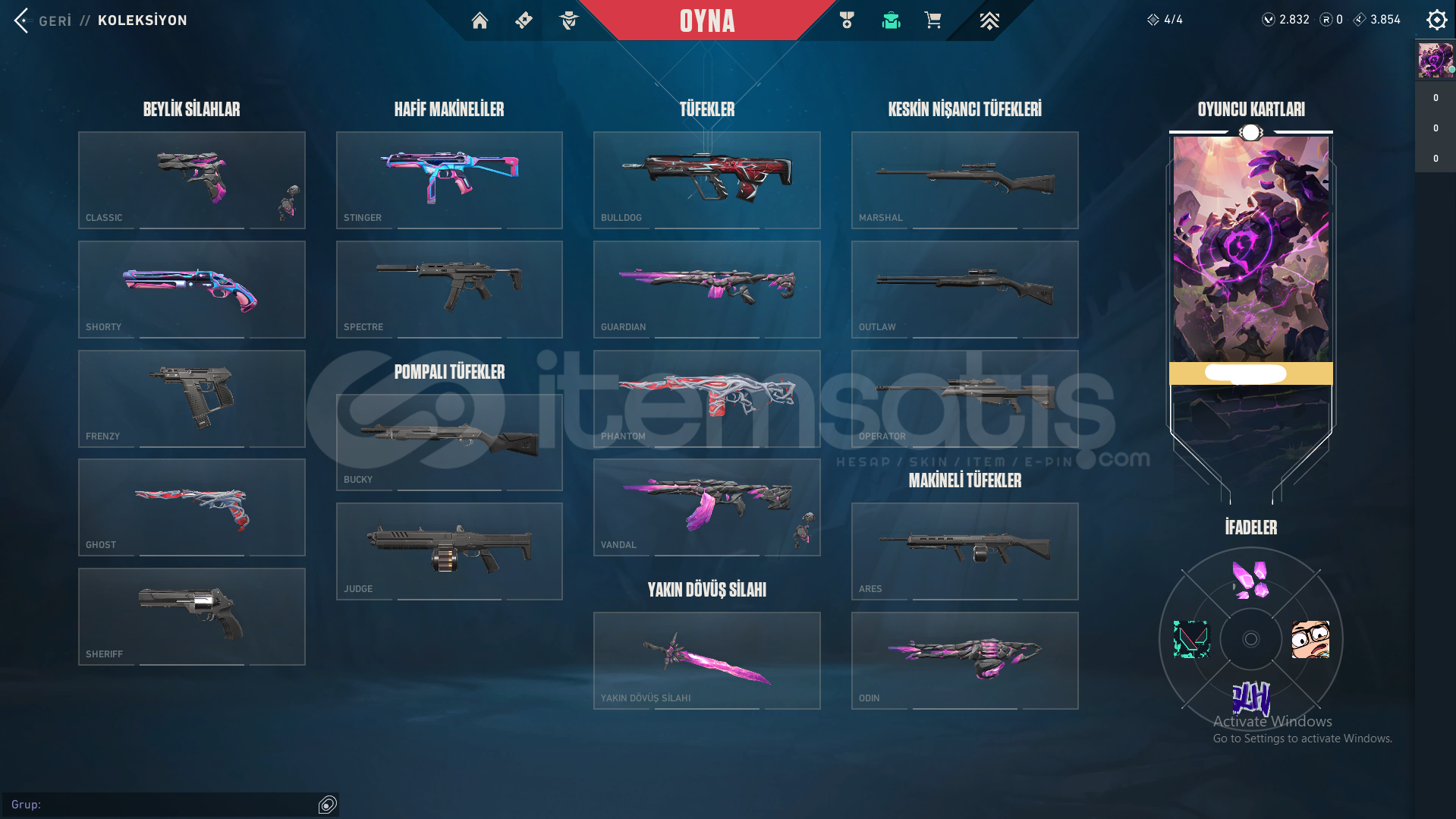 Valorant bol skinli E-Postalı hesaptırDolmir'in Adaleti seti, 2832 VP, Gaia Phantom, Gaia Ghost, bu sezon battlepasRank: Derecesiz220+ Başarılı işlemMailli hesaptır bilgileri size devredilmektedir, mevcut bilgileri kendi bilgileriniz ile değiştirebilirsiniz.Skinlerin tamamı fotoğraflara sığmayacağından önemli olan skinler gösterilmiştir