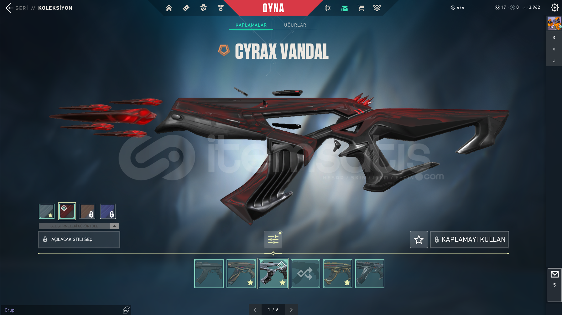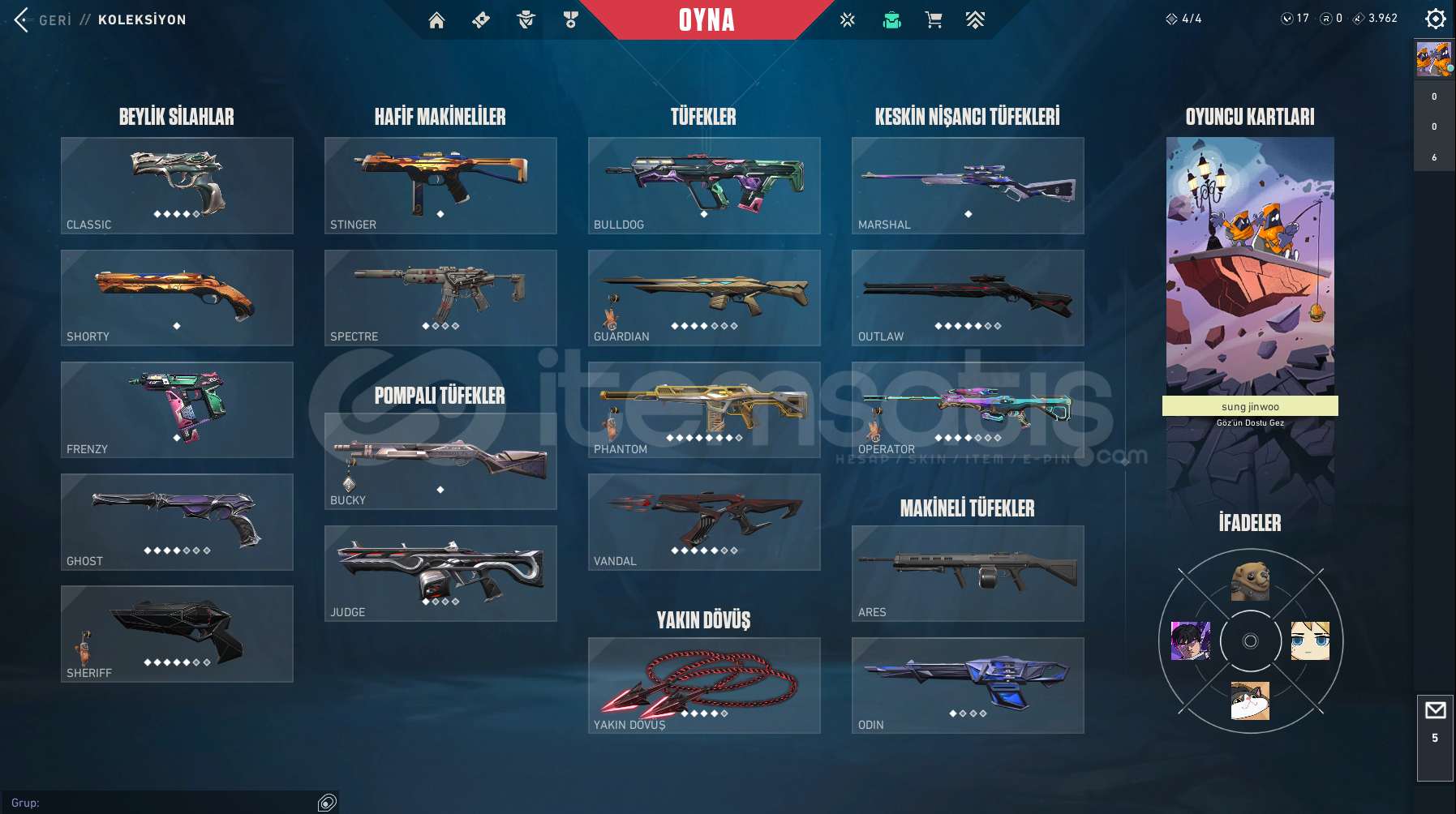 RANK: DIA PEAK: YUCELIK | MMR İYİ PAZARLIK VARDIRPhantom | RGX & Yıldız belasıVandal | Cyrax & Xerofang & Valiant HeroBıçaklar | Yıldızparçayalan & Gaianın Hiddeti & XenohunterSheriff | Yıldız BelasıGuardian | Yıldız BelasıOutlaw | Yıldız BelasıClassic | YitikGhost | YağmacıOperatör | Delipop