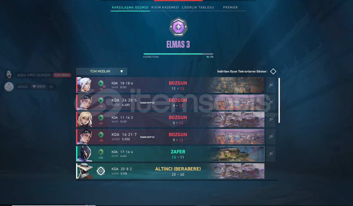ACİL NAKİT İHTİYACI İÇİN SATILIKTIR.Hesabın Mail Değişimi Yapılıcaktır. Kendi Üzerinize Alabilirsiniz.TR Sunucusudur.İÇİNDEKİLER:Kaos VandalEjderin BuyruğuGaia GuardianFatih PhantomYitik OperatorVCT Karambit