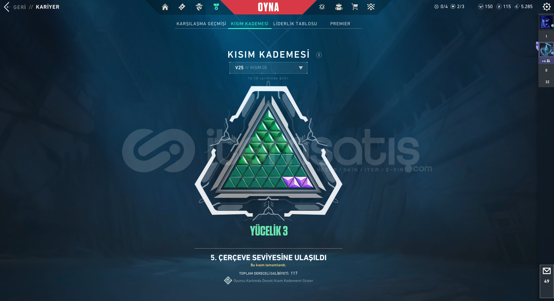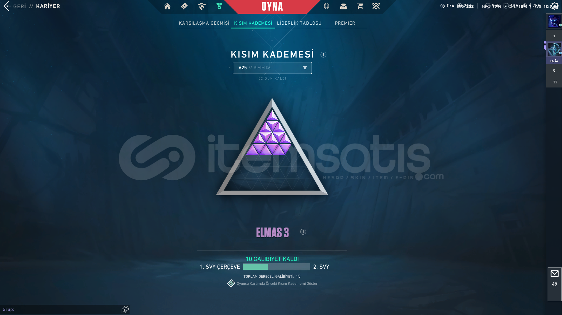 • Aktif sezon rank: Dia 2 – 70 KP