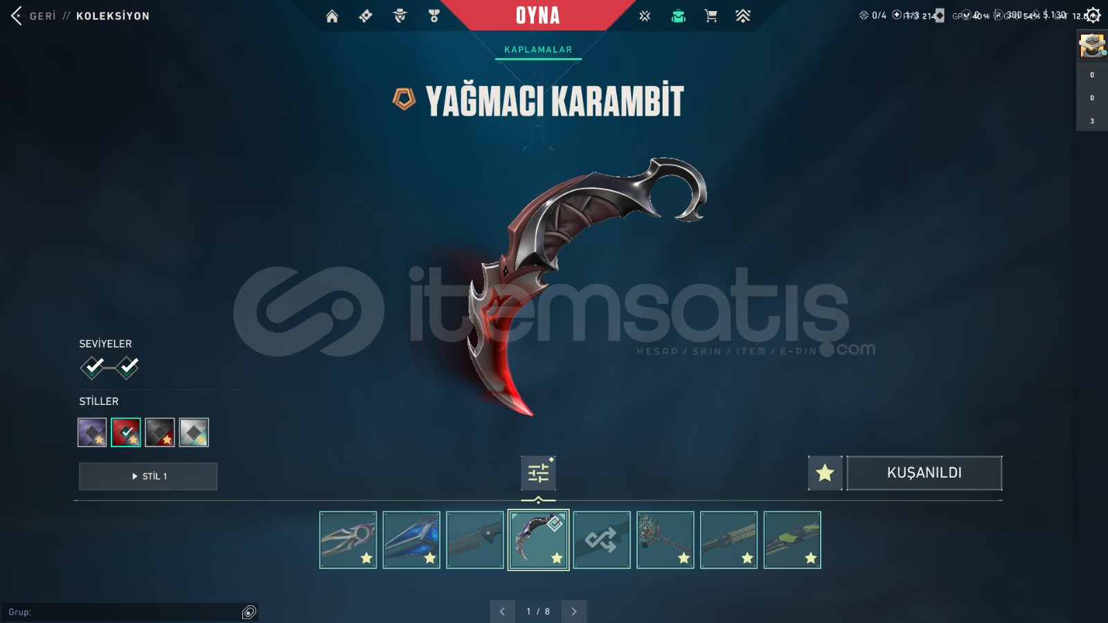 Yağmacı karambit özel harekat kelebek rgx katanaSır çiçeği Kunai sır çiçeği phantom cesur yürek Vandal sır çiçeği Şerif sır çiçeği operator sır çiçeği judege ve 2 savaş bileti açılmışElposta değişmi vardır