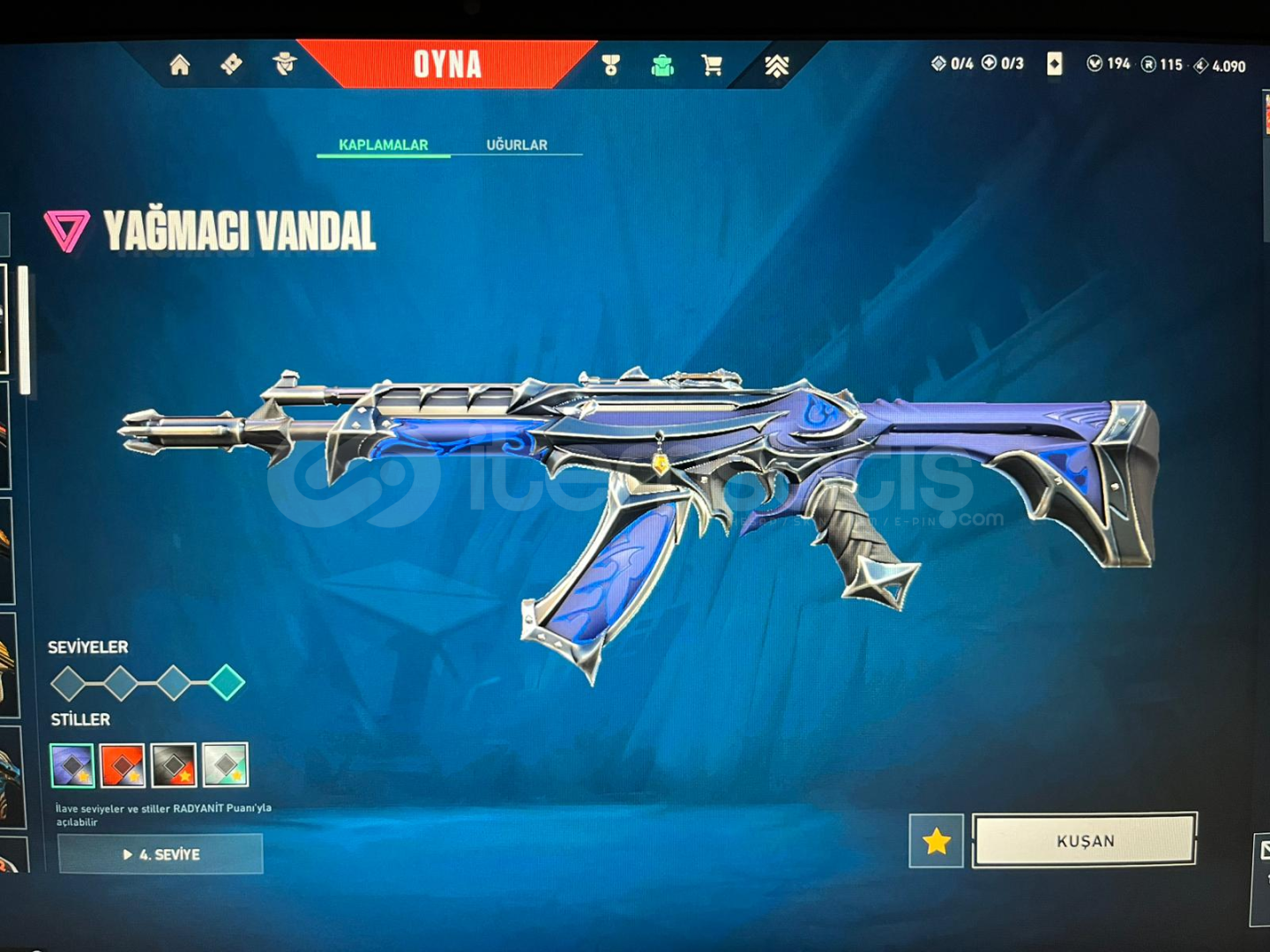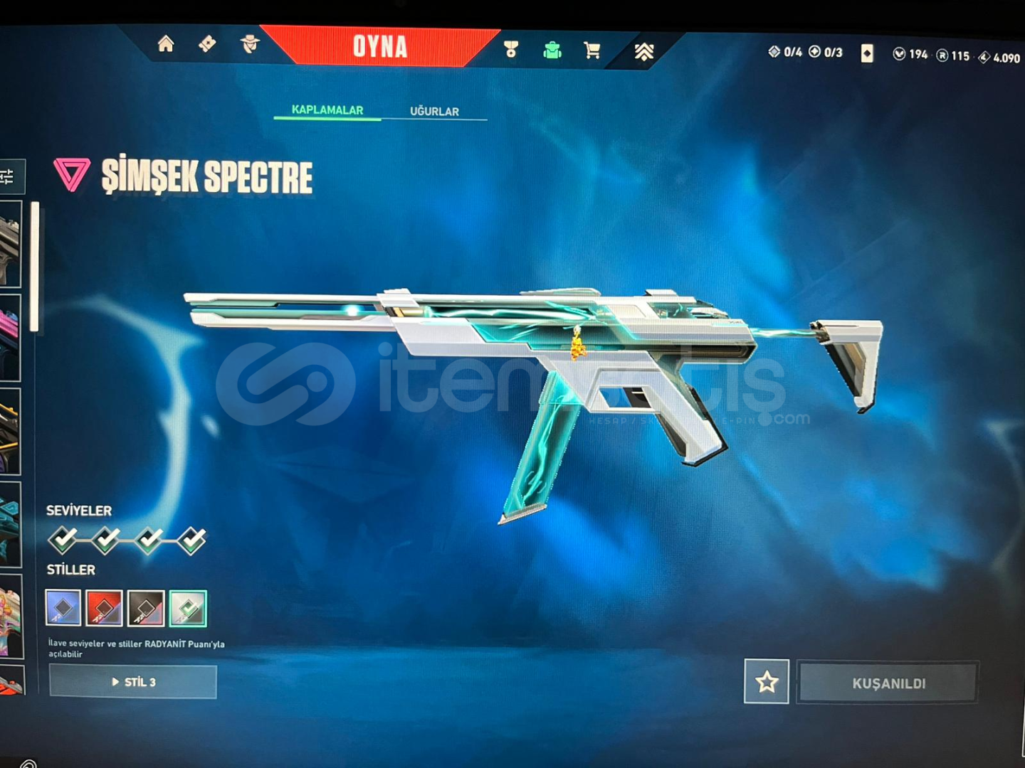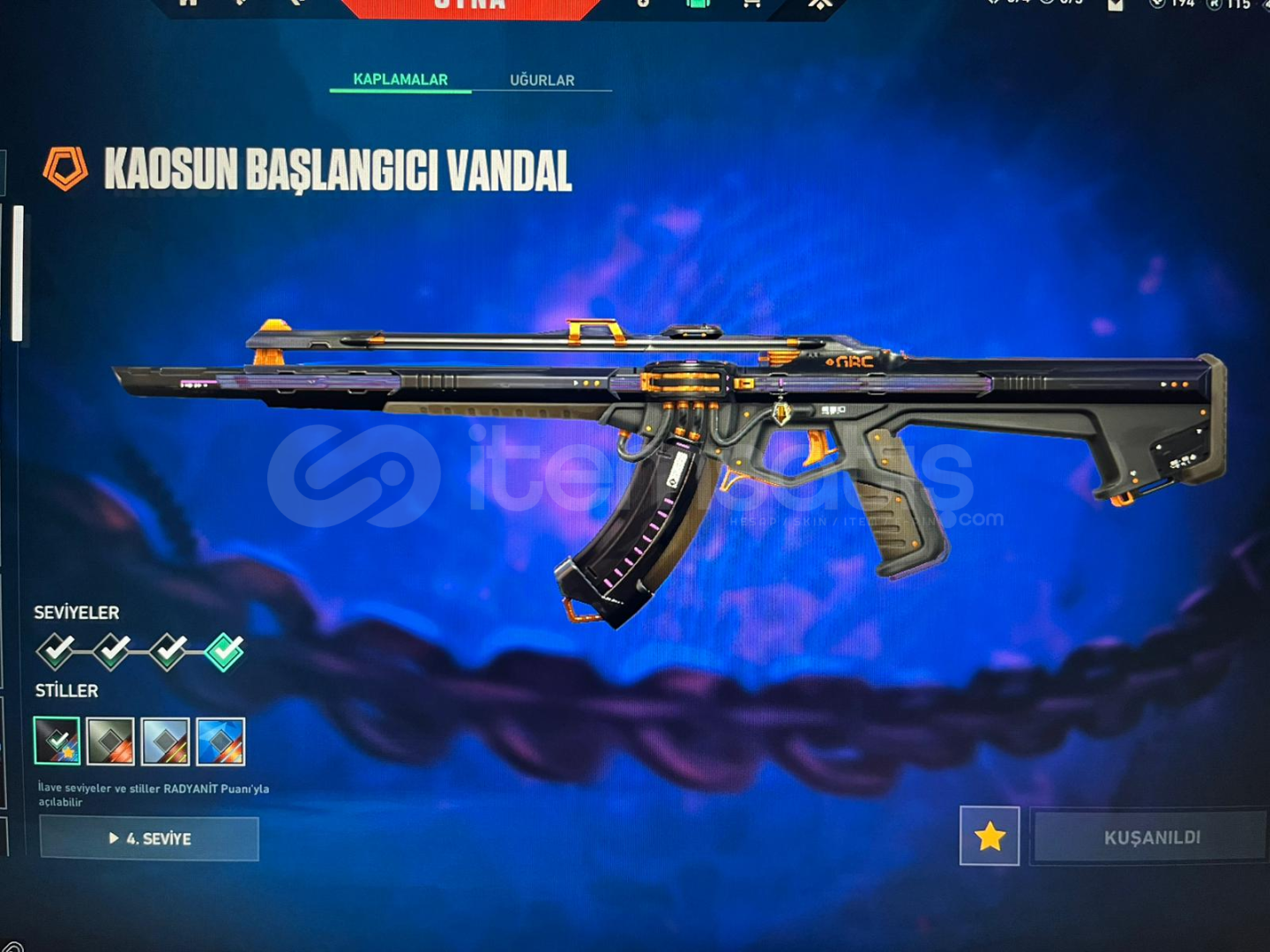 Hesapta Kaos vandal, Yağmacı vandal, Şimşek spectre, Anomali Ghost,   bulunur.