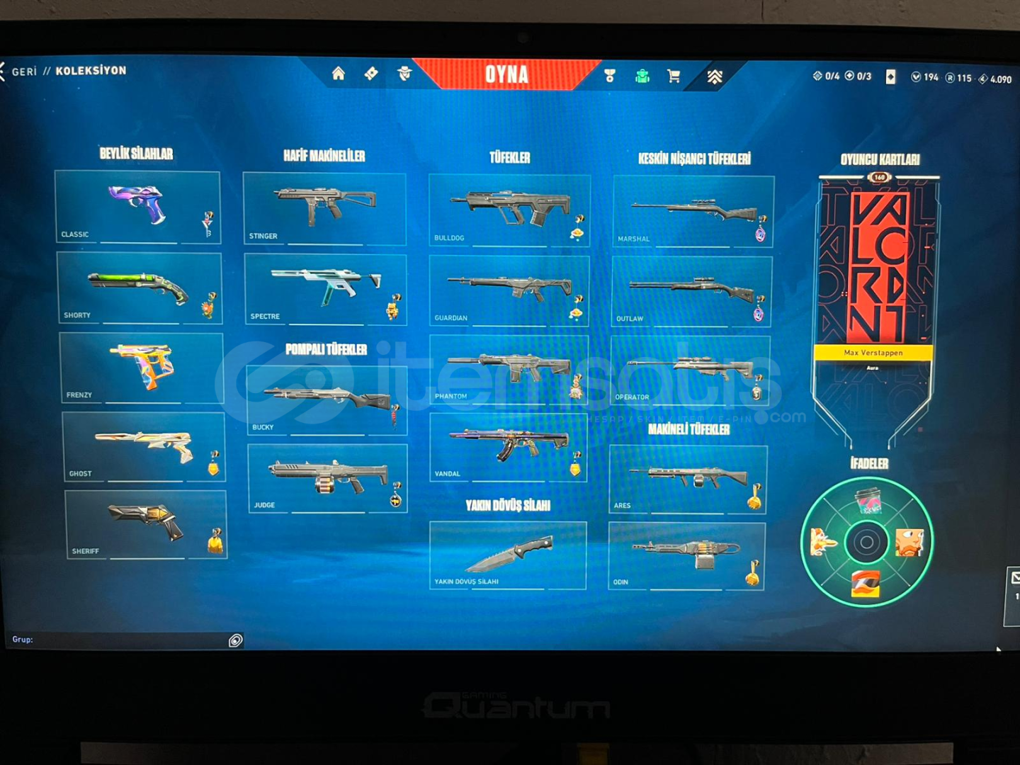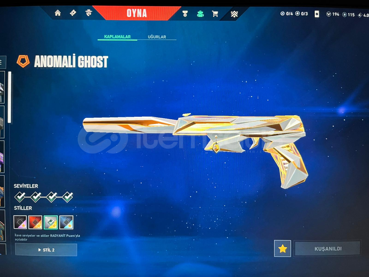 Merhabalar, hoşgeldiniz.Hesapta Kaos vandal, Yağmacı vandal, Şimşek spectre, Anomali Ghost,   bulunur.Hesap tr sunucudur.295, VP, 160 RADYANİT BULUNMAKTADIR.Telefon doğrulaması yapılmamıştırHesabın rankı gümüş 3'dir.HESABIN TÜM BİLGİLERİ MAİL, ŞİFRE GİBİ HER ŞEYİ DEĞİŞEBİLİR.STOK SİZLERE DİREK OTOMAT...