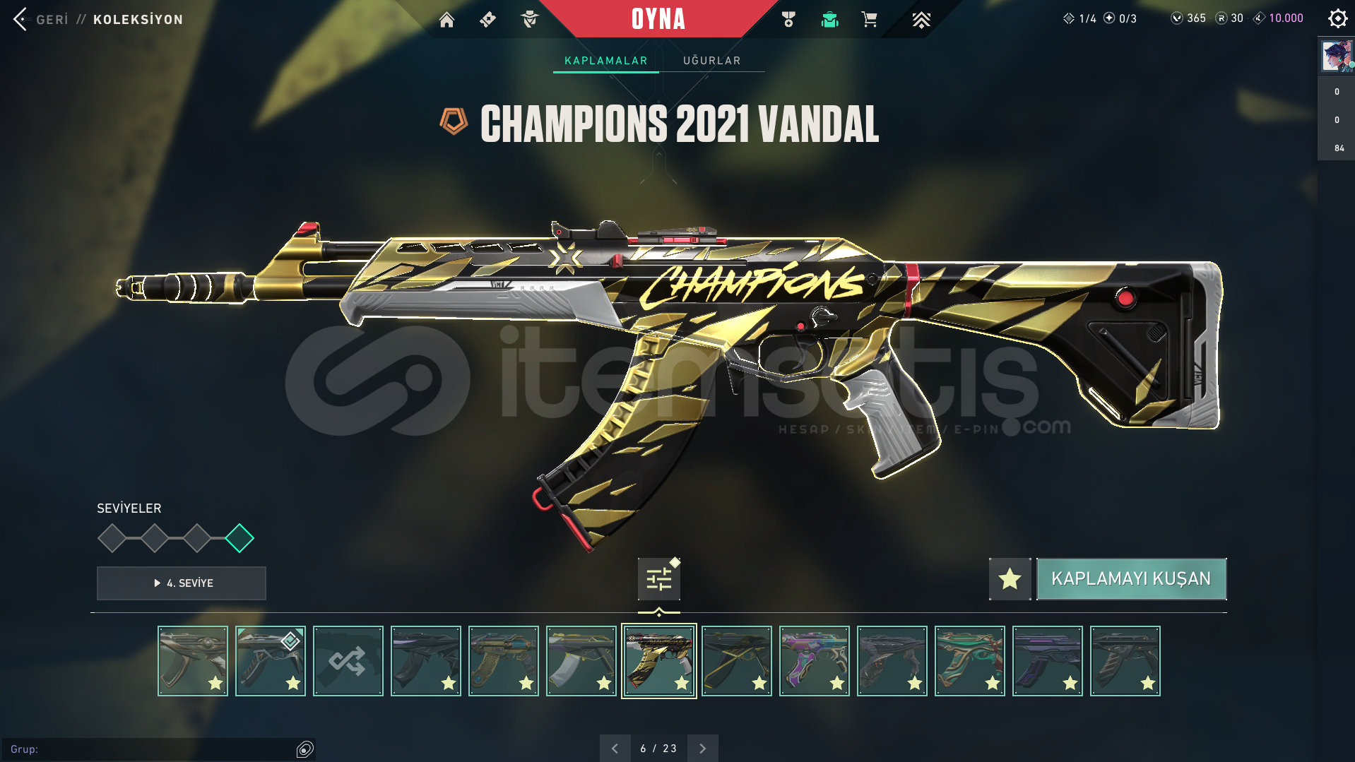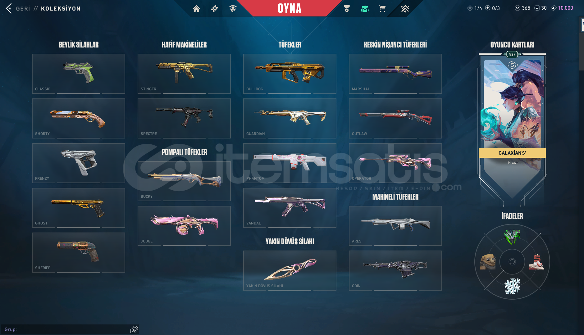 içeri tıklım tıklım doludur savaş bileti skinleri hariç 100 üzeri skin vardır nadir tüm eşyalar var