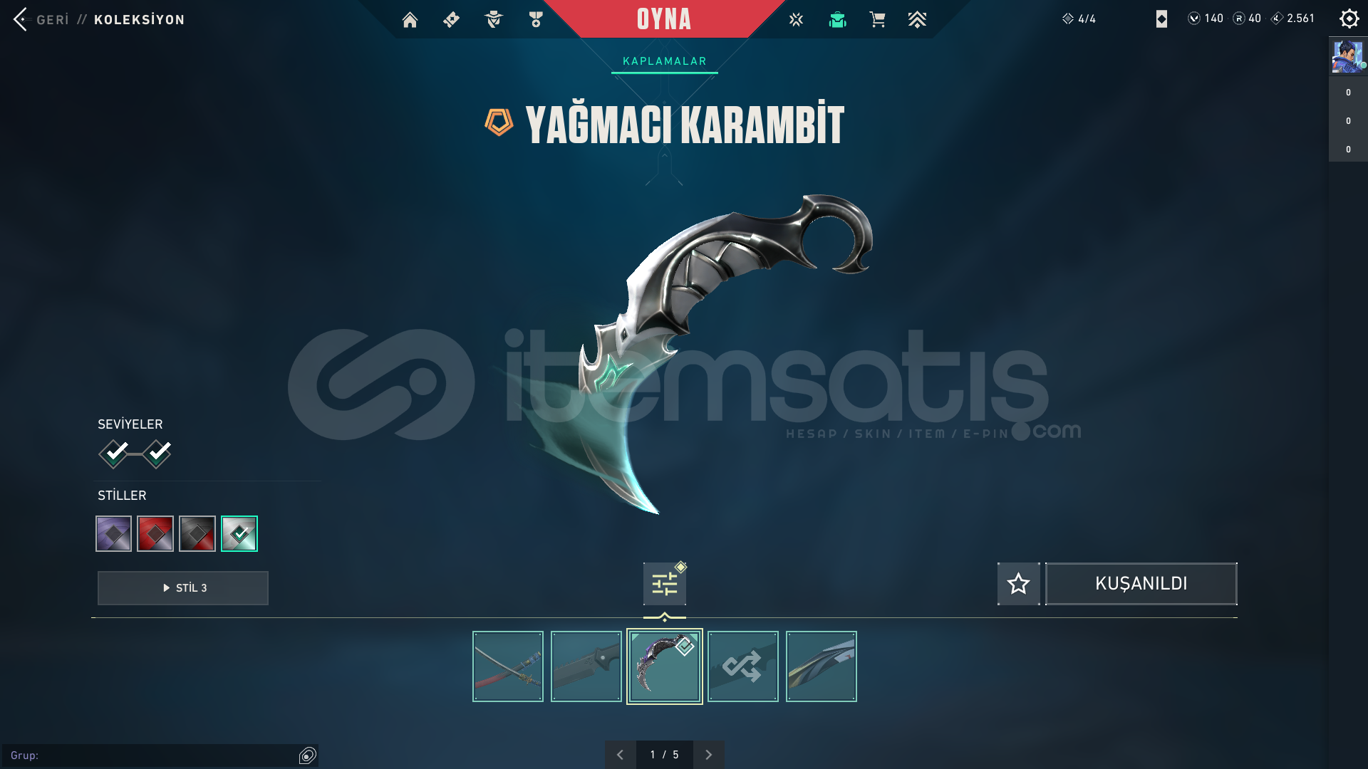 hesapta gaia vandalyıldız belası protocol phantom oni phantom asil klasik yağmacı karambitoni katana vardır
