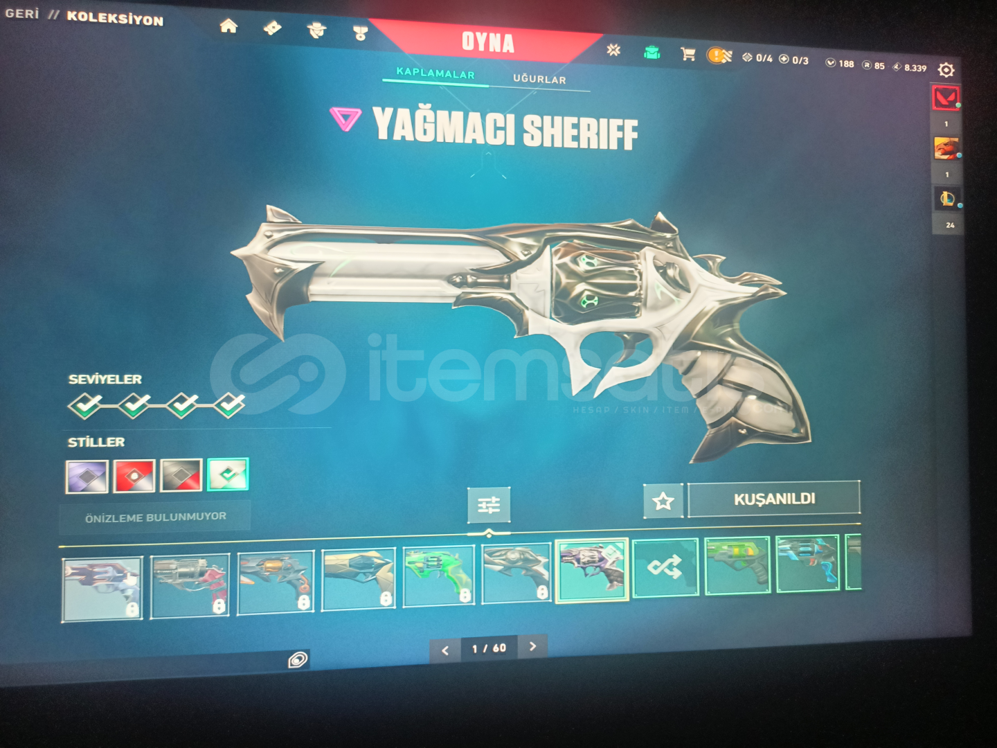 Fotoğrafta olmayan Birçok Skinler;Kaos Operator Yağmacı Vandal , evori Vandal , Anomali VandalAnomali ghost yıkım elçisi Phantom Yağmacı sherif Bıçaklarda ;Gaia balta , Anomali kelebek, ulupençe ⭐ 6700 TL para yatirilmistir.⭐HESAP SON DERECE TEMİZ KULLANİLMİSTİR ALANA HAYİRLİ OLSUN