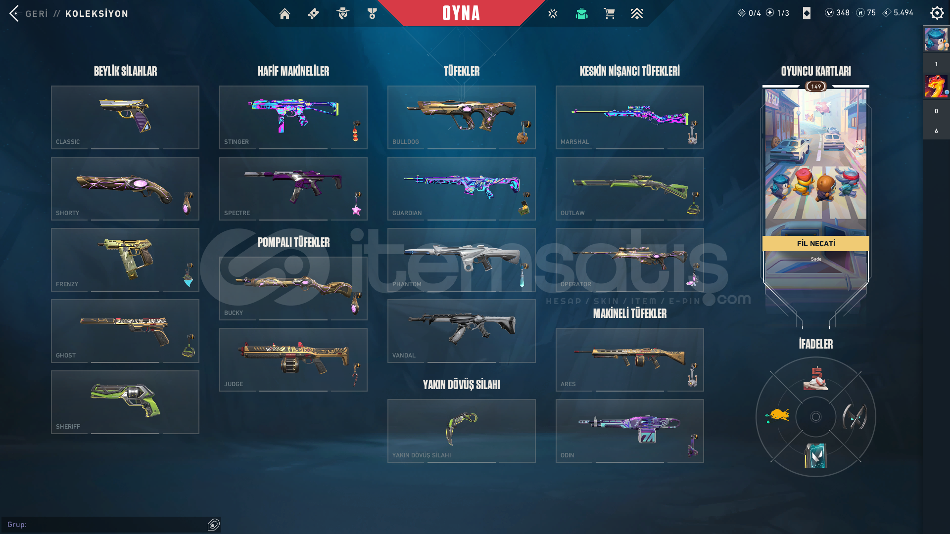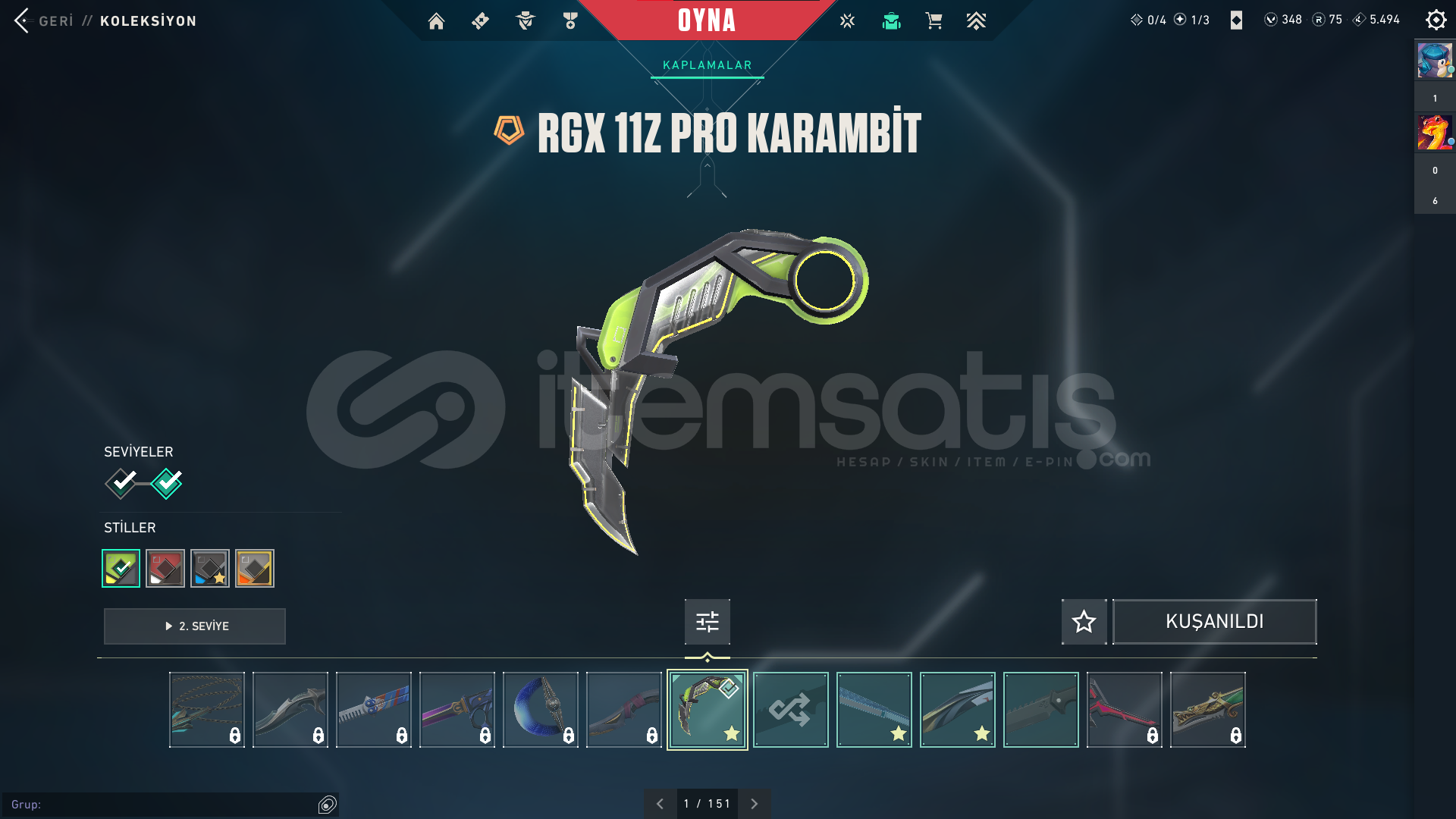 RGX 11z Pro Karambit RGX 11z Pro Outlaw RGX 11z Pro Sheriff Yağmacı Vandal Asil Vandal Asil Classic İyon Phantom Kışın Harikası Phantom Denge Bıçak 2 Savaş Bileti 348 VP 75 Radyanit 149 Seviye Dopdolu Hesap