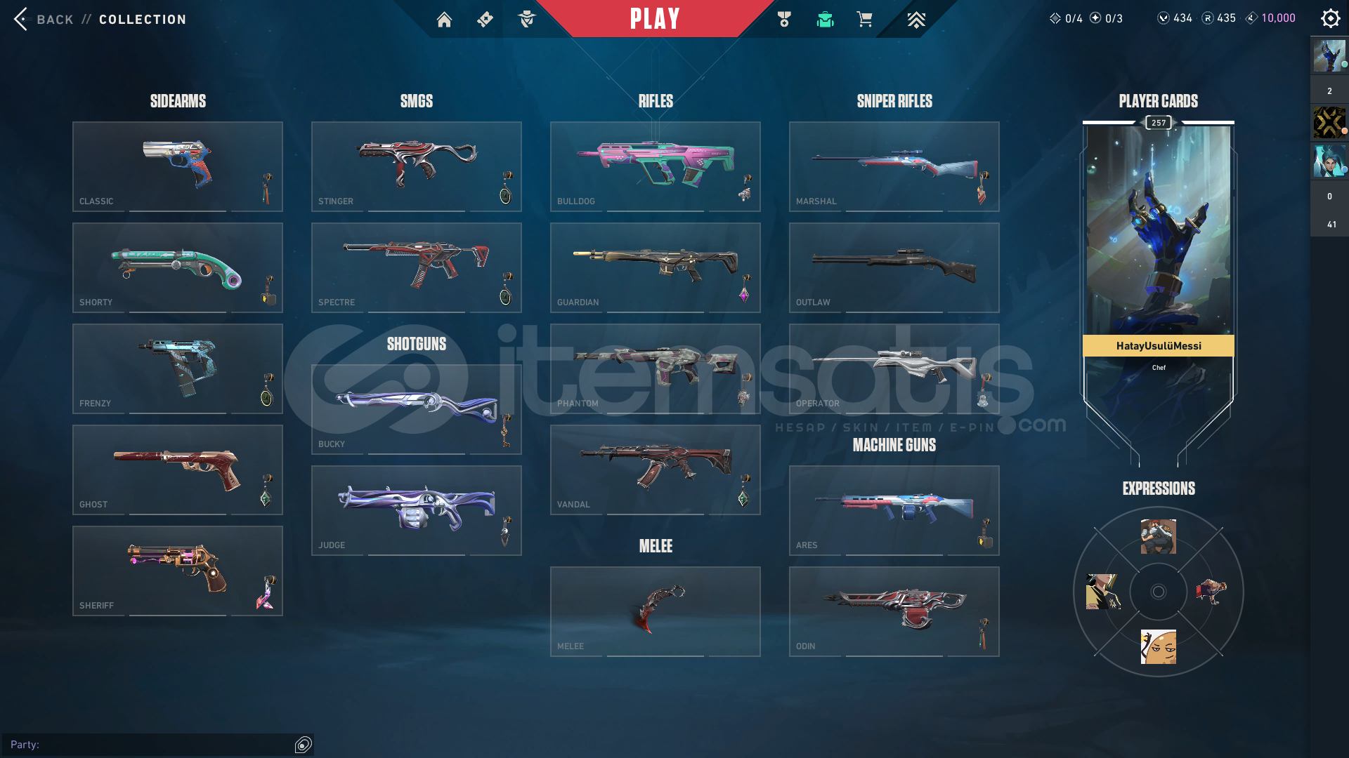 Hesabın içindeki skinler:YAĞMACI BIÇAKYELPAZE BIÇAKYAĞMACI VANDALRGX PHANTOMPROTOKOL PHANTOMİYON OPRGX SPECTRESİHİRPUNK SHERIFFve daha nice bp skinleri