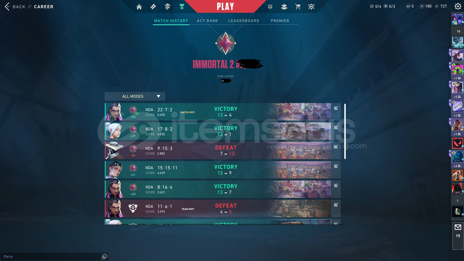 Hesabın güncel rankı V25 KISIM 5 İMMORTAL 2 101 Kp'dir .