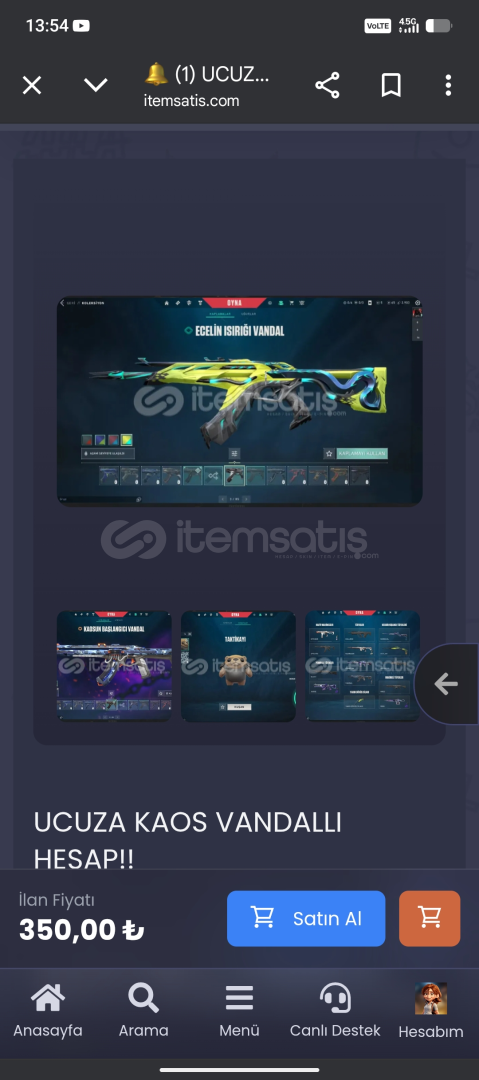 Hesap bilgileri tamamen sizin olucak ve üstünüze çekiceksiniz. Hesap oyunu bırakacagım için oldukca ucuz. HesaptaKaos vandal, ecelin ısırıgı bıçak, ayıcık ve battle pass ürünleri bulunmaktadır. Hesap 59 lvl Ve derecesizdir.Bu fırsat kaçmaz. Alıcısına şimdiden hayırlı olsun.