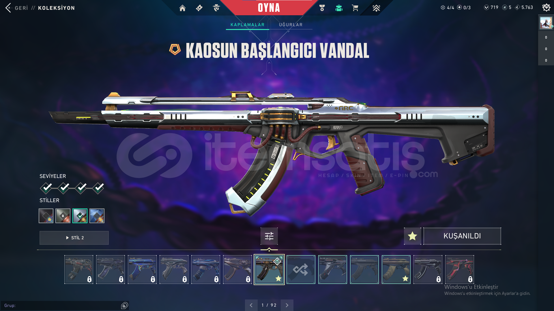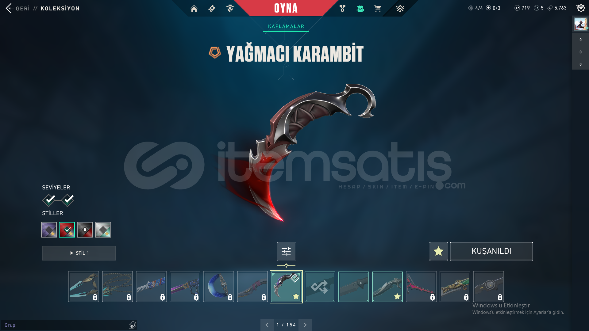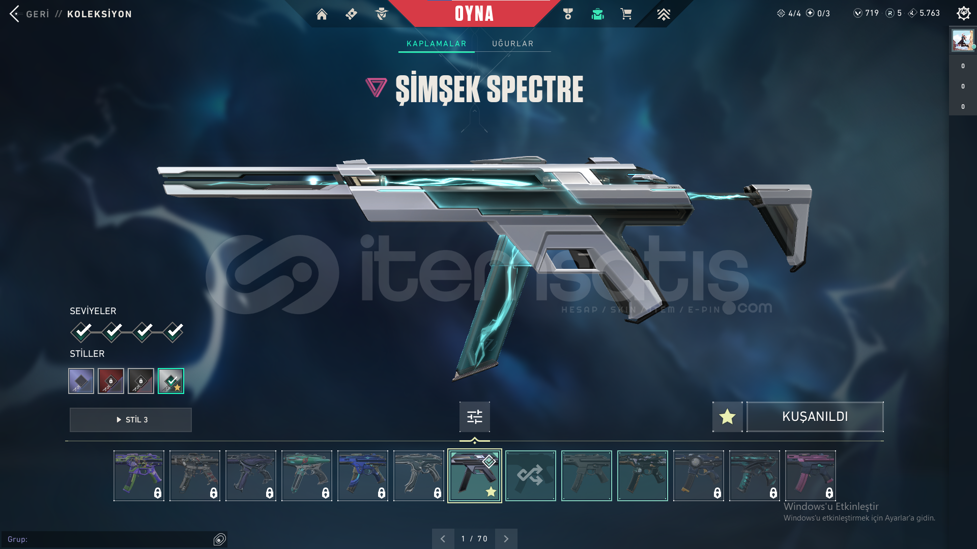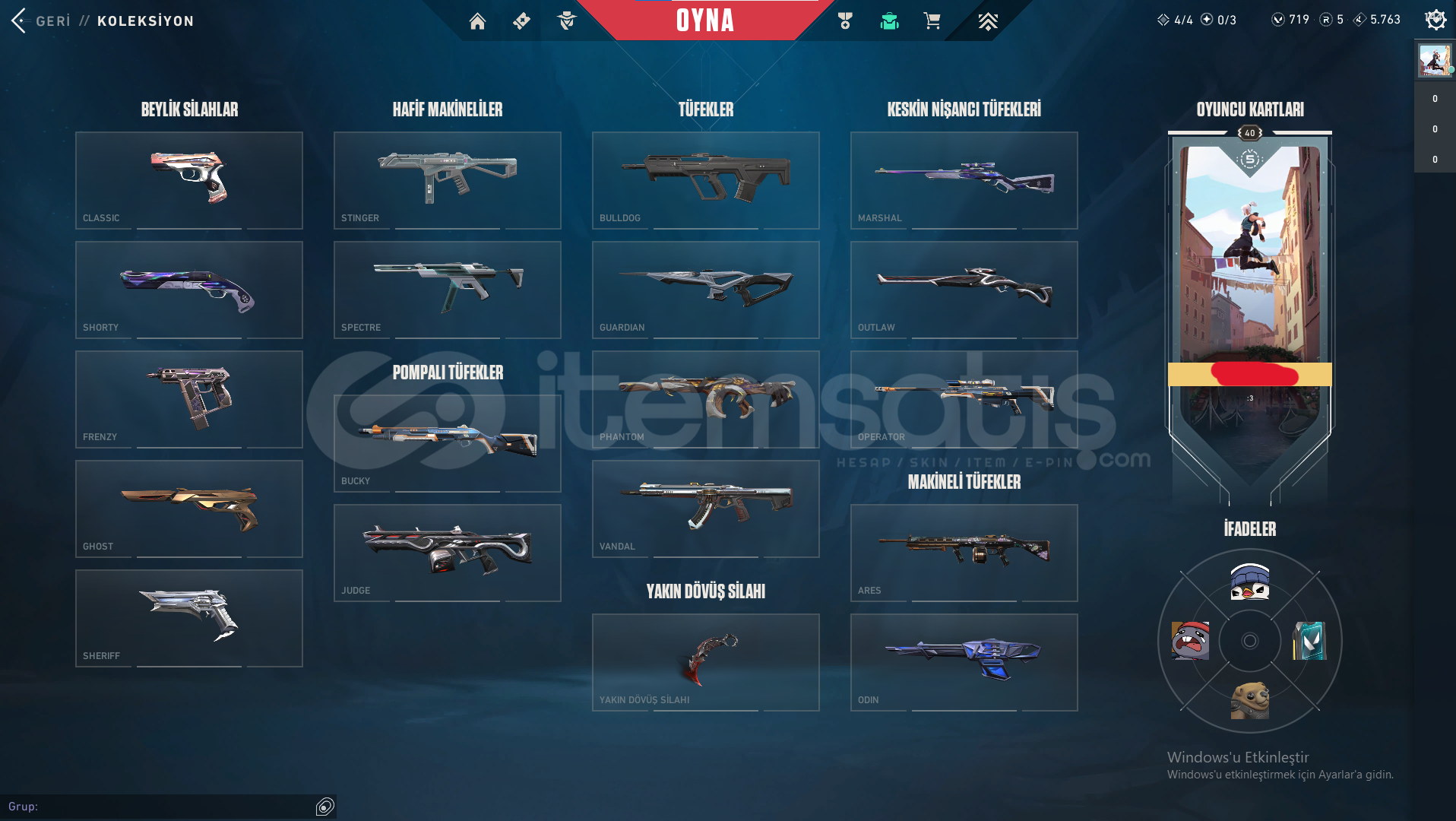 Yazmadığım Silahlarda ise Battlepass skinleri vardır Hesabın Bilgileri Size Verilcektir (*****@gmail.com Şifre:******/Riot: İsim:****** Şifre:******) Olarak Teslim Edilir Hesabta Telefon Numarası Bağlıdır ne yazıkki çekemiyorum Ama Güvenebilirsiniz Hiç bir sorun gelmez başınıza Silahların hepsi full dur ekstra bir bilgi isterseniz yazabilirsiniz keyifli alışverişler :))
