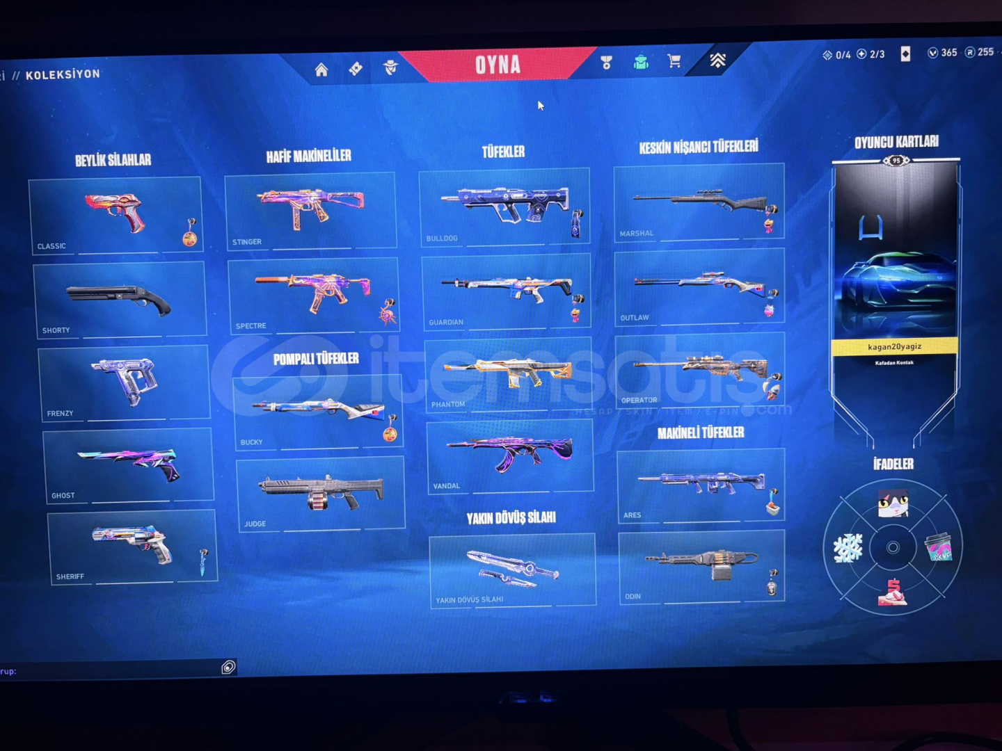 hesap içinde evori vandal asil vandal asil phantom ve battle pass skinleri vardır