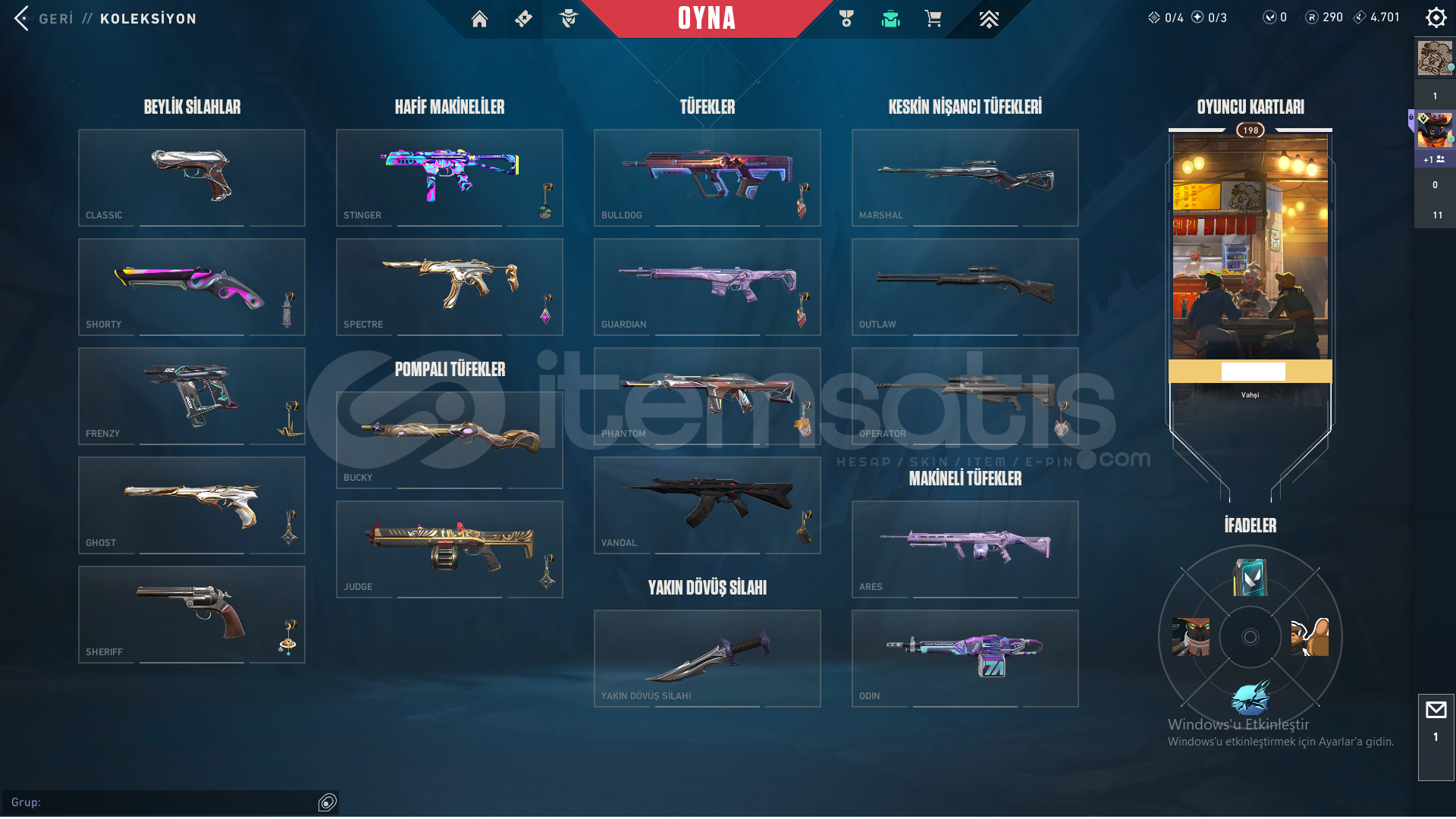 Oyunu bırakacağım için hesabımı uygun fiyattan satıyorum skinler ayrıntılı bir şekilde gözüküyor