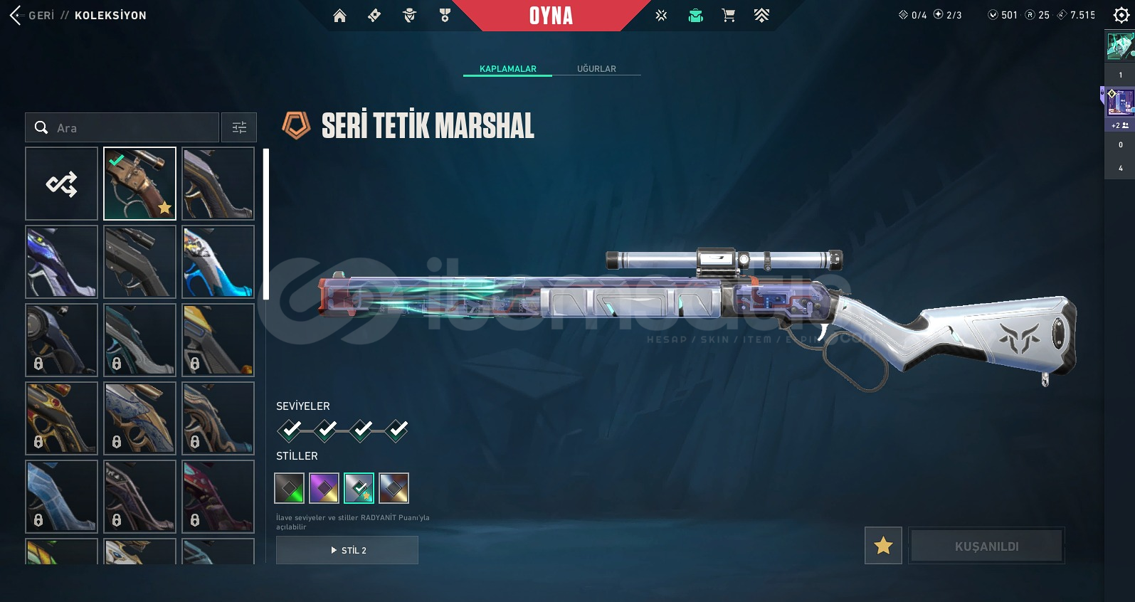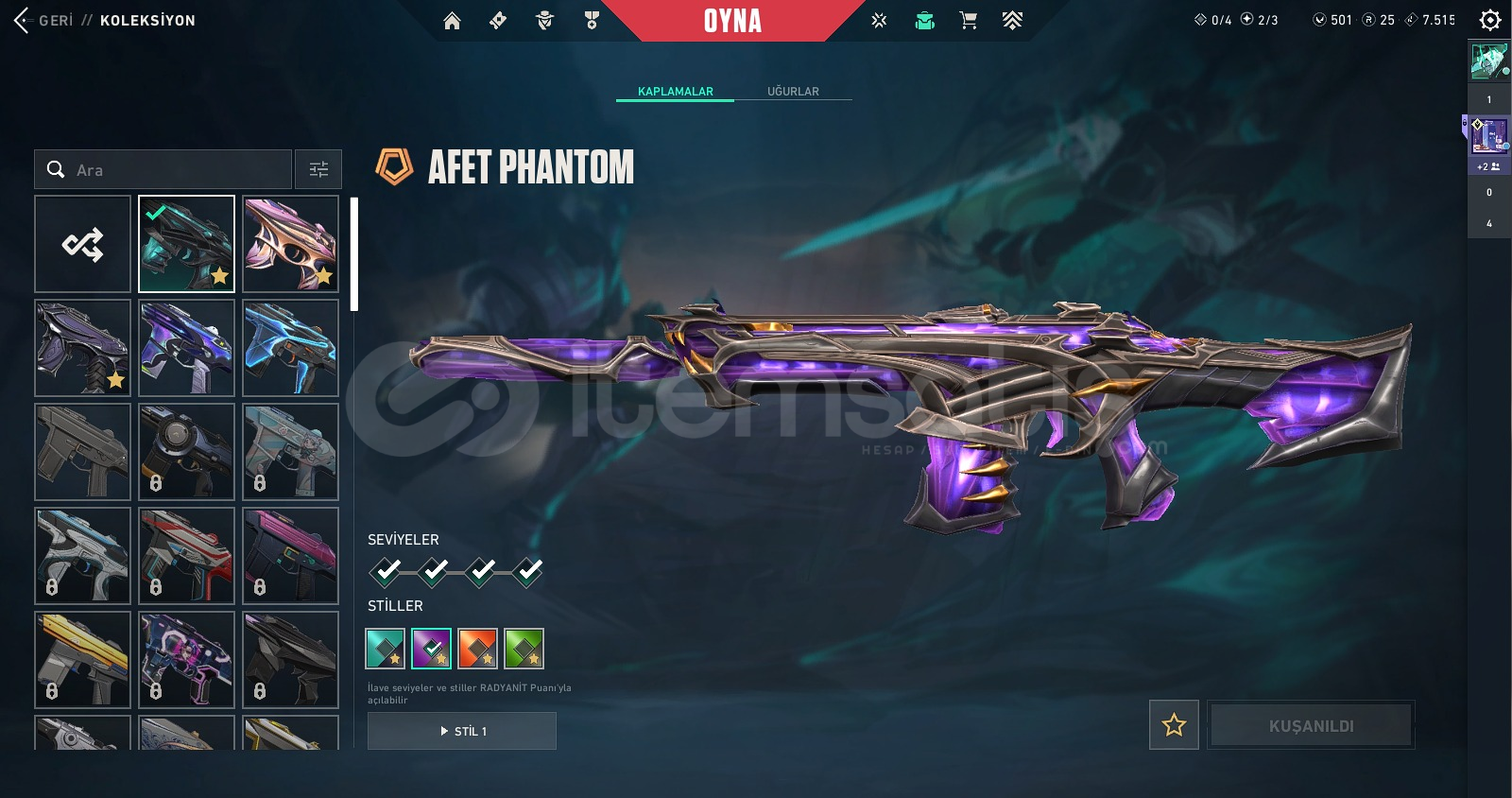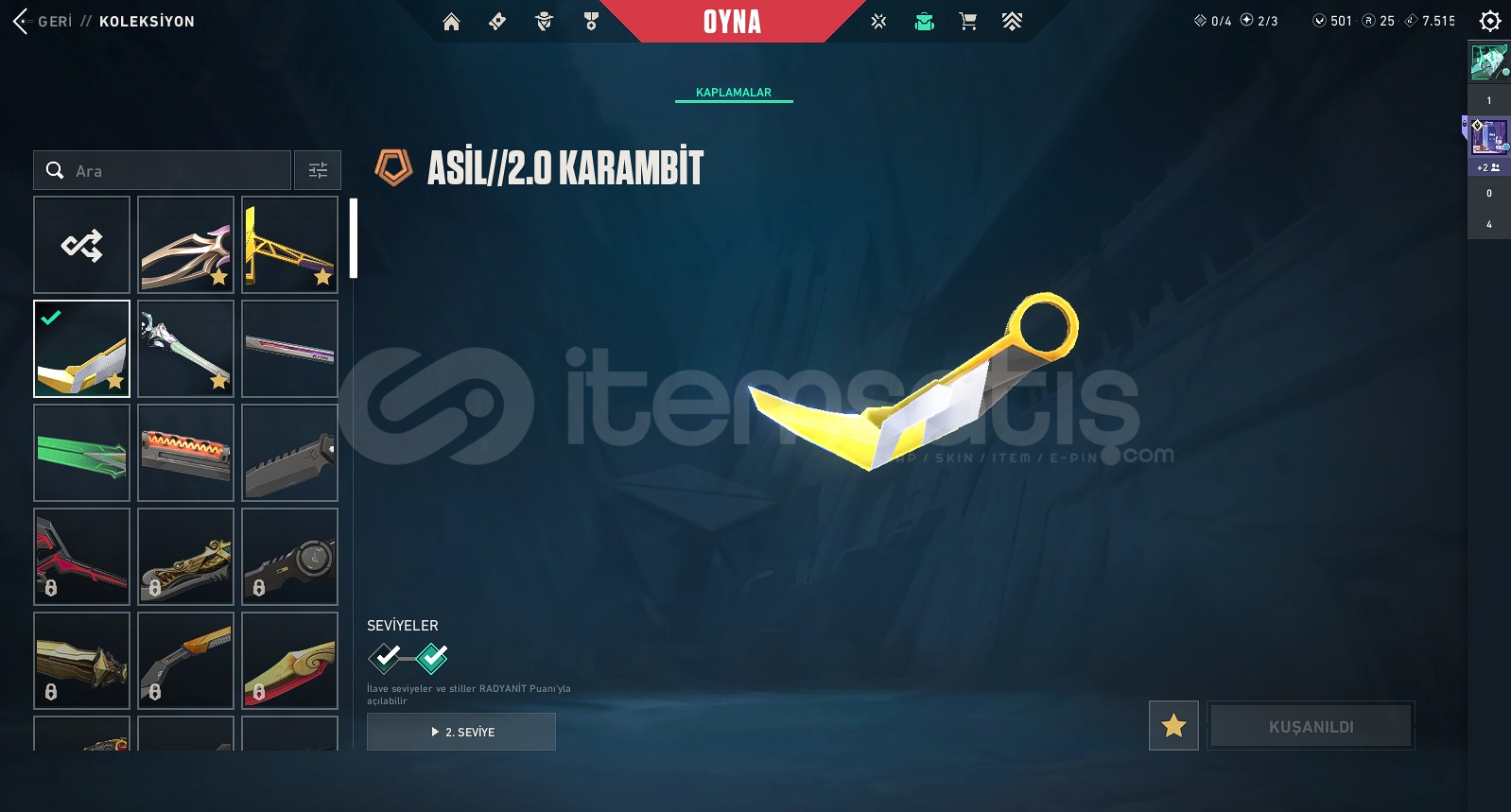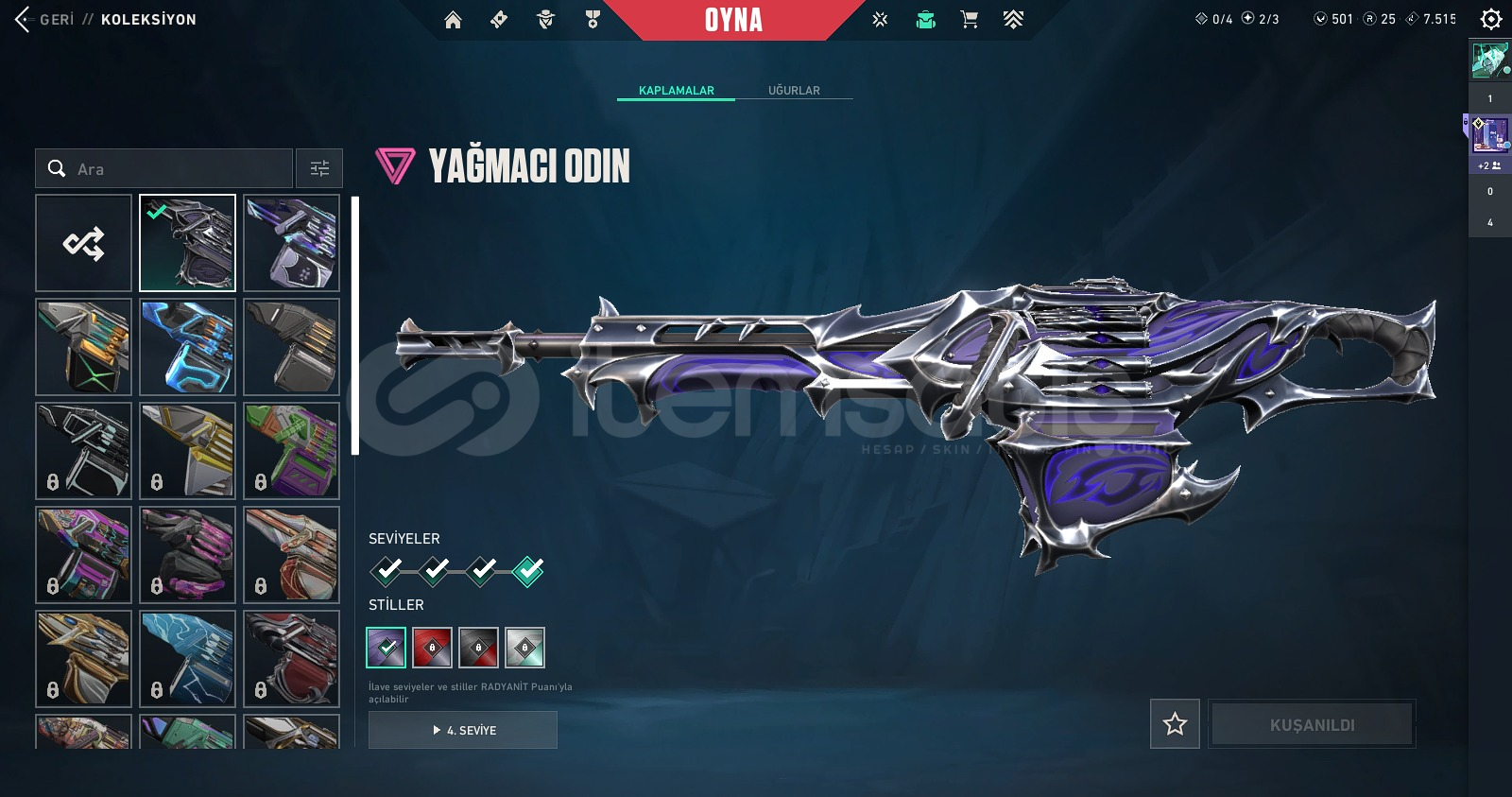 ​Kalan VP: 501 Valorant Puanı (Hemen bir Battle Pass alabilir veya skin mağazasında kullanabilirsiniz!)