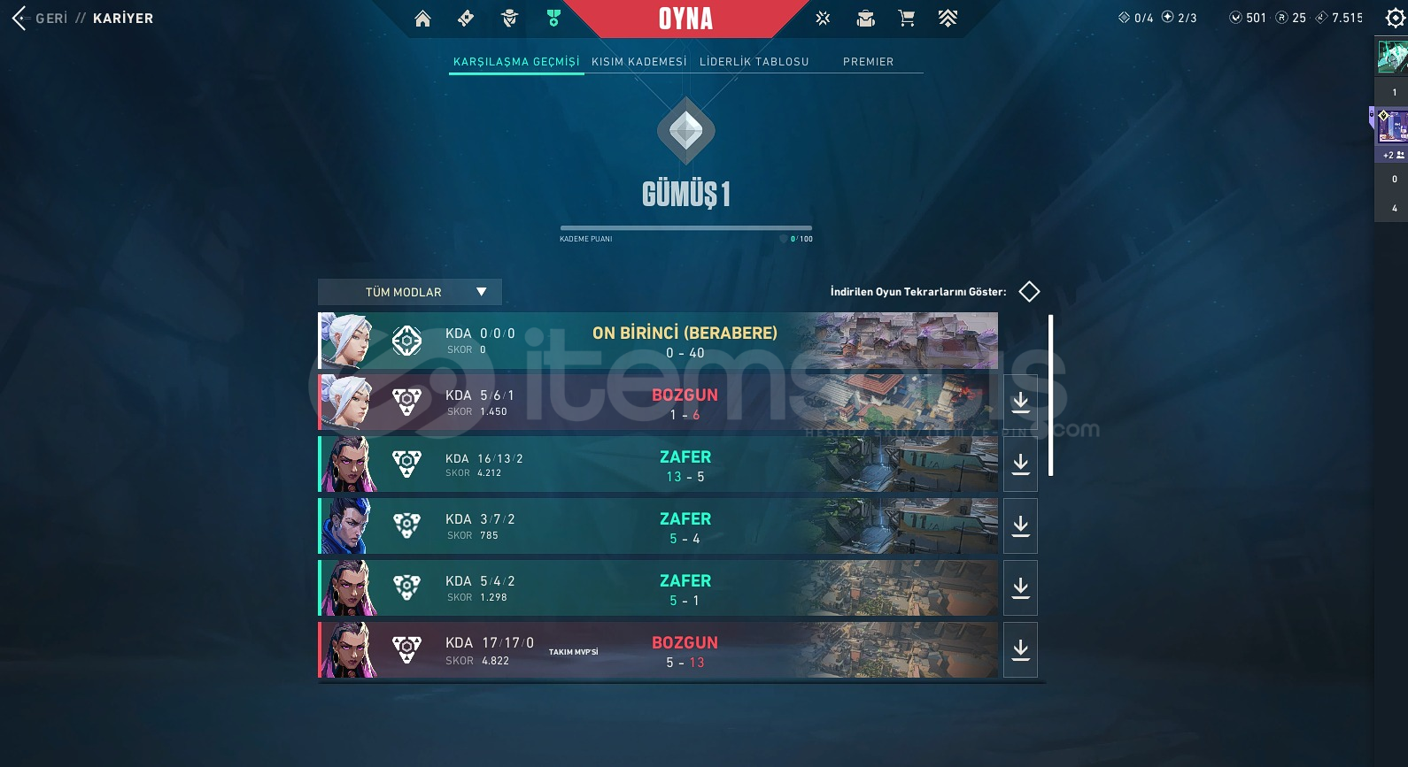​Rank: Silver 1 (Yeni sezonda kolaylıkla Rank atlayabilirsiniz!)